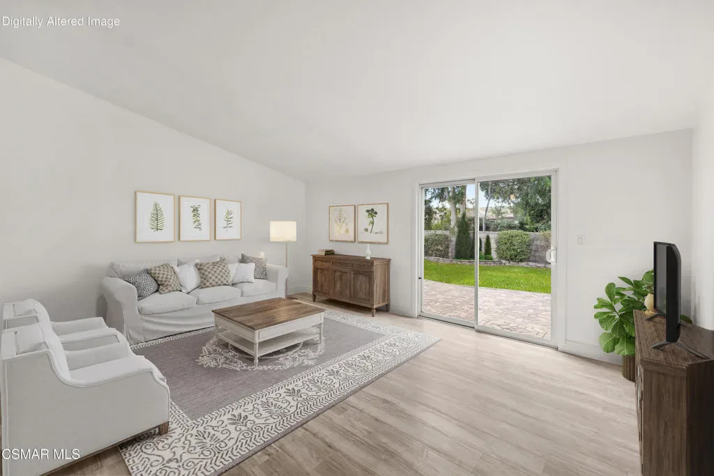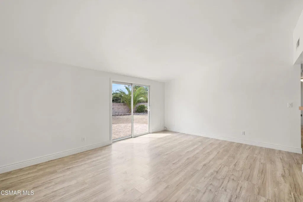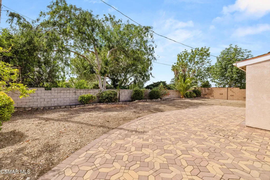 Welcome home to this wonderful 4 bedroom, 2 bath, single level home located in the heart of Thousand Oaks. The front yard is currently landscaped with crushed rock and awaits your personal touches. The driveway and walkway feature stone pavers. NEW paint inside. NEW woodlike flooring. NEW gas stove. NEW dishwasher. NEW refrigerator. NEW garbage disposal. The kitchen features wood cabinets with plenty of storage, a dining area and NEW counter tops. There are smooth ceilings and dual pane windows throughout the house. From the kitchen, there’s a great flow to the adjoining living room area with a high ceiling. From the living room, step through the sliding doors to a private backyard that is your blank canvas. What a great space to begin the day with a cup of coffee or relax after a long day with a glass of wine. One bathroom features a tub and shower tiled combo with a Corian counter and dual sinks. The other Jack and Jill style bath contains a shower. No HOA! Close to desirable schools in the award winning Conejo Valley Unified School District, the Conejo Valley Botanic Garden, parks, shopping and dining. Move in and live!