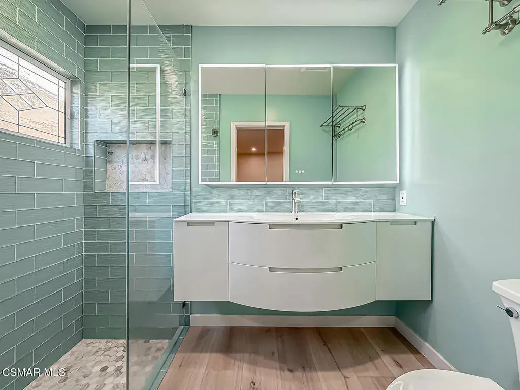 Recently remodeled single-family pool home located in the heart of Thousand Oaks, within the coveted Shadow Oaks neighborhood. This 4-bedroom, 2-bath home offers 1,961 sq ft of thoughtfully designed living space on a 9,500 sqft lot. The inviting living room is anchored by a cozy stone fireplace, creating a warm and elegant focal point. The designer kitchen features striking blue Macaubas quartzite countertops, black stainless steel Bosch appliances, an inviting eating bar, and a stylish coffee nook–perfect for both everyday living and entertaining. Custom designer tilework elevates both bathrooms, adding a spa-like feel. Designed for seamless indoor-outdoor living, the private entertainer’s backyard boasts a sparkling pool, and multiple covered sitting areas–perfect for hosting or relaxing. Additional highlights include solar for energy efficiency and a prime location close to shopping, dining, and entertainment. A turnkey home in one of Thousand Oaks’ most desirable neighborhoods. Also available for lease or lease to own.