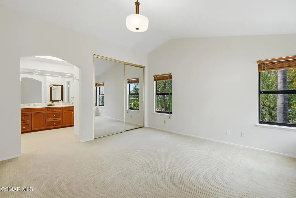 Welcome to 2280 Meadowside Drive, a private retreat tucked away on a peaceful flag lot in one of Thousand Oaks’ most desirable neighborhoods, Lang Ranch. From the moment you arrive, you’re greeted by a long, palm-lined driveway that sets the tone for the serenity and privacy this home offers. Inside, soaring ceilings and an open, airy floor plan create a bright and inviting atmosphere filled with natural light. The spacious living and dining areas flow effortlessly together, making it easy to entertain or simply enjoy everyday living. Large windows and French doors connect the indoor spaces to the beautifully landscaped backyard, creating that seamless indoor-outdoor California lifestyle. The kitchen is centrally located with plenty of counter space and storage, opening to the main living areas so you’re always part of the conversation. Fresh interior paint gives the home a crisp, move-in-ready feel. The primary suite offers a relaxing retreat with generous space, dual vanities, and cedar-lined closets. Additional bedrooms are well-sized and flexible for guests or a home office. Step outside and you’ll find a backyard designed to unwind, featuring mature landscaping, a covered patio, and multiple areas to relax, dine, or entertain. The private setting makes it feel like your own quiet escape. With a 3-car garage with a car-charger, updated landscaping, and a location close to parks, shopping, dining, and top-rated schools, this home checks all the boxes. If you’ve been looking for space, privacy, and that true indoor-outdoor feel, this is one you don’t want to miss.
