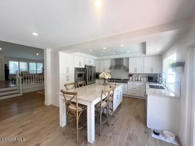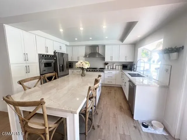Luxury Lease in Guard-Gated Chanteclair – Fully Remodeled 4 Bedroom Pool Home.Live in one of Thousand Oaks’ most desirable guard-gated communities. This beautifully remodeled 4-bedroom residence in Chanteclair offers luxury finishes, spacious living areas, and exceptional indoor-outdoor flow designed for upscale living.Step inside to soaring vaulted ceilings, elegant hardwood flooring throughout, and an impressive formal living room filled with natural light. The formal dining room provides a refined space for entertaining with dramatic ceilings and designer lighting.The expansive family room is perfect for both relaxing and hosting guests, featuring a custom fireplace, built-in wet bar, recessed lighting, and beautiful views of the private backyard with sparkling pool and spa.The chef’s kitchen has been completely remodeled with stainless steel appliances, including refrigerator, and a stunning oversized quartz center island that serves as the centerpiece for cooking, dining, and gathering.A highly desirable downstairs bedroom provides flexibility for guests, a private office, or extended family.Upstairs, the luxurious primary suite is a true retreat featuring a private balcony, sitting room with fireplace, soaring vaulted ceilings, and elegant recessed lighting. The space offers both privacy and comfort rarely found in lease properties.Additional highlights include:* 3 car garage Hardwood floors throughout Recently remodeled interior Light, bright open floor plan Located in a prestigious guard-gated communityEnjoy privacy, security, and luxury living just minutes from shopping, dining, parks, and top-rated Conejo Valley schools.Available for immediate occupancy.