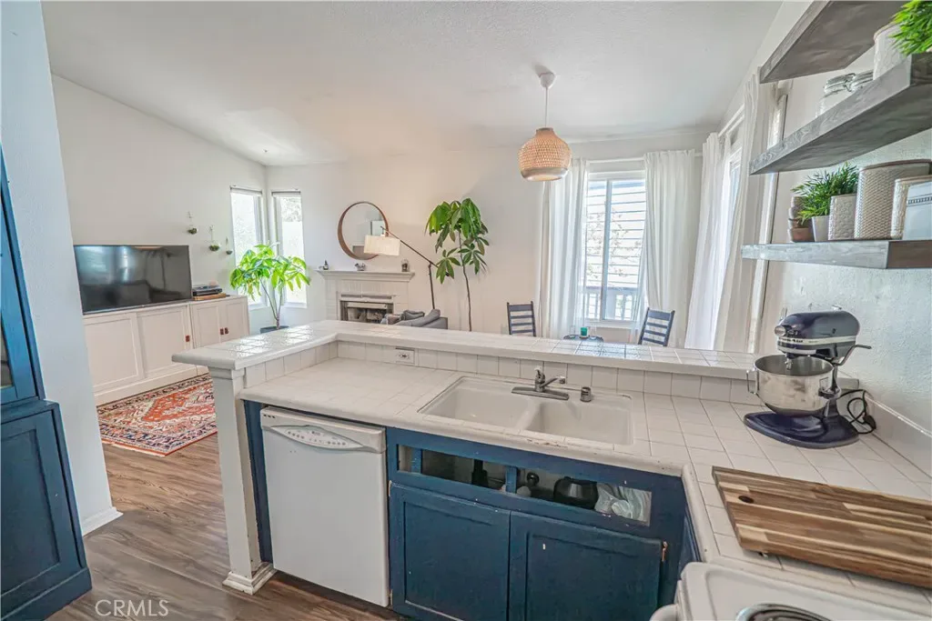 Bright, upgraded 2-bed, 1.25-bath end-unit condo on the top floor in Thousand Oaks’ sought-after Camelot neighborhood. Enjoy serene greenbelt views from the expansive wraparound balcony, paired with soaring vaulted ceilings and an open-concept layout that maximizes natural light. Hardwood floors grace the living and dining spaces, complemented by a charming wood-burning fireplace. The generous kitchen boasts a breakfast bar, while refreshed bathrooms showcase modern cabinetry and stylish tile surrounds. Includes washer, dryer, and refrigerator (as-is), plus energy-efficient dual-pane windows/sliders and ceiling fans in the primary bedroom and living room for year-round comfort. Perfectly positioned close to top-rated schools, parks, dining options, and the Civic Arts Plaza—prime for first-time buyers, empty nesters, or professionals desiring low-maintenance living in Thousand Oaks.