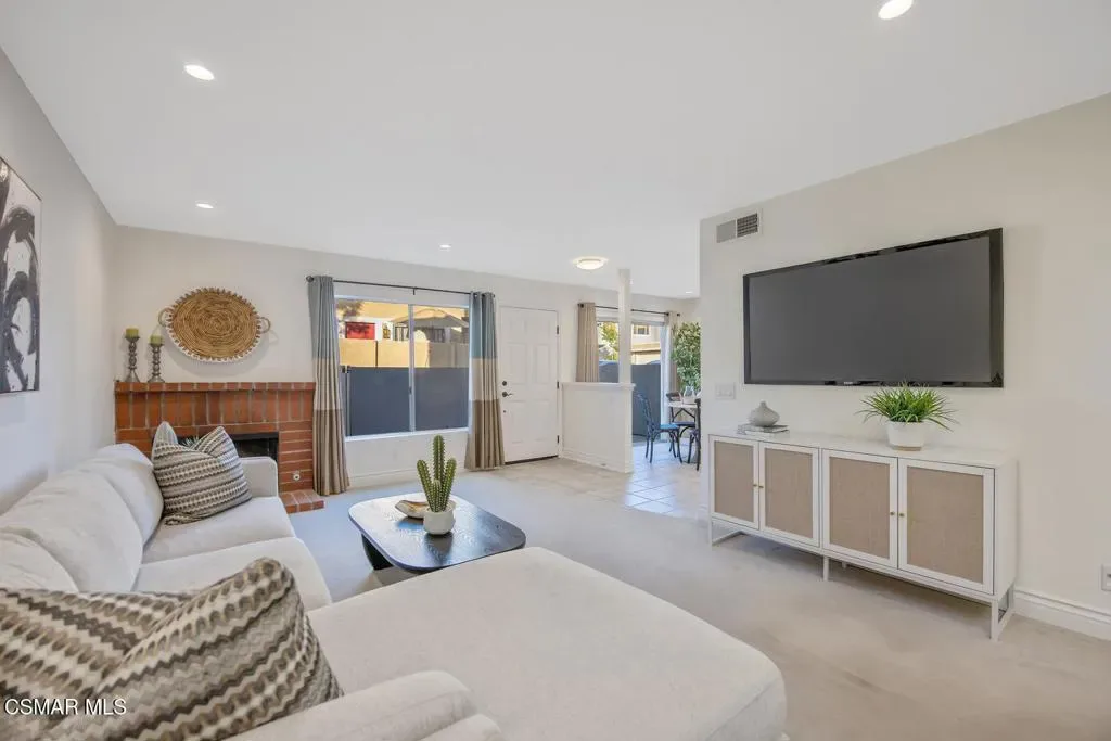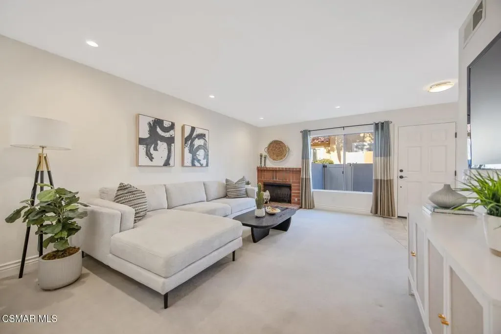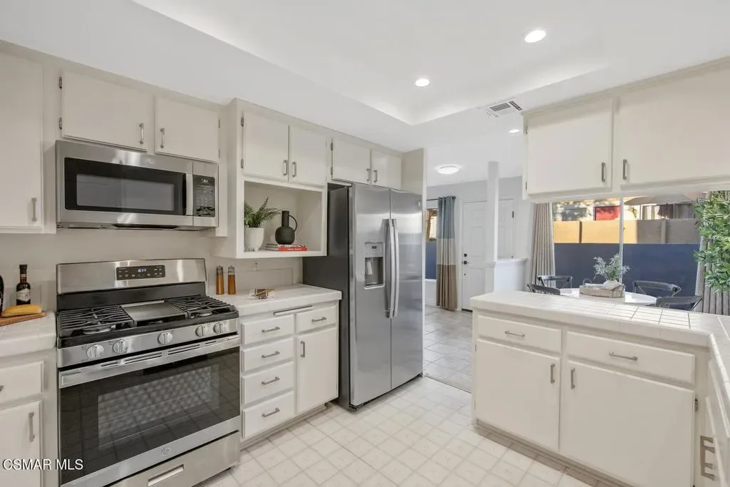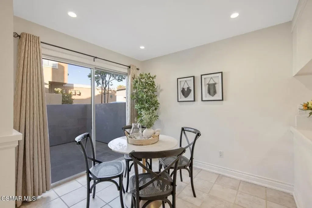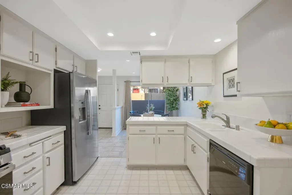 Beautifully updated 2-bedroom, 2.5-bath condominium with an ATTACHED GARAGE and an additional dedicated parking space, ideally located in the highly desirable Las Flores Villas community of Thousand Oaks. This inviting two-story residence is one of those homes that just feels good – 1,138 square feet of bright, welcoming living space that has been thoughtfully refreshed with smooth ceilings, recessed lighting, fresh interior paint, and new appliances. The main level features a well-appointed kitchen, dining area, and a spacious living room anchored by a cozy fireplace–creating a warm and inviting atmosphere for both everyday living and entertaining. A convenient laundry room/pantry and powder bath complete the first floor. Upstairs, the home truly shines with an exceptionally LARGE and sun-drenched PRIMARY SUITE – an expansive retreat that offers abundant space for a sitting area or home office, along with a private en-suite bathroom. A generously sized secondary bedroom and a full bath complete the upper level, providing comfort and privacy for guests or family. Step outside to the east-facing patio, a peaceful setting ideal for enjoying morning coffee or relaxing afternoons. Residents of Las Flores Villas enjoy access to RESORT-STYLE amenities including a sparkling pool, spa, and tennis court, all within a prime location close to shopping, dining, parks, recreational opportunities, and award-winning schools. Experience the charm, comfort, and convenience of the Thousand Oaks lifestyle in this exceptional home.