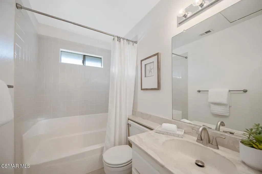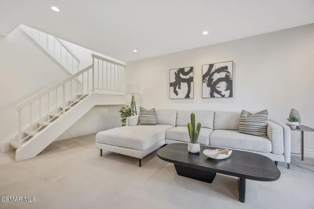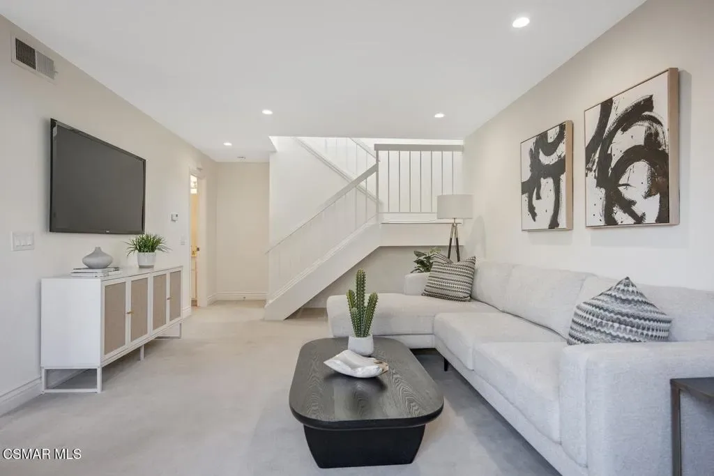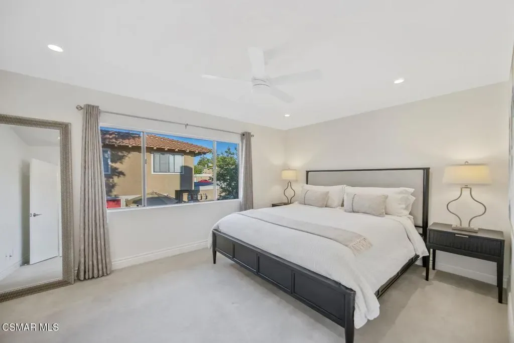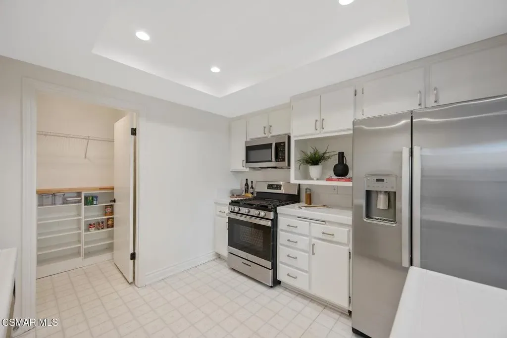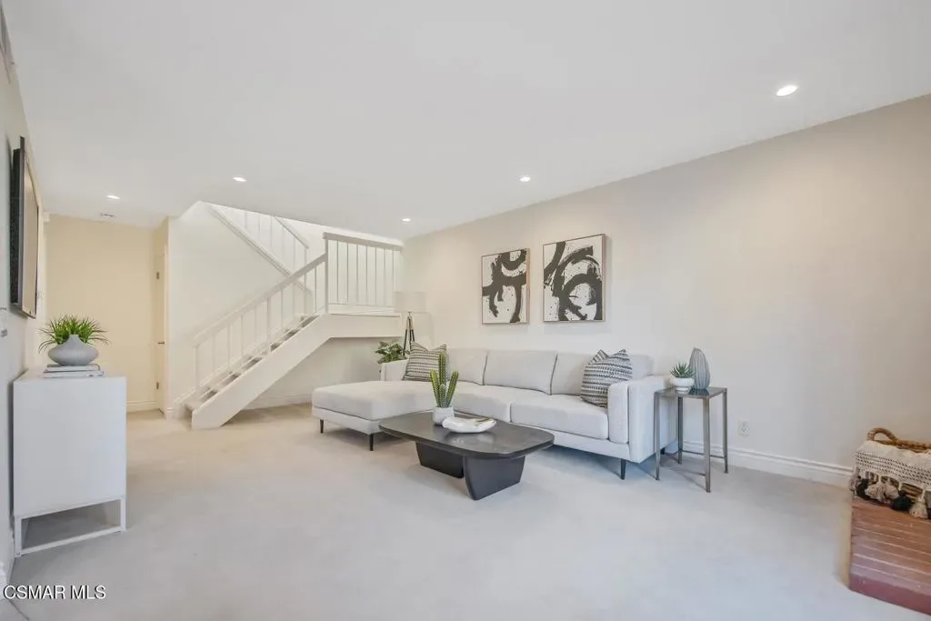 Beautifully updated 2-bedroom, 2.5-bath condominium with an ATTACHED GARAGE and an additional dedicated parking space, ideally located in the highly desirable Las Flores Villas community of Thousand Oaks. This inviting two-story residence is one of those homes that just feels good – 1,138 square feet of bright, welcoming living space that has been thoughtfully refreshed with smooth ceilings, recessed lighting, fresh interior paint, and new appliances. The main level features a well-appointed kitchen, dining area, and a spacious living room anchored by a cozy fireplace–creating a warm and inviting atmosphere for both everyday living and entertaining. A convenient laundry room/pantry and powder bath complete the first floor. Upstairs, the home truly shines with an exceptionally LARGE and sun-drenched PRIMARY SUITE – an expansive retreat that offers abundant space for a sitting area or home office, along with a private en-suite bathroom. A generously sized secondary bedroom and a full bath complete the upper level, providing comfort and privacy for guests or family. Step outside to the east-facing patio, a peaceful setting ideal for enjoying morning coffee or relaxing afternoons. Residents of Las Flores Villas enjoy access to RESORT-STYLE amenities including a sparkling pool, spa, and tennis court, all within a prime location close to shopping, dining, parks, recreational opportunities, and award-winning schools. Experience the charm, comfort, and convenience of the Thousand Oaks lifestyle in this exceptional home.