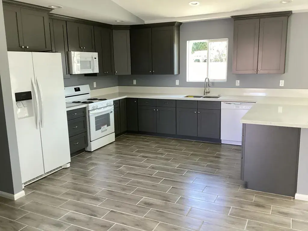 Beautiful new modern construction in Thousand Palms. 4 bed, 2 bath, 2 car garage, epoxy garage floors, refrigerator, washer, dryer and solar system included.