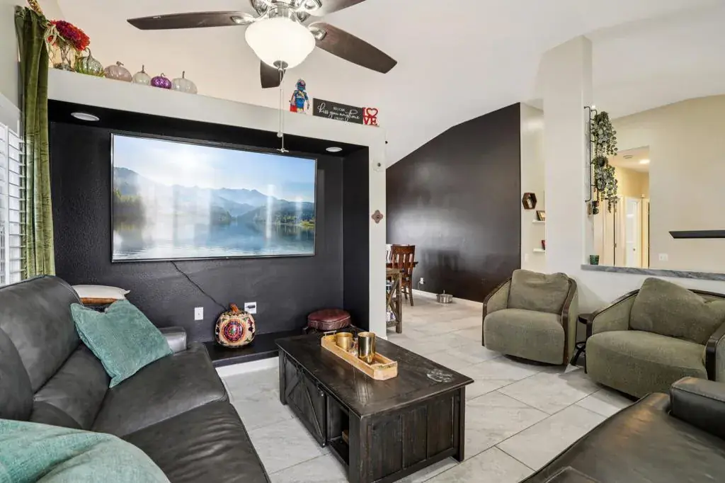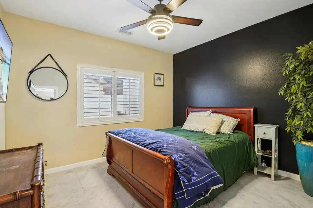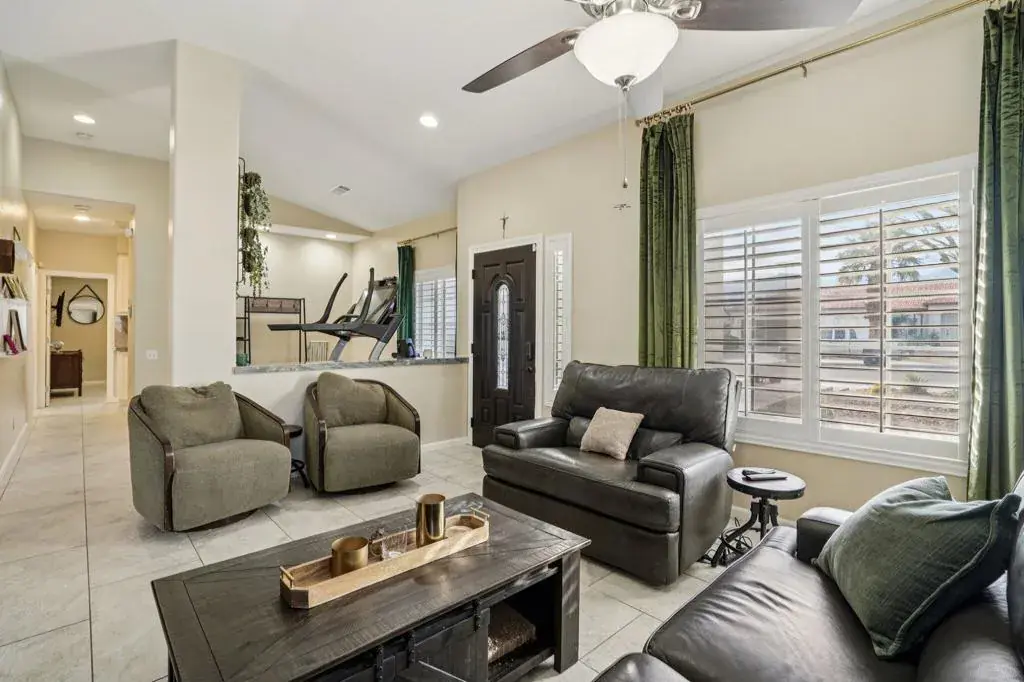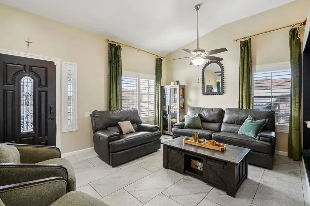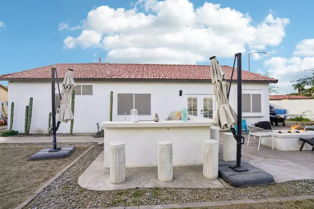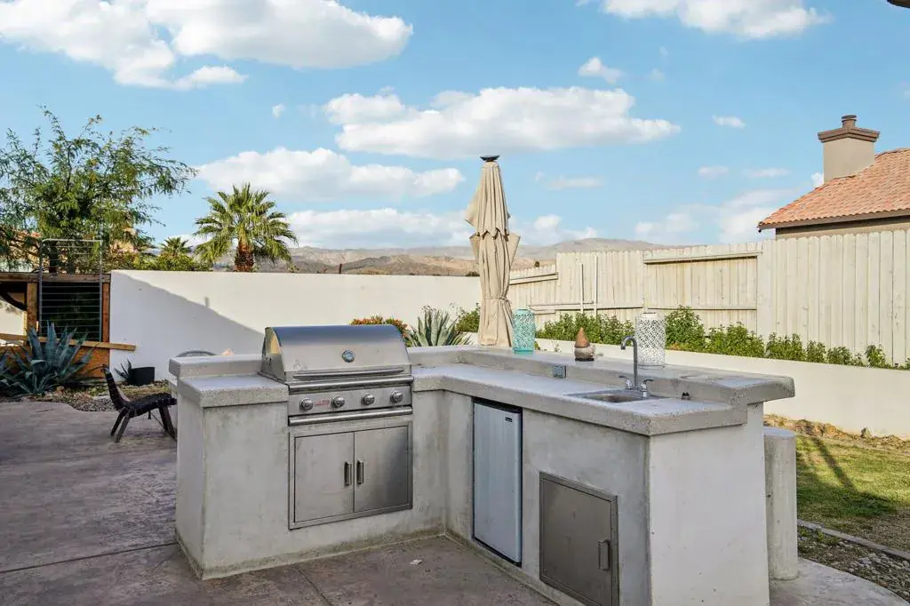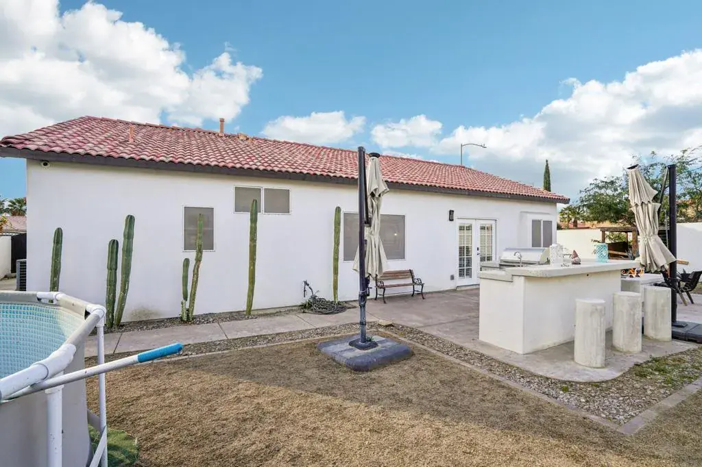 PRICED TO SELL! BRING ALL OFFERS – seller is very motivated. Beautifully updated corner-lot home located in the desirable community of Thousand Palms–a true find for families. The home features a renovated kitchen with natural quartzite countertops, Italian ceramic flooring throughout, and upgraded bathrooms. The private, gated backyard is ideal for entertaining with a built-in BBQ, outdoor refrigerator, and glass fire pit. Additional highlights include RV or side-by-side gated parking, great views, central heat and air with an AC condenser approx. 10 years old, and well-maintained landscaping.The home also includes a commercial-grade smart security system with full exterior video coverage, electronic door locks, and integrated smart thermostat control. Conveniently located within walking distance to an elementary school, park, and library, this safe, family-friendly neighborhood is also just minutes from central shopping, dining, and everyday conveniences.