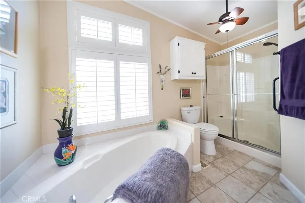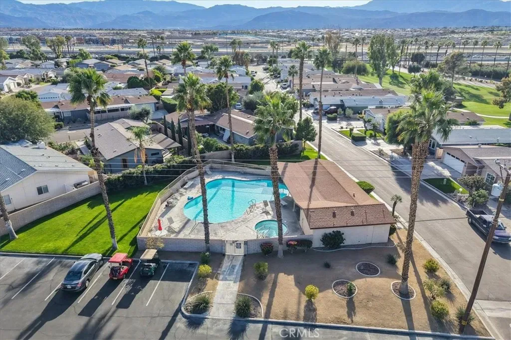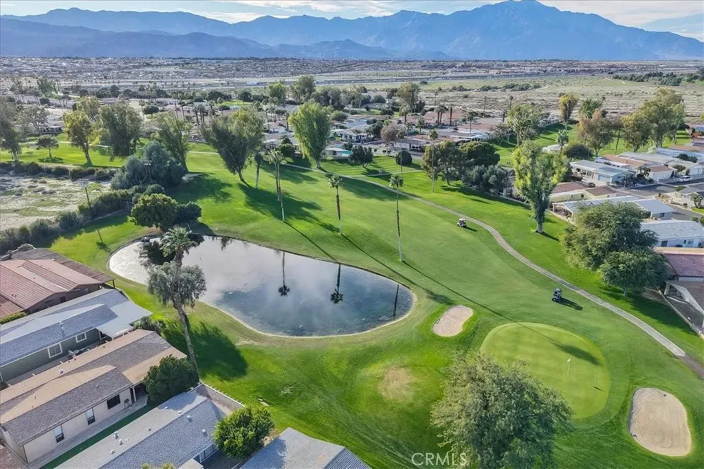 Beautifully situated within a premier 55+ community with a 9-hole golf course and four swimming pools, this turnkey two-bedroom two-bath home offers resort-style living, everyday. What sets this home apart from others? The indoor-outdoor living features breathtaking views of the desert mountain light. Looking west over the fairway and a waterfall fountain, the patio with pergola and misters creates a comfortable outdoor space to relax in solitude, or with family and friends. Enjoy morning coffee as the sunrise reflects pink on the mountains. In the evening, the stunning sunset views provide the perfect backdrop for happy hour. This well-maintained home has had many upgrades including laminate floors throughout, double-pane windows, and plantation shutters that provide both privacy and abundant natural light. The recently remodeled kitchen features generous counter space with beautiful glass tile backsplash, and new cabinets for ample storage. New appliances include refrigerator, dishwasher, and stove top. The living and dining areas are filled with sunshine and enhanced by a neutral color palette, creating a calm and inviting atmosphere that truly feels like a private retreat. A perfect blend of comfort and convenience you’ll find Costco, Sam’s Club, Walmart, Home Depot, a variety of restaurants, and easy freeway access only minutes away. The property also includes a 433A permanent foundation certificate, adding long-term value and financing flexibility.