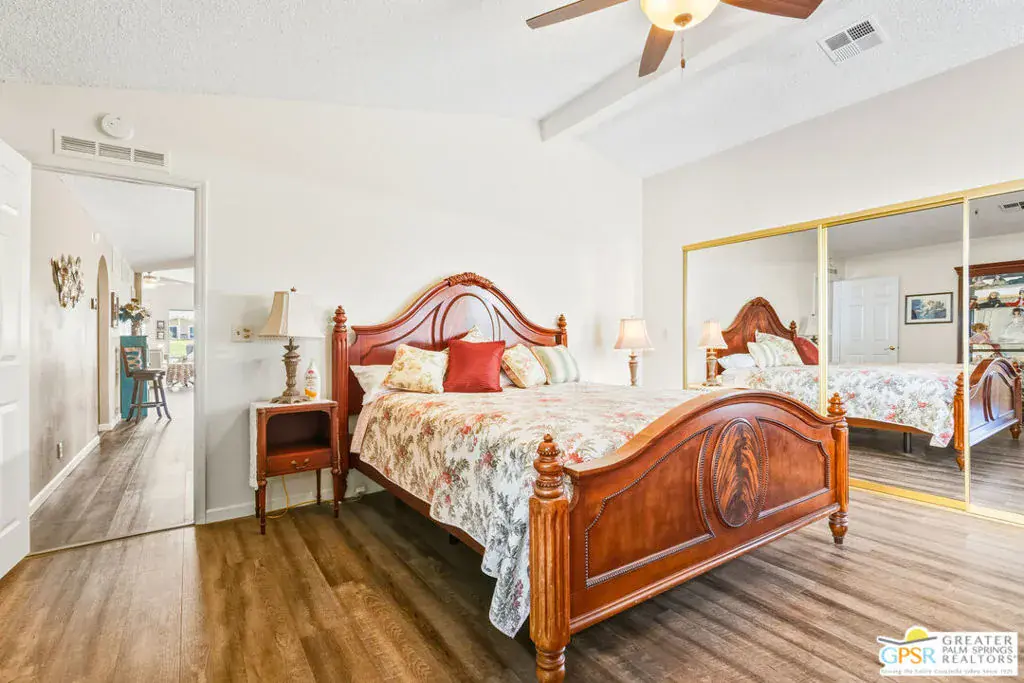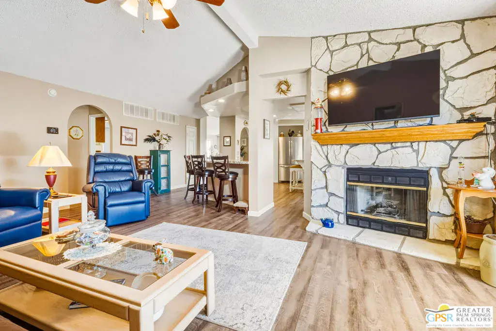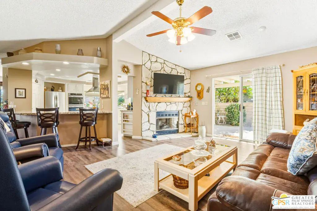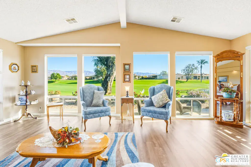 Enjoy the comfort you’ve earned in this well-maintained home overlooking the golf course. Fee land ownership with a recorded 433A adds value and simplifies financing. A light-filled open floor plan showcases scenic views and effortless indoor-outdoor living, creating a peaceful setting. Located in the gated 55+ Ivey Ranch Country Club with low HOA dues and a clubhouse, and just minutes from Palm Springs, dining, shopping, and entertainment, this is easy desert living and the perfect seasonal retreat. Welcome home.