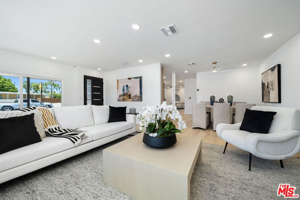 Welcome to one of the most beautifully reimagined homes in Tri Palm Estates & Country Club, a vibrant 55+ community. This is a true top-to-bottom renovation where every detail was elevated, from level-5 smooth-finish walls to custom tile and quartz waterfall countertops. The result is a home that feels refined, modern, and completely turnkey. The kitchen anchors the home with white oak soft-close cabinetry, a striking waterfall-edge peninsula, limestone backsplash, and brand-new stainless steel appliances, including a 36-inch French door refrigerator and workstation sink. Designer touches continue throughout with an 80-inch electric fireplace, custom brass fixtures, and upgraded doors and finishes that add both style and substance. The primary suite lives like a private retreat, complete with a sitting area and a spa-style bath featuring a freestanding soaking tub, oversized walk-in shower with LED-lit niches, and a dual vanity. White oak LVP flooring, recessed LED lighting, and a brand-new HVAC heat pump system bring comfort and efficiency together seamlessly. Situated on an oversized interior corner lot with a large side yard, carport, and enclosed storage. Fee land with low HOA and a 433a foundation allows for VA, FHA, conventional, and reverse financing. Ground level with no steps and a curb-less shower for ease of living. Enjoy resort-style amenities including two golf courses, pools, spas, tennis, pickleball, clubhouse, and dining. Minutes from Acrisure Arena, major shopping, and the Thousand Palms Oasis Preserve. Bold, beautiful, and ready to impress. Furnishings available separately outside of escrow.