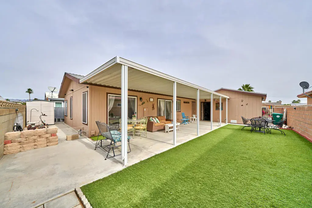 Nicely updated home located on a quiet street in Tri Palm Estates & Country Club! This 3-bedroom, 2-bath residence features an updated kitchen and bathrooms, offering both comfort and modern style. The private, fully fenced yard includes low-maintenance artificial turf–perfect for pets–and a large partially covered patio ideal for entertaining or relaxing while enjoying beautiful mountain views. Additional highlights include a new A/C system and an attached two-car garage. Best of all, this property is eligible for installation of a permanent foundation, making it suitable for financing.Tri Palm Estates & Country Club is a desirable 55+ active community where you own the land. Ownership includes unlimited golf for two deeded owners on the 18-hole course and 9-hole par-3 course, along with access to a putting green, swimming pools and spas, tennis, pickleball, basketball, shuffleboard, and a vibrant clubhouse featuring a banquet room, bar, restaurant, billiards room, and free Wi-Fi. Conveniently located near Costco, Home Depot, Agua Caliente Rancho Mirage Casino, Eisenhower Medical Center, and Acrisure Arena. With easy access to I-10, you’re just minutes from shopping, dining, and entertainment in Rancho Mirage, Palm Desert, and downtown Palm Springs.Don’t miss this opportunity to enjoy resort-style living with land ownership, golf, and exceptional amenities in one of the Coachella Valley’s most desirable 55+ communities. Homes with this combination of updates, privacy, financing eligibility, and views are rare. Schedule your private showing today and see for yourself why this home is the perfect place to enjoy the desert lifestyle.
