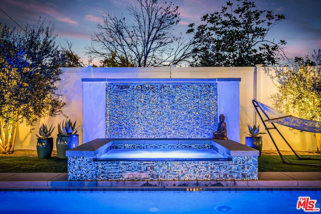 **Available for the first time this summer**Experience upscale living in this beautifully remodeled Toluca Woods estate. The rare six-bedroom, four-bathroom layout blends modern comfort with thoughtful design throughout. A bright open floor plan creates seamless flow between the living spaces and the completely redesigned kitchen, featuring custom quartz countertops, soft-close cabinetry, stainless-steel appliances, and refined finishes that are both functional and visually striking. Soft natural light fills the home, enhancing the airy atmosphere and highlighting the hand-carved engineered hardwood floors. French doors open wide to embrace the coveted California indoor-outdoor lifestyle. The flexible layout includes two bedrooms on the main level and four upstairs, ideal for families or those seeking versatile space. Privately positioned on the opposite side of the main floor is the spacious primary suite, complete with a large walk-in closet, a dual-vanity bathroom with water closet, and a charming flex area perfect for reading, relaxing, or unwinding at the end of the day. French doors from the primary bedroom open directly to the backyard, creating a seamless connection between the private suite and the outdoor retreat. A second downstairs bedroom currently used as an office offers additional flexibility as a guest room, nursery, workout space, or creative studio. The grounds of the property have been completely reimagined. A circular driveway, lush landscaping, and meticulous care by the homeowners elevate the home’s curb appeal to a true storybook setting. Also custom redesigned, the stunning backyard brings together the best elements of a private oasis and a secluded retreat. Resort-style details include a sparkling heated pool with a Baja shelf, in-water loungers, and an umbrellaperfect for cooling off on warm days. A tranquil water-feature wall provides a serene backdrop, while manicured landscaping and clean-lined stepping paths reinforce the home’s modern aesthetic. Mature olive, apple, and lemon trees add charm and character to the yard, creating a garden-like setting that enhances the property’s relaxed California feel. The covered outdoor pavilion extends the living space with a comfortable lounge area, overhead lighting, and built-in heaters for year-round enjoyment. At its center, a fully equipped outdoor kitchen and barbecue island make hosting effortless, while a massive 100-inch flat-screen TV with surround sound transforms the pavilion into the ultimate outdoor entertainment spaceperfect for movie nights, game days, or gathering with friends and family. Surrounded by privacy fencing and lush greenery, the backyard offers a peaceful and stylish setting for entertaining, dining, or simply enjoying the quiet privacy of the space. Some photos digitally enhanced.