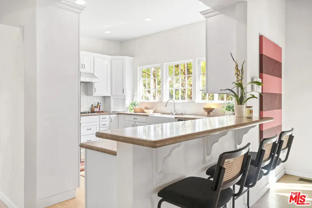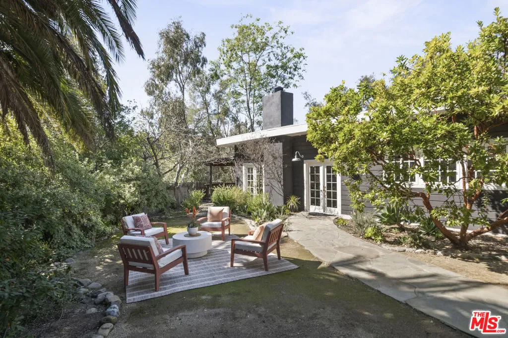 Find your peaceful place to abide in this four-bedroom, three-bath, contemporary cottage-style home with two separate guest suites. Situated on a usable third of an acre with a fenced yard, this home gives you room to entertain family and guests in a mini-compound designed for indoor-outdoor living. The huge kitchen anchors the living and dining rooms, with an open plan that allows guests to flow from the shaded view deck to the back patio. The primary suite is separate from the other three bedrooms, allowing privacy. Having so many bedrooms provides options for a great home office. The main house bonus basement room could be a home theater, a playroom, or an art studio. Your guests will enjoy their stay in either the separate studio unit with its own view patio or the guest suite attached to the garage. Flat play areas are edged by grapefruit, lemon, lime, plum, and pomegranate trees. Plenty of parking in the garage and driveway. Close to Topanga State Park trails. Come up to the canyon!