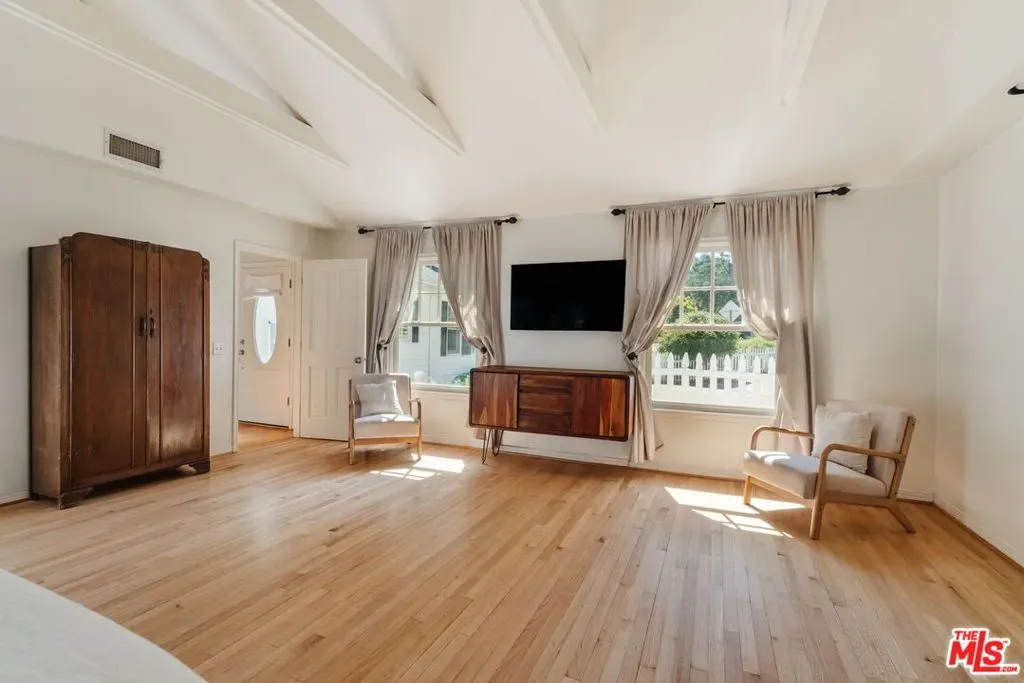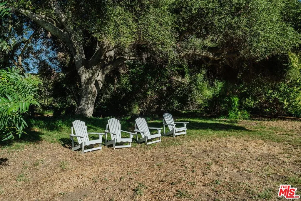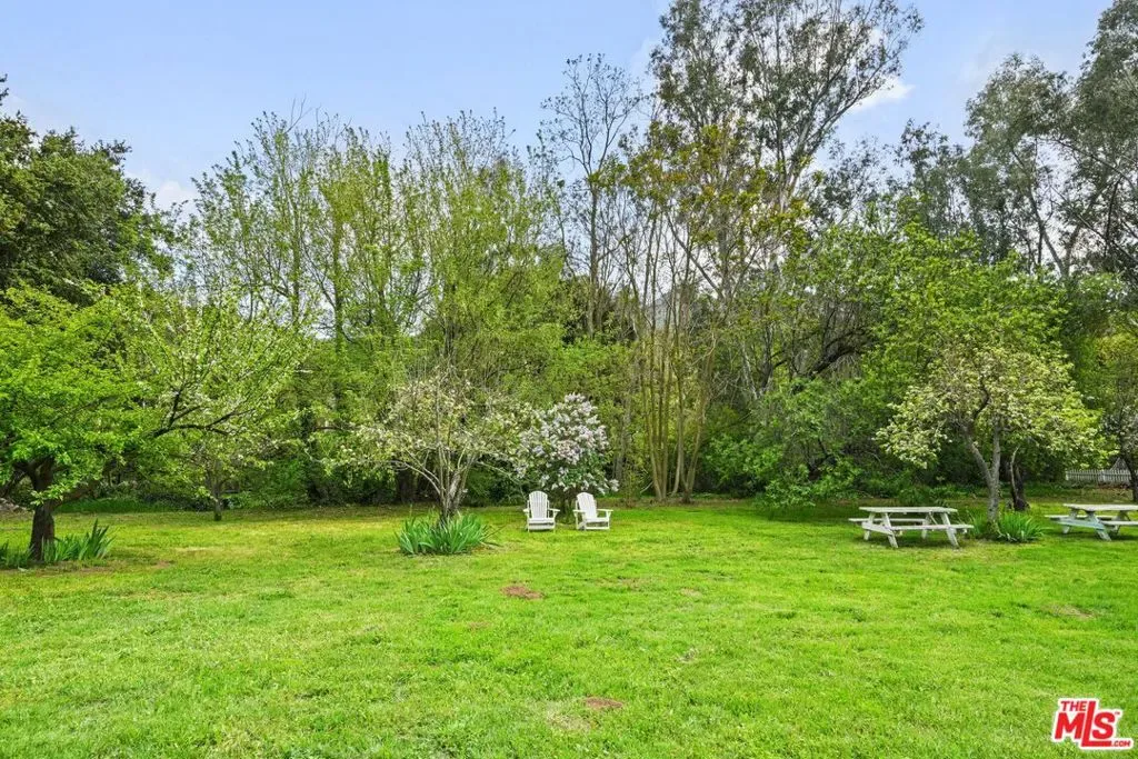 Own a Topanga Landmark. At the far end of the Historic Bonnell Park, a storied Cape Cod home is set in lush, verdant, meadows, framed by towering oaks, cottonwood, maple, and ash trees. With the park serving as a de facto front yard, the white house with inky black shutters sits on a vast flower-framed lawn, beckoning as if from a dream. Set at the end of the Bonnell Cul de sac, this cherished home harkens to farm country, sitting on over 1 1/3 acre of flat lawns, orchards, and gardens. Strawberry peak and Little Rock, two local icons, serve as a backdrop to this home. The history of Topanga is told here. The home was once part of the original John Bonnell estate which includes “The Old Stone House,” considered the oldest house in Topanga, built by Jack Wood, a pioneer stage and Post Office mail driver. It has been owned by just 2 families over the past 70 years, and was reimagined by Topanga’s renowned architect, Cary Gepner, into the graceful sanctuary it is today. The brief was to seamlessly meld the indoors and out, so every room took in the beauty of the incredible grounds. He delivered. Rooms flooded with abundant natural light, through 5 sets of French doors, encompass the perfect flow for celebrations, or quiet enjoyment. Visitors to the park often exclaim it is the “Most beautiful home in Topanga!” Now is your chance to own this lyrical property, with its oversized pool and spa, fruit trees, and gardens, all set along the banks of Old Topanga Creek. Over the years, this home has been cast as an East Coast home in movies and tv shows, because it calls nostalgically to us of simpler times. But the interiors are updated with serenely minimal rooms perfect for modern country living. Bare feet pad across polished old oak floors. The front foyer opens to a gracious, soaring, two story living room, with a classic fireplace. A wall of French doors looks out from the living room and spacious dining room to where deer meander, and hawks float on updrafts. The inviting open kitchen, with its vast island, hosts a crowd. Doors flung open to the huge patio, pool and spa, allow for that quintessential California indoor-outdoor life! The spacious primary suite opens to the pool through French doors. Its bright bath, with a steam shower, vintage fixtures, and a clawfoot tub opens to a poolside shower. Two other bedrooms with sun-splashed windows sit on the main level. A captivating suite of rooms under the eaves include an antechamber under automatic, venting skylights, that is perfect for reading or drawing. A small nook nearby entices as a hideaway play room. The bedroom up here is a fantasy space ripped from a classic tale, with windows overlooking the estate. Classical landscaping, with abundant flowers, bowers of roses, and trees laden with fruit surround the home. Birdsong brightens your mornings, and frogs, crickets, and the soft hoot of owls serenade you at night. Protected Bonnell Park, Topanga’s Halloween destination, is owned by a neighborhood association, and development of the park is forbidden. Red Rock Park, Summit to Summit, and Backbone hiking trails are nearby. Topanga’s cafes, shops, and cultural landmarks are close by. Malibu’s fabled beaches are near enough to feel the coastal breezes. Easily get to the 101 or the westside. You can have your rural dreams, and your big city life, too. The magic of this home abides, with shooting stars, darting bats, and the burble of the creek. And now you can weave your life into the sweet tale of this storybook home.