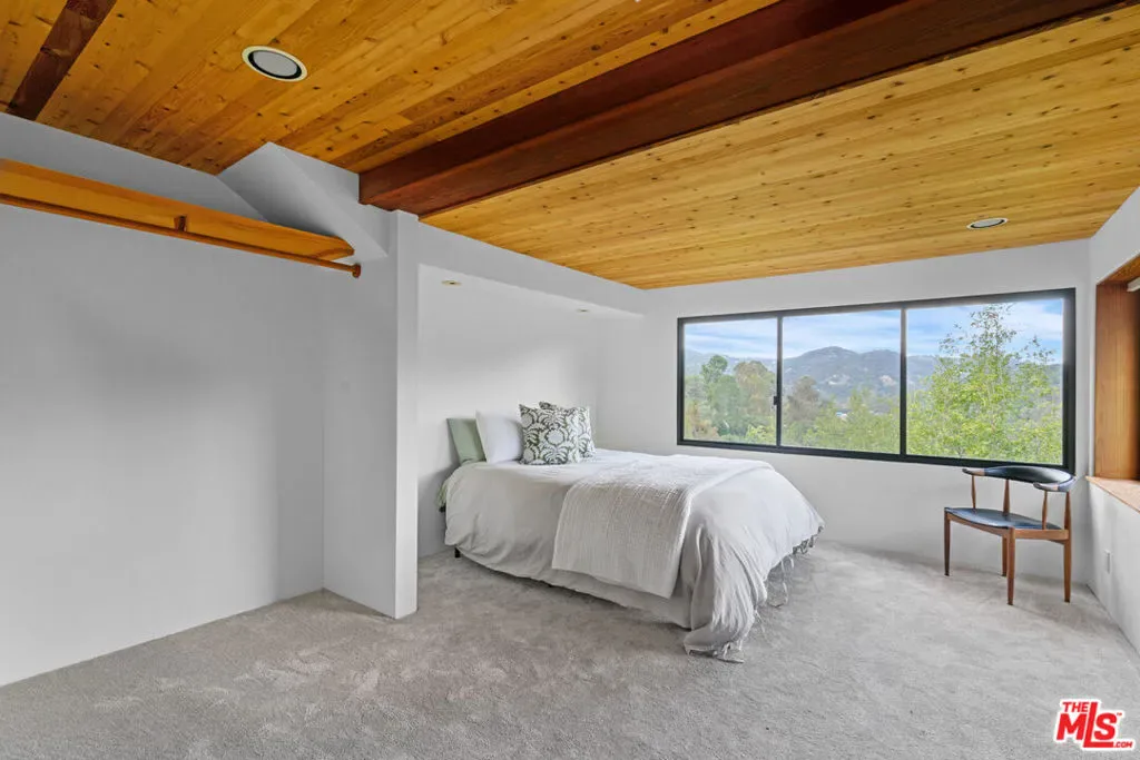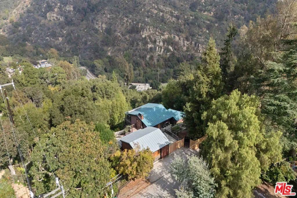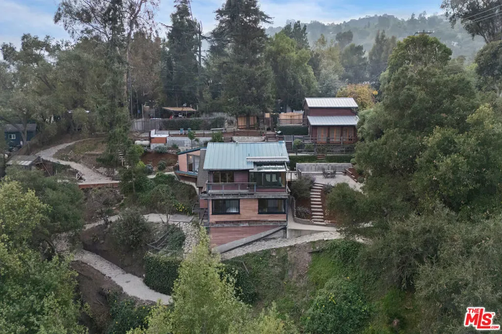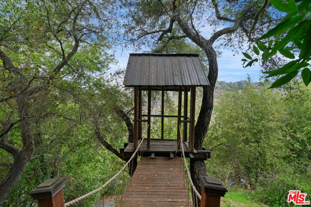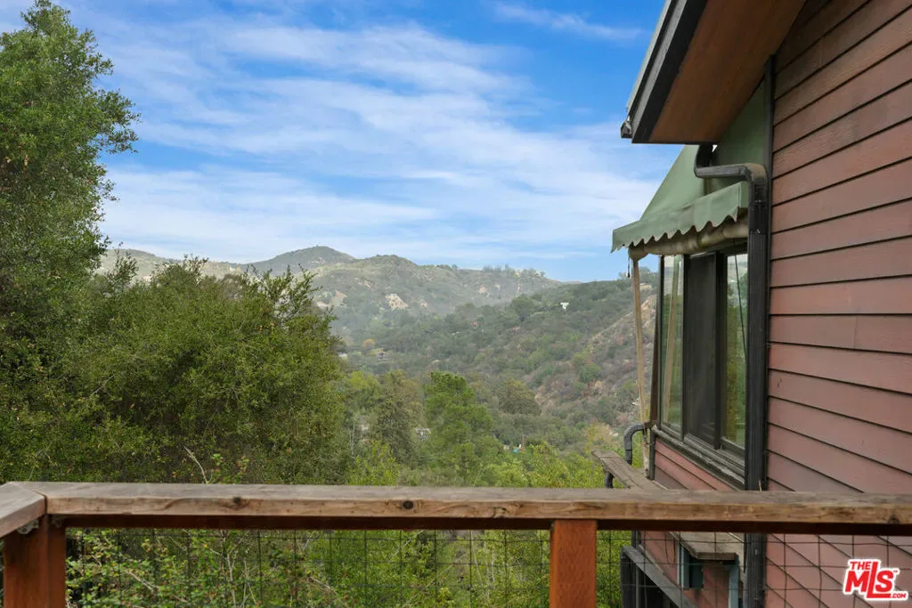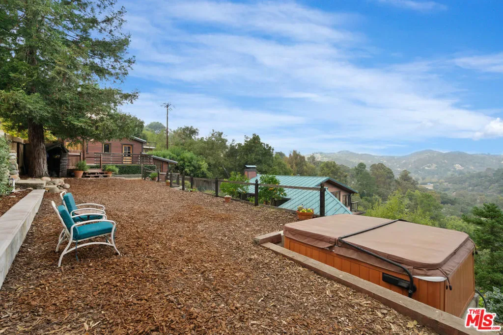 First time on the market in over 30 years, this lovingly remodeled and privately located former hunting lodge has some of the best views in Topanga. Located in Fernwood and situated on 4 lots totaling nearly 2/3 of a secluded acre, this metal-roofed home is thoughtfully landscaped with natives, Mediterranean, and drought-tolerant plantings. Enter through the dramatic main-floor living area, with kitchen, living, and dining rooms, and a versatile den/3rd bedroom. Spacious living room has vaulted ceilings, wood floors, and a gas fireplace with an electric starter. Open kitchen lets you enjoy the views while cooking, and friends can gather at the long bar. There are slate floors, custom cabinetry, a GE monogram refrigerator, and a Thermador range and dishwasher. All rooms have far-reaching views, and the convertible den has a glass ceiling allowing you to look up to the clouds. Main-level bath has a claw-foot tub, where you can relax and soak in the views. Lower level features two bedrooms where you wake up to a colorful sunrise, a unique bathroom with a river-rock-lined shower, laundry area, and open family area. Separate light-filled studio is a great creative space away from the main house, wired for internet, and is the perfect spot for your morning asanas and afternoon workspace.Outdoors, you can wander through the yard unseen by neighbors, on the rock pathways to the many sitting areas, the upper-level Sundance hot tub with mountain views, and a tree house. The well-maintained yard features colorful natives, fruit trees, and stately mature trees. Harvest your own fruit with orange, pomegranate, apricot, and cherry trees, and blackberry bushes. The house comes with tools and equipment to maintain your new property, including a small tractor for getting around the yard.Located on a quiet cut-de-sac, there is a fenced entry, plenty of parking, with a two-car garage, separate gated parking area, and additional parking out front.