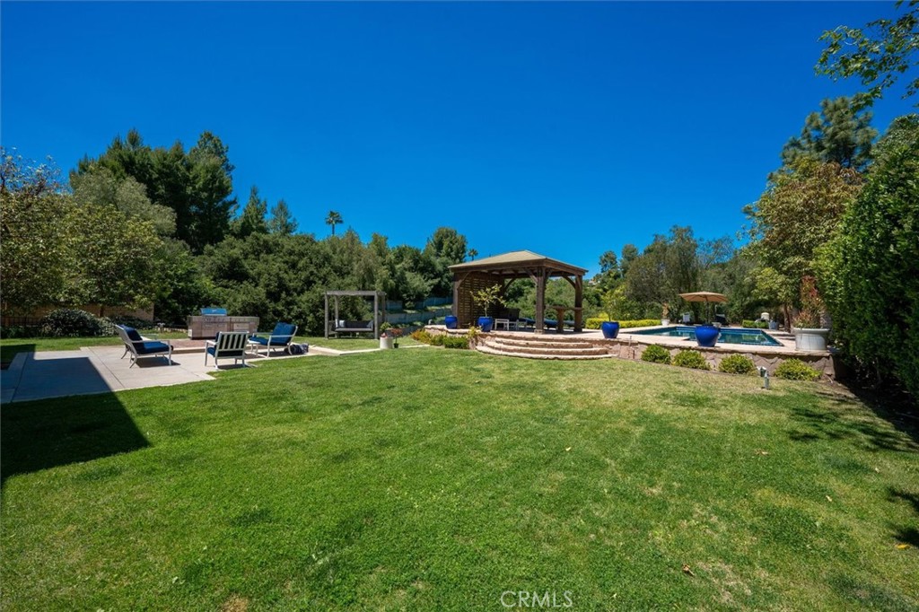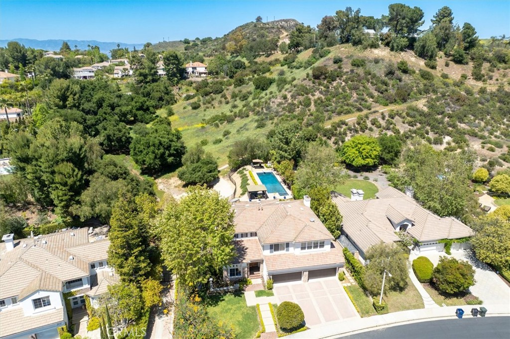 INCREDIBLE VALUE! Tucked away within the prestigious guard-gated enclave of Summit Point Estates, this exquisite five-bedroom, four-and-a-half-bath residence offers the perfect blend of timeless elegance and modern luxury. Situated at the end of a peaceful cul-de-sac, the home welcomes you with a stately double-door entrance that opens to soaring 30-foot ceilings and a bright, thoughtfully designed floor plan ideal for both refined entertaining and everyday living. The grand formal living and dining rooms exude sophistication, seamlessly flowing into a chef’s dream kitchen—beautifully appointed with dual center islands, top-of-the-line Thermador appliances, and an abundance of custom French country cabinetry. The adjacent family room, anchored by a cozy gas fireplace, offers a warm and inviting ambiance, while the charming breakfast island provides the perfect spot for casual dining. A well-appointed guest suite with a private bath completes the main level, ideal for visiting family or friends. Upstairs, the expansive primary retreat features a serene sitting area, dual walk-in closets, and a luxurious en-suite bath with double vanities, soaking tub, and separate shower. Three additional bedrooms—two sharing a Jack-and-Jill bath and one with a private en-suite—provide ample space for family or guests. Walls of glass open to the resort-inspired backyard, where lush landscaping surrounds a sparkling pool and spa, expansive lawn, and covered patio—offering an idyllic setting for entertaining or tranquil relaxation. A finished four-car garage, complete with a 220-volt EV charger, adds to the home’s exceptional amenities. Located in the scenic Santa Monica Mountains, just minutes from hiking trails, premier shopping and dining at The Village, and the iconic beaches of Malibu—this is California living at its finest.