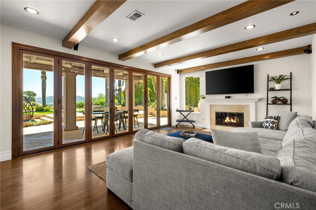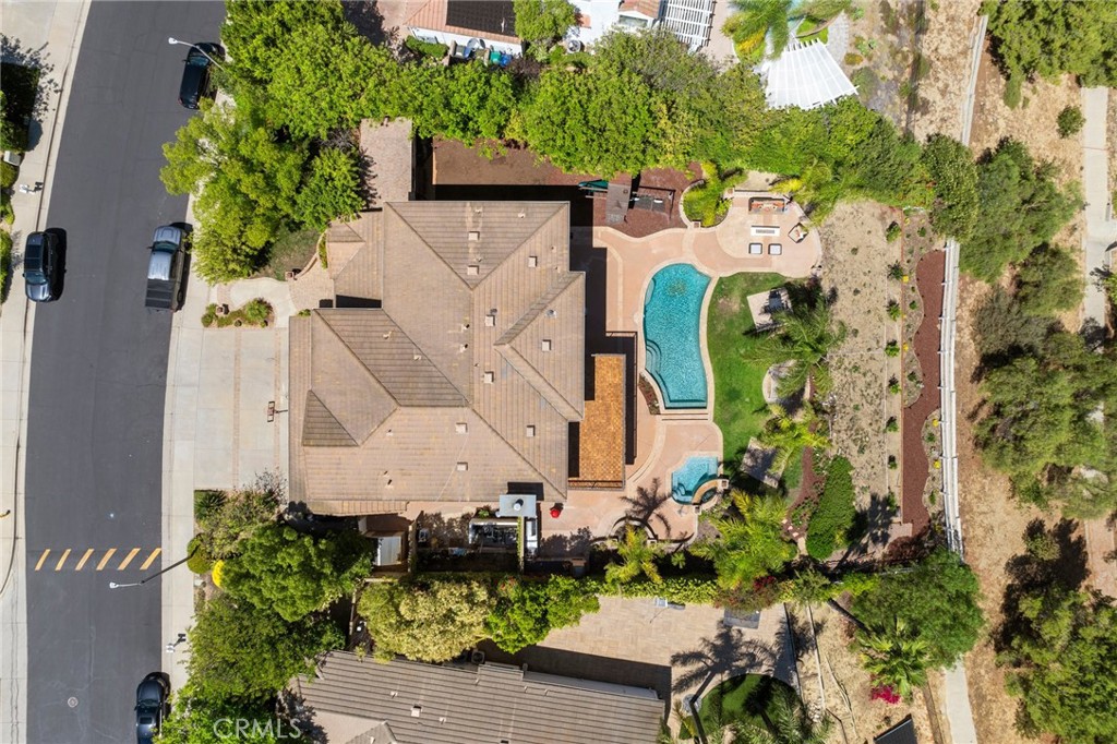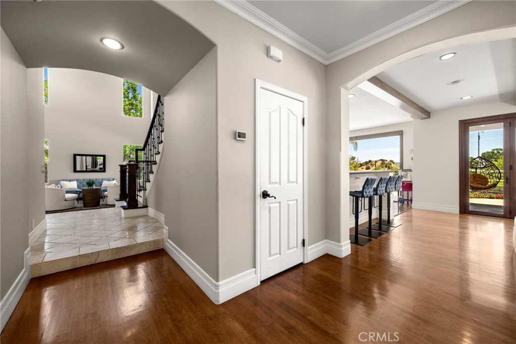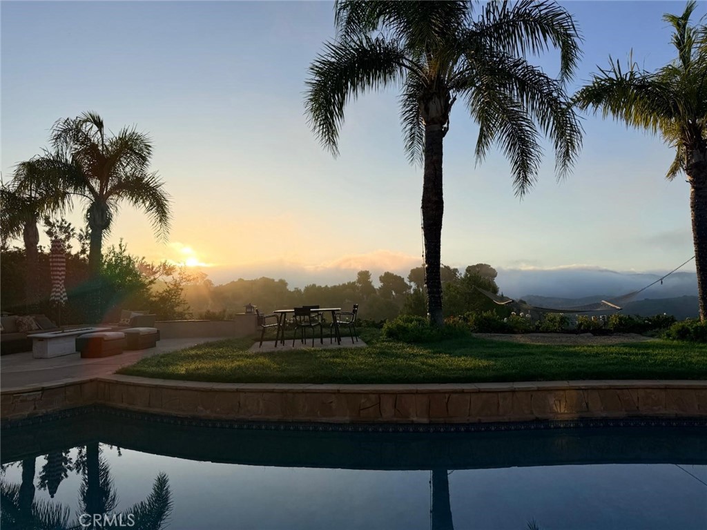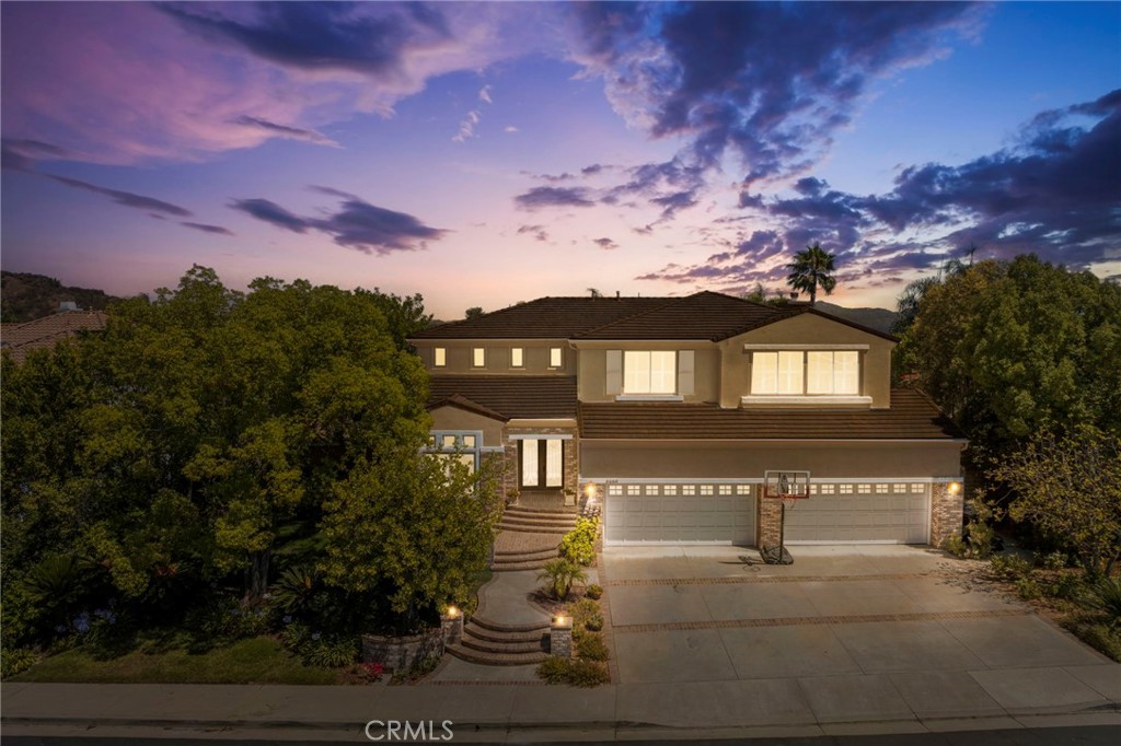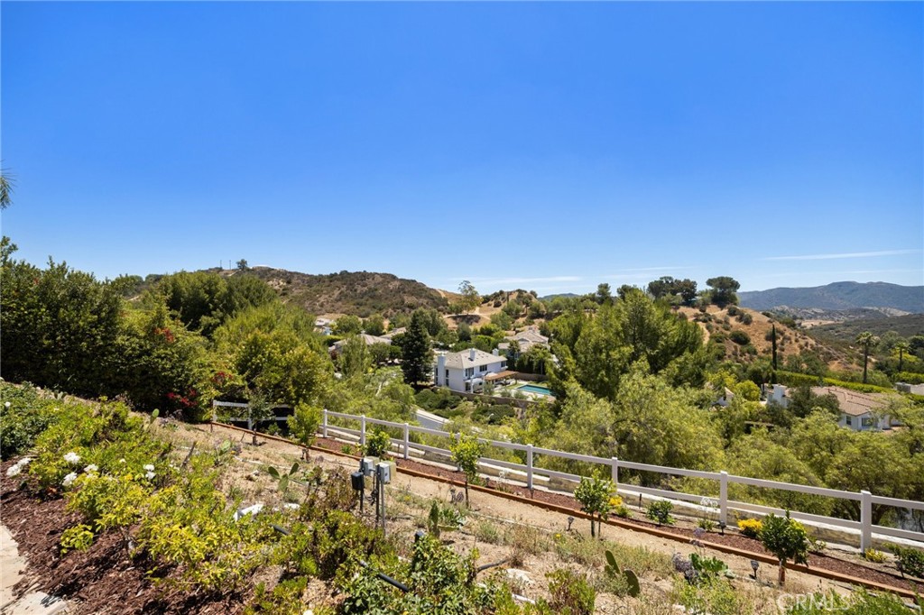 Guard-gated canyon estate with panoramic mountain and Catalina views, just minutes to Malibu beaches and Calabasas shopping and dining. Set high above the valley in Summit Pointe, this private home blends dramatic scale with peaceful canyon living. Double-height living and dining spaces frame sweeping vistas and open to a resort-style backyard with saltwater pool and spa, outdoor fireplace, built-in BBQ, covered patio, mature trees, and refreshed landscaping, ideal for entertaining or quiet retreat. Folding glass doors create seamless indoor-outdoor living. The open-concept kitchen with large center island flows into the main living areas, perfect for gatherings. The main level includes a guest suite with ensuite bath and two flex rooms ideal for a home office, gym, media room, or studio, plus powder room, laundry, and multi-car garage. Upstairs, the primary suite spans the rear of the home with a private balcony overlooking the mountains, spa-style bath, dual walk-in closets, and separate office or wellness area. Three additional bedrooms each feature private baths, including one with a steam shower. Smart home technology, EV charging, surround sound, patio heaters, and new HVAC provide modern comfort. Nearby premier equestrian facilities, including Fair Hills Farms, and easy access to Malibu beaches, canyon trails, golf, and the Calabasas-Malibu scene come together here in a way that is hard to find elsewhere.