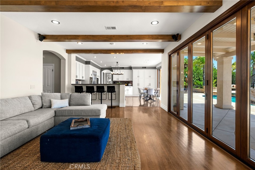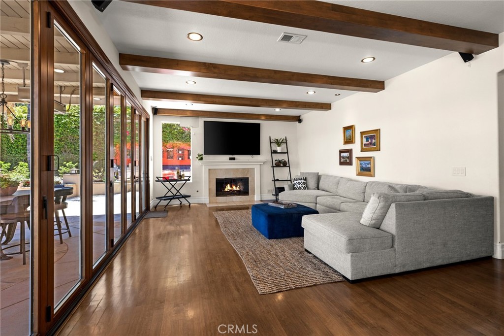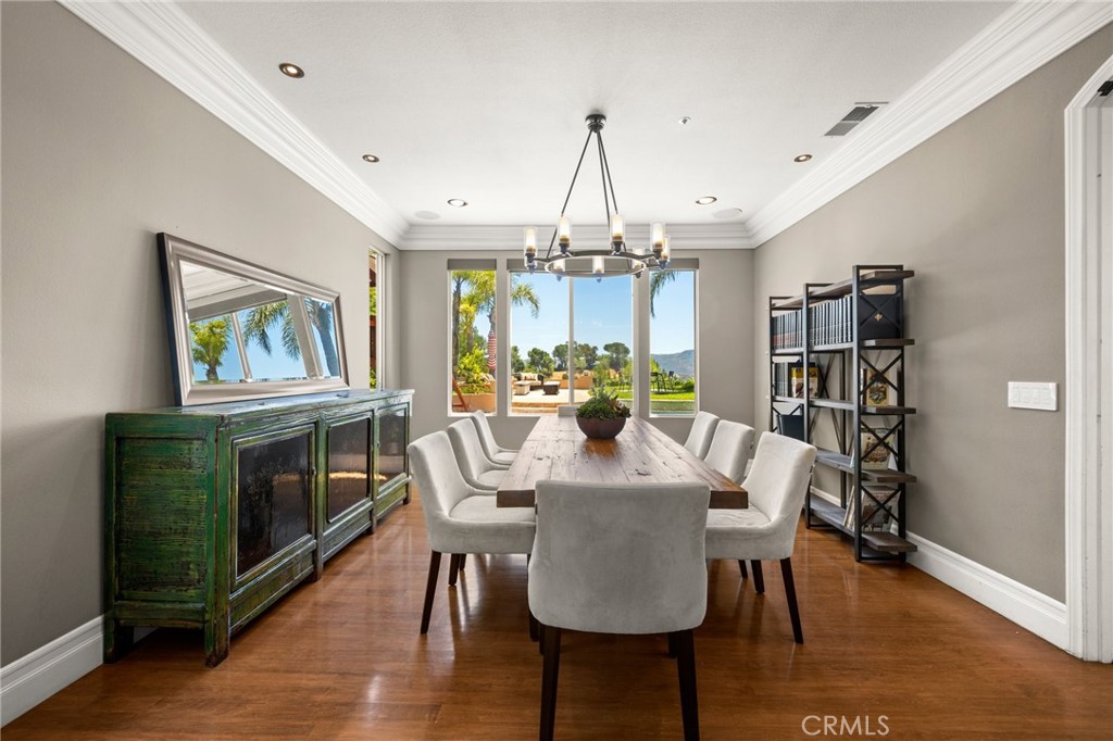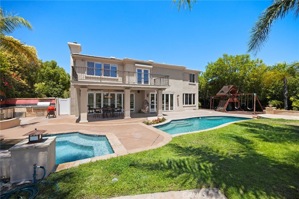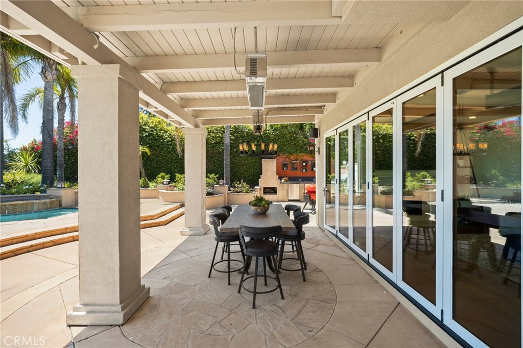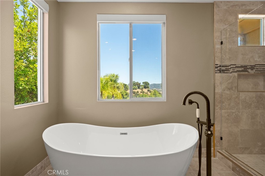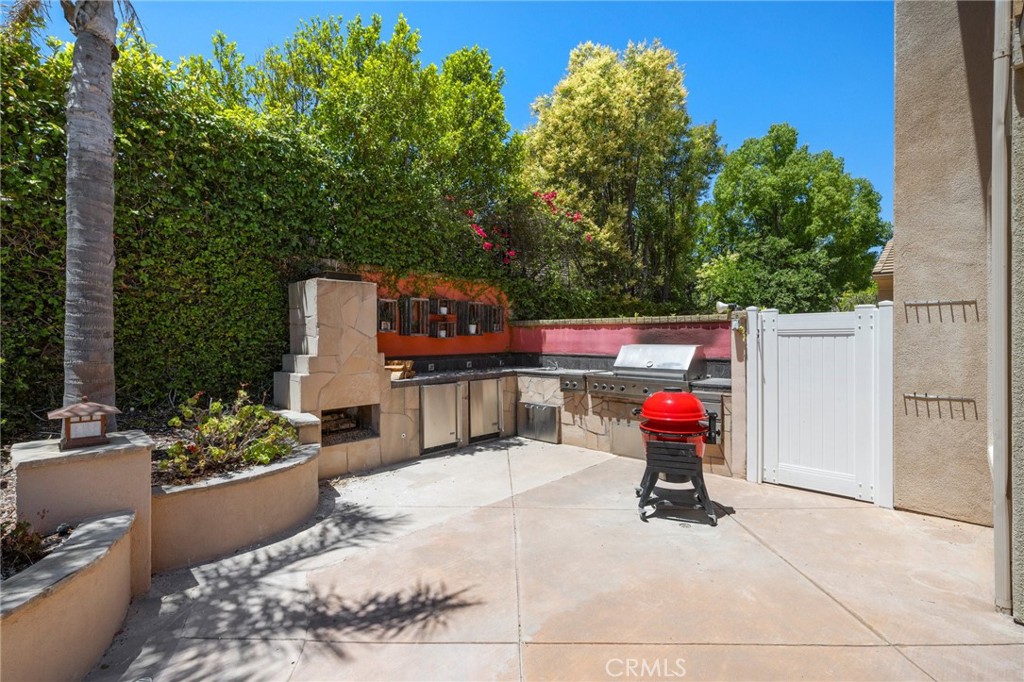 Guard-gated canyon estate with panoramic mountain and Catalina views, just minutes to Malibu beaches and Calabasas shopping and dining. Set high above the valley in Summit Pointe, this private home blends dramatic scale with peaceful canyon living. Double-height living and dining spaces frame sweeping vistas and open to a resort-style backyard with saltwater pool and spa, outdoor fireplace, built-in BBQ, covered patio, mature trees, and refreshed landscaping, ideal for entertaining or quiet retreat. Folding glass doors create seamless indoor-outdoor living. The open-concept kitchen with large center island flows into the main living areas, perfect for gatherings. The main level includes a guest suite with ensuite bath and two flex rooms ideal for a home office, gym, media room, or studio, plus powder room, laundry, and multi-car garage. Upstairs, the primary suite spans the rear of the home with a private balcony overlooking the mountains, spa-style bath, dual walk-in closets, and separate office or wellness area. Three additional bedrooms each feature private baths, including one with a steam shower. Smart home technology, EV charging, surround sound, patio heaters, and new HVAC provide modern comfort. Nearby premier equestrian facilities, including Fair Hills Farms, and easy access to Malibu beaches, canyon trails, golf, and the Calabasas-Malibu scene come together here in a way that is hard to find elsewhere.