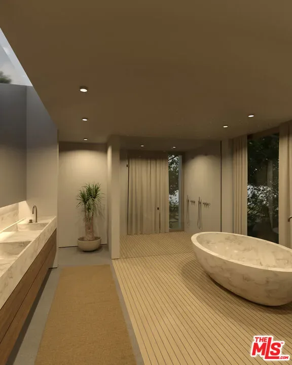 Rare and breathtaking 7.4-acre compound in one of Topanga’s most prized locations, partially built and permitted to continue construction immediately. The main residence (4400 sq ft) features a dramatic breezeway with custom Styline doors, seamless indoor-outdoor flow, mountain views on one side and an expansive pool / spa on the other. A detached guest house (2600 sq ft) offers private one-bedroom and two-bedroom suites, along with a garage and artist’s studio, ideal for guests or staff. There are clear (and permissible) permit plans for an additional 1700 sq foot already-designed wellness/gym and double office enclave a 30 second walk from the main house. There are multiple large flat pads for gatherings, creative spaces, and retreat. Trails run throughout the property’s gorgeous territory. The house is fully designed by a top architect-designer team with a top notch builder ready to go. This is a truly special property in one of the most desired locations in all of Topanga. For someone looking for a life-long compound, this is the one.