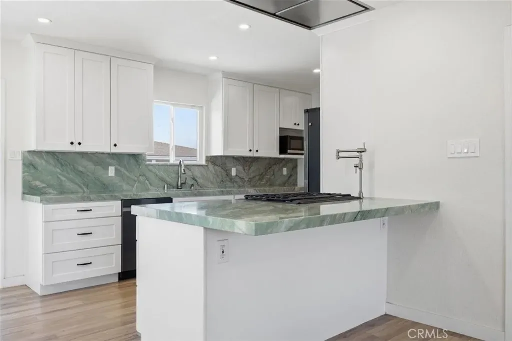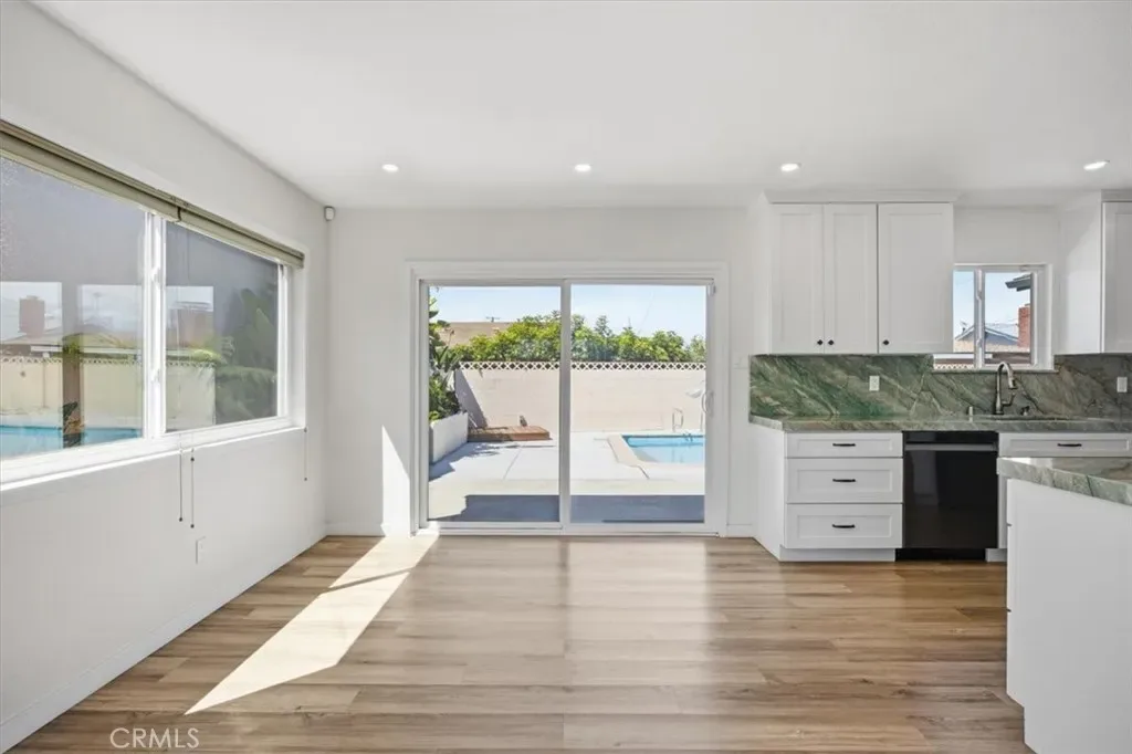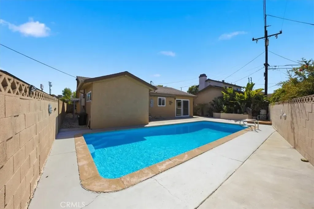 Nestled in a peaceful neighborhood, this well-loved and beautifully transformed single-level home offers 3 spacious bedrooms and 2 updated bathrooms, creating a welcoming space that truly feels like home. Step inside to discover an abundance of natural light and an open, perfect layout designed for both everyday living and entertaining. The inviting living and dining areas flow seamlessly into a beautifully remodeled kitchen featuring custom Brazilian Quartzite countertops and backsplash, an extra large sink with touch faucet, a custom peninsula with built-in stove, a pot filler faucet, and a striking Forno Arezzo ceiling-mounted range hood. Thoughtful storage upgrades include an oversized pantry, custom spice rack slide-outs within the kitchen cabinetry. With ample cabinetry and convenient side-by-side laundry tucked neatly into a closet, this kitchen is truly the heart of the home. Step outside to enjoy your own personal resort complete with a newly refreshed pool and an abundance of patio space with an retractable patio awning, ideal for relaxing or entertaining year-round. Additional highlights include recessed lighting, plumbing and electrical upgrades, a two-car garage, and an extended driveway perfectly suited for RV parking and equipped with hookups. Located close to shopping, eateries, hospitals, freeways, and more, this home offers the best of South Bay living.