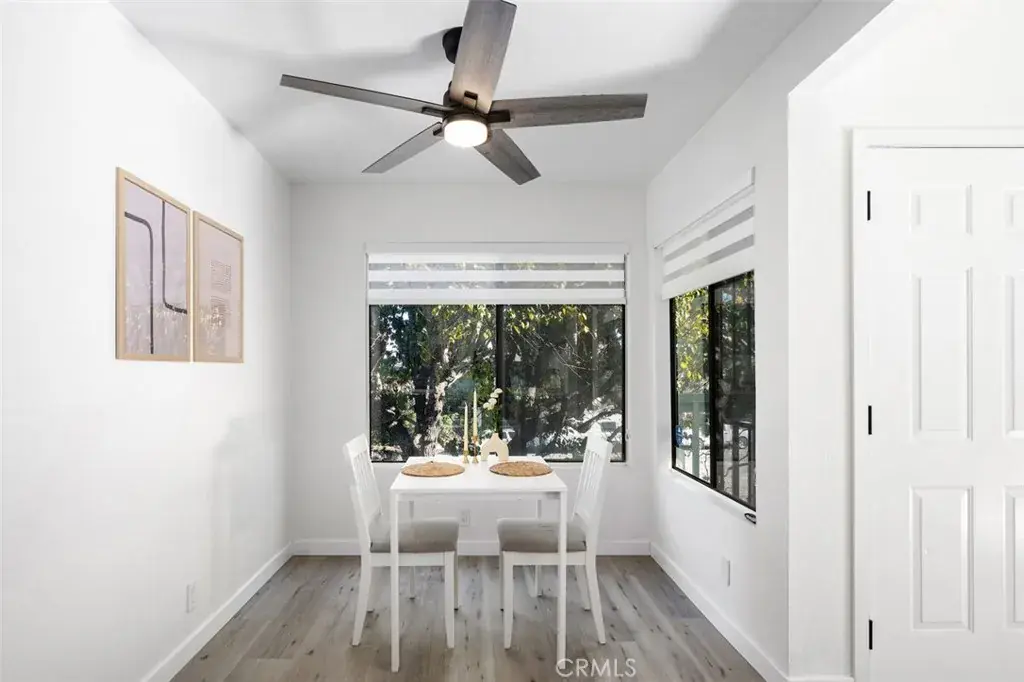 Newer luxury vinyl plank flooring runs throughout, paired with fresh interior paint in a modern, neutral palette. Energy-efficient LED lighting, updated vent covers and a dining area ceiling fan with remote control enhance comfort and functionality.