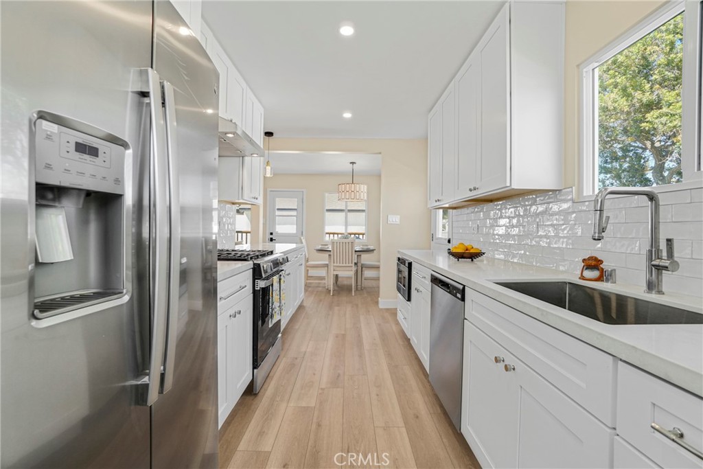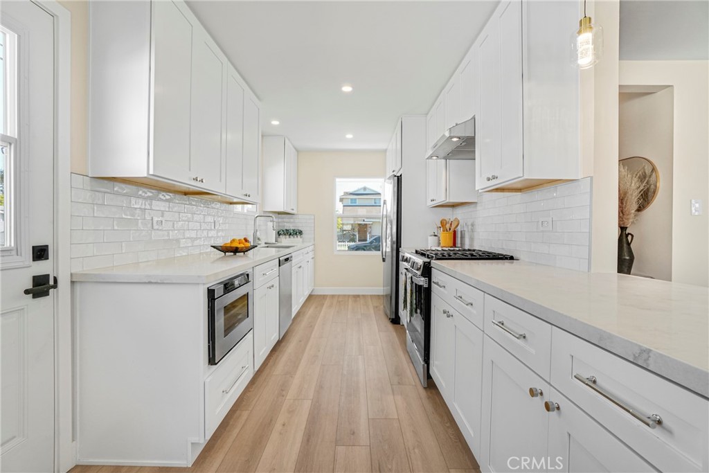 The thoughtfully re-imagined home features 3 bedrooms and 2.5 bathrooms. The stunning kitchen showcases quartz waterfall-edge countertop, new custom cabinetry, stainless steel appliances, and designer lighting. The backyard includes a sizable deck, perfect for morning coffee or watching the kids play in large back yard.