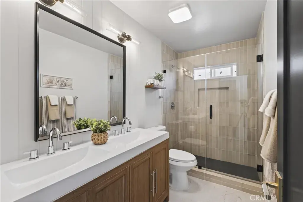 Fully remodeled with warm, modern style, 21405 Mildred Ave offers turnkey living in the heart of Torrance’s desirable Southwood neighborhood on one of the most coveted streets. This 3-bedroom, 2-bathroom home has been thoughtfully updated from top to bottom, blending charm, comfort, and functionality in one inviting package. At the center of the home, a beautifully redesigned kitchen features white oak shaker cabinets, quartz countertops, tile backsplash, and stainless steel appliances—all chosen for both style and durability. Both bathrooms have been fully remodeled with double vanities and tasteful finishes, including new tile work, updated fixtures, and a glass-enclosed shower in the ensuite. The laundry area is conveniently located near the bedrooms, and a sliding glass door from the rear bedroom leads out to a brand-new wooden deck and oversized backyard—freshly landscaped to provide a sunny play space with the perfect trees offering afternoon shade. Natural light fills the interior, highlighting the soft neutral tones, recessed lighting, and brand-new laminate flooring that flow throughout. Fresh exterior paint and clean curb appeal round out the home’s welcoming first impression. Additional upgrades include: new HVAC and ducting, upgraded 200-amp electrical panel, new wiring, updated plumbing, new windows and exterior doors, interior doors and hardware, modern light fixtures and ceiling fans, finished garage, and a new automatic sprinkler system. All of this just minutes from award-winning Torrance schools, local parks, shopping, dining, and the beach—this is South Bay living at its best, combining everyday ease with a move-in ready finish.