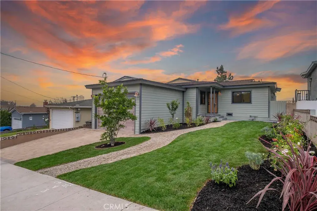 New Price Improvement!!! Welcome to your future home at 25710 Crest Rd, a true “Honey, stop the car!” opportunity in the desirable Hillside Walteria neighborhood of South Torrance. This beautifully updated 4-bedroom, 1.75-bath home is ideally located just half a mile from Rolling Hills Estates and less than five miles from the beach. Boasting exceptional curb appeal, it features new exterior paint, Hardie siding, a 50-year CertainTeed Presidential Shingle roof, new fascia boards, soffits with casement lighting, three new exterior fixtures, an oversized custom garage door, a new paver driveway, tankless water heater, 200 AMP electrical panel, EV charger, and a stunning Signet fiberglass entry door with privacy glass. The front and rear landscaping showcase new sod, sprinklers, and drip systems, along with a Carrotwood tree, Green Gage plum tree, apple and lemon trees, and 45 new privacy trees in the backyard. Inside, natural light fills the open living room with refinished original hardwood floors, smooth ceilings, new baseboards, and LED recessed lighting that flows into the dining area with beautiful views. The fully remodeled kitchen features new soft-close cabinetry, quartz countertops, a farmhouse sink overlooking the landscaped front yard, stainless steel appliances, and luxury laminate flooring. The sunroom has been converted into a fourth bedroom with a private ¾ bath, recessed lighting, mirrored closets, and direct access to the rear yard. Both bathrooms include new marble flooring, full bathroom has new vanity, and elegant finishes. Additional highlights include new dual-pane Marvin Low E3 windows, fresh interior paint, skim-coated walls, five ceiling fans, and an inside laundry room with cabinetry. The spacious backyard is perfect for relaxing, entertaining, barbecues, or gardening. Conveniently located near Trader Joe’s, AMC Theatres, Whole Foods, 24-Hour Fitness, and an array of shops and restaurants. This stunning home is also located in wonderful neighborhood within top-rated schools. This gem won’t last long, it’s a must-see!!!
