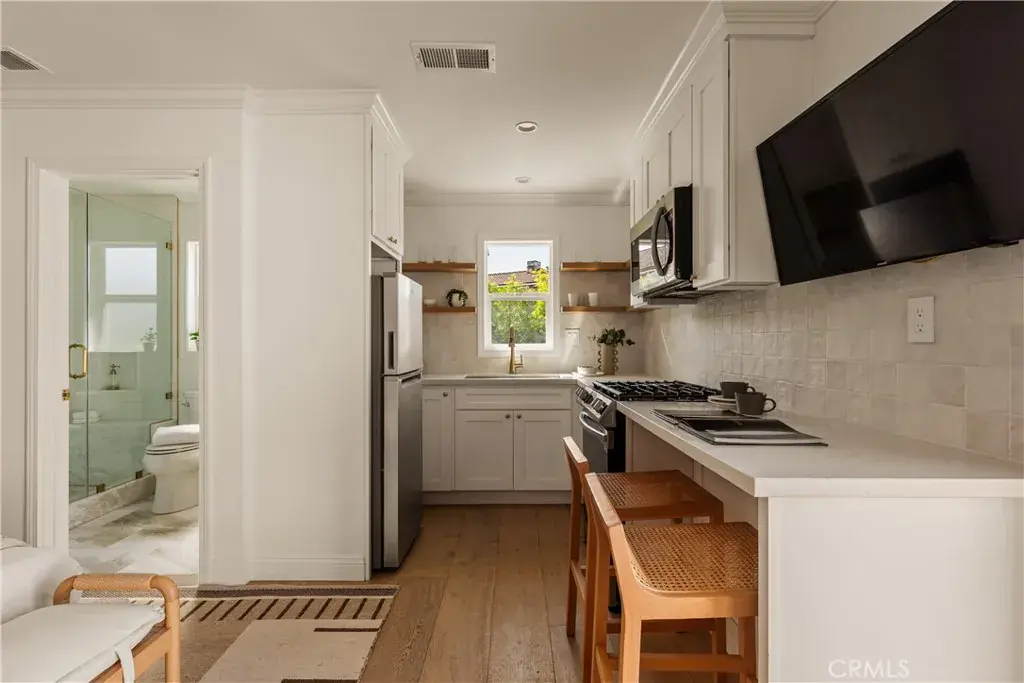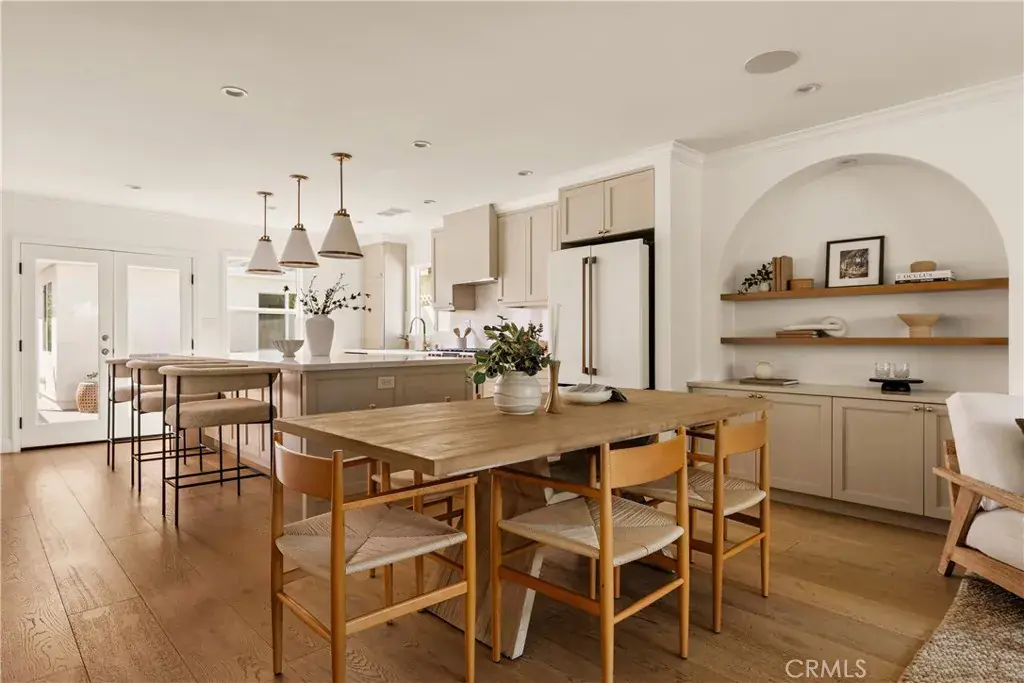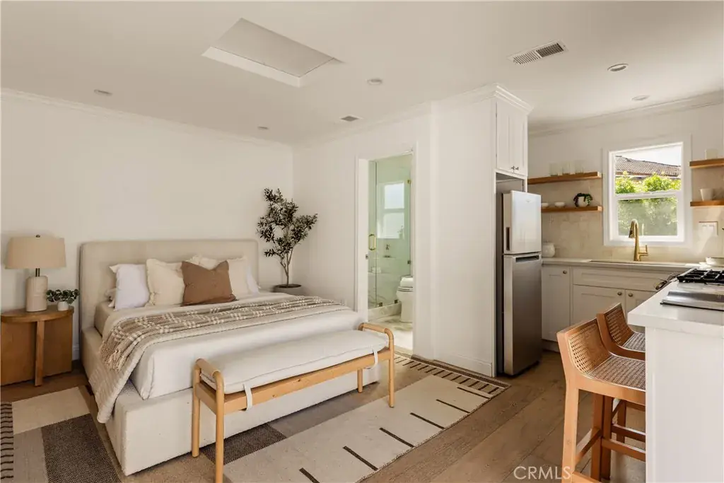 Experience a thoughtfully private compound, this residence evokes elegance and a distinctly modern sensibility. Each space has been curated with hand-selected finishes – from the custom kitchen, to the high end details. The arched living room wall introduces a warm, textural sophistication that continues throughout this exceptional home. The kitchen offers the perfect balance of form and function. Anchored by a substantial center island, this space features Café appliances, a custom designed hood and an expansive walk-in pantry outfitted with custom built-in shelves. Designed with both entertaining and everyday living in mind, it opens seamlessly to the home’s main living areas, creating a fluid, sunlit space where gatherings unfold with ease. The main residence offers four bedrooms and three baths, including a versatile suite that opens to a serene patio – ideal for guests or a tranquil home office. The primary suite features an oversized walk-in closet, and spa-like bath. Beyond the interiors, an extraordinary outdoor sanctuary awaits, along with Podocarpus trees and multiple seating areas. The outdoor space gracefully links the main residence to a fully equipped ADU, complete with a private bedroom and bath, full kitchen, and laundry, offering exceptional versatility and opportunity. Set within a close-knit, highly desirable neighborhood with premier access to top-tier schools, the beach, golf, shopping, and dining, this estate is a rare opportunity to live beautifully, live effortlessly, and live inspired.