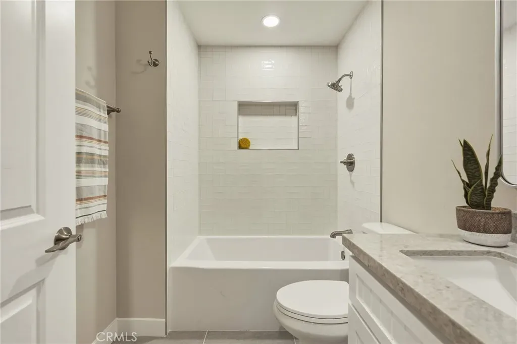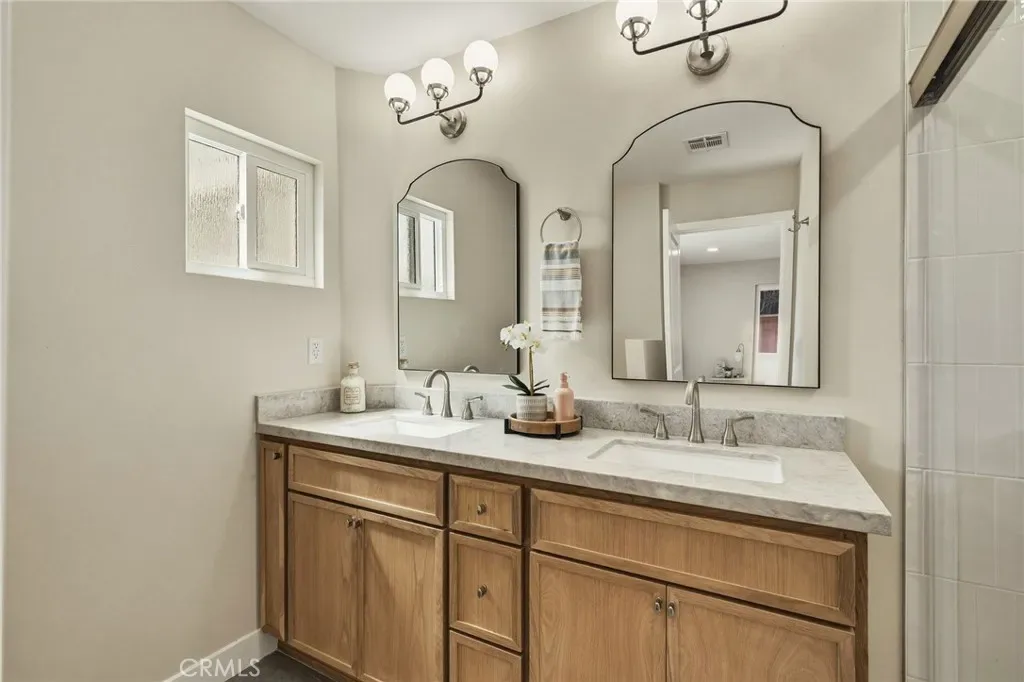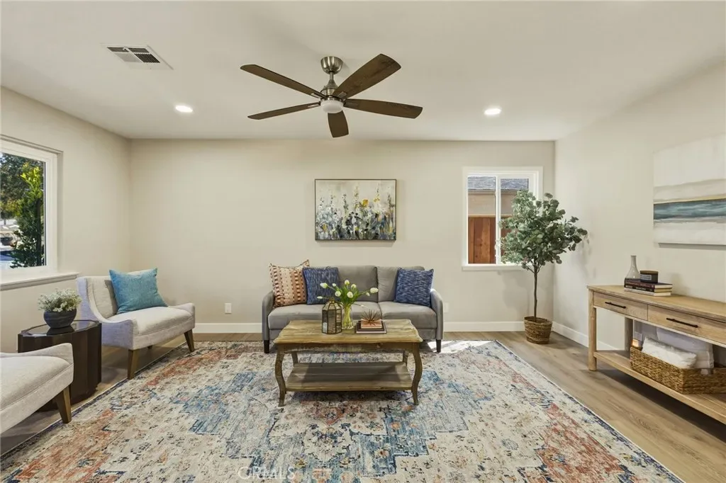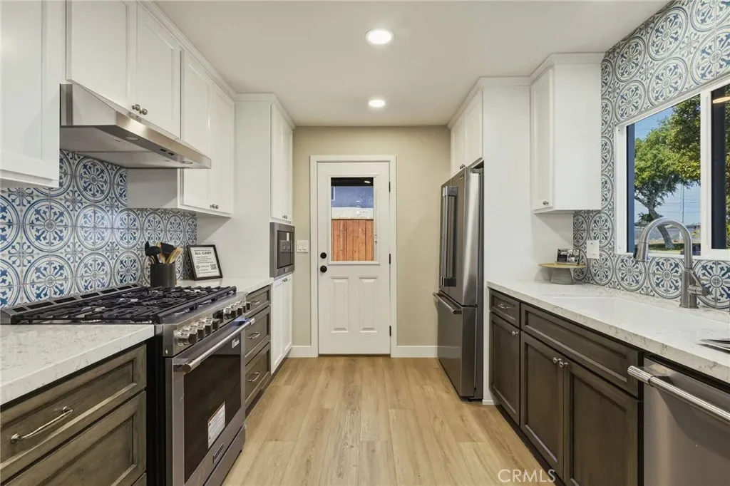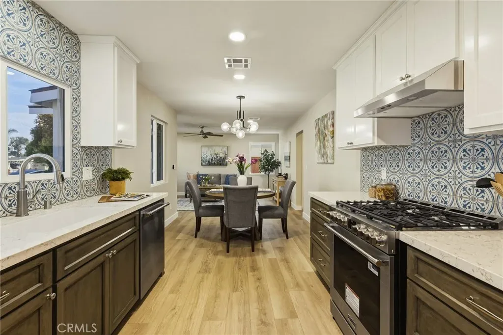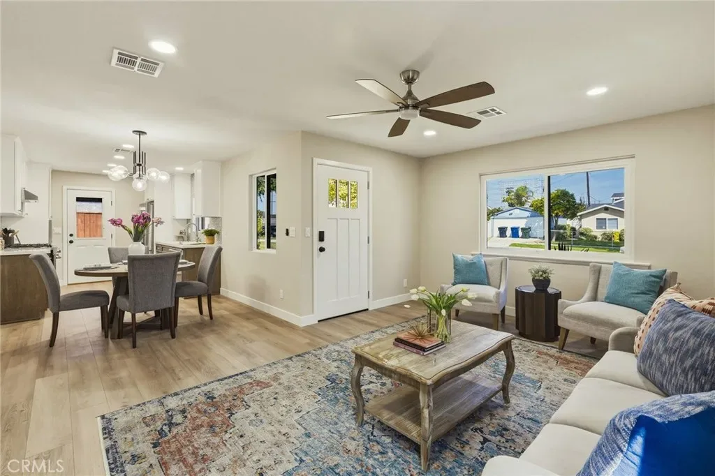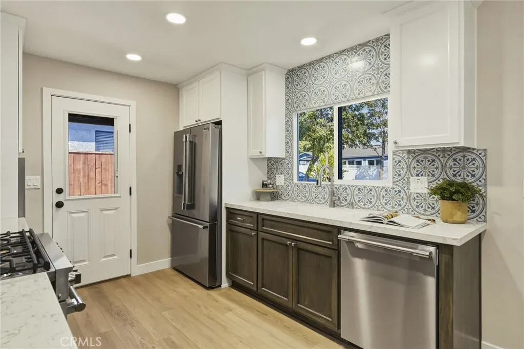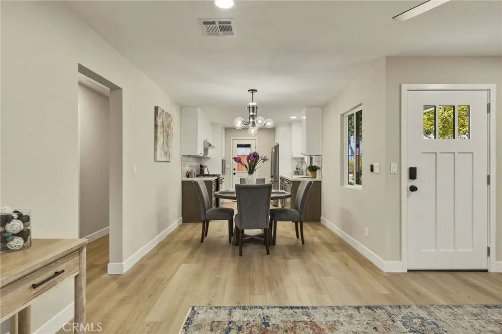 Welcome to this beautifully renovated 3 bedroom, 2-bathroom home located in desirable Torrance neighborhood. Featuring a bright open floorplan, the front living area flows through to the dining area and kitchen. The kitchen has been updated with new cabinets, sleek quartz counter tops, tile backsplash, stylish fixtures, and stainless-steel appliances. The spacious primary bedroom has attached ensuite bathroom and access to outdoor patio. Both the primary and hall bathroom feature new vanities, stylish new fixtures, and custom tile work. Other features include freshly painted interior and exterior, new luxury flooring throughout the living area and bedrooms, vinyl windows, new interior doors, new plumbing and light fixtures, HVAC system, new water heater, new garage door and motor.. This home is great for fun and entertainment with a great outdoor space. The private enclosed backyard has a large patio and a manicured yard. There is a two-car detached garage with additional off-street parking and gated driveway. Detached two car garage and spacious yard offers possible ADU potential. Buyer to verify all building codes and ADU guidelines with the city