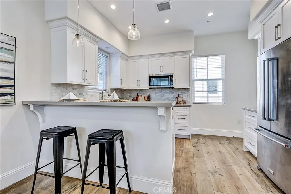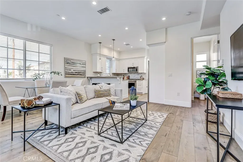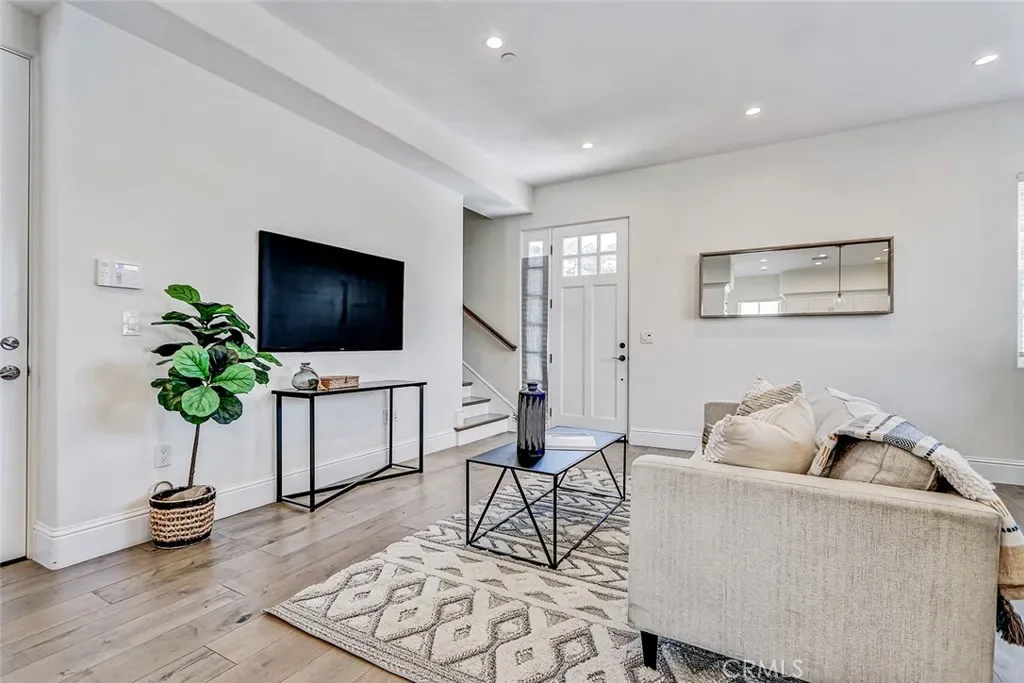 Beautifully built in 2020, this light-filled Walteria townhome offers modern style, thoughtful design, and an ideal South Torrance location. One of only four units in the complex—and one of just two with a private, enclosed exclusive-use yard—this home combines the feel of newer construction with rare outdoor space. The open-concept main level features wide-plank flooring, recessed lighting, and a seamless flow between the living, dining, and kitchen areas. The bright white kitchen is the heart of the home, showcasing shaker cabinetry, stone countertops, stainless steel appliances, a full backsplash, -perfect for everyday living and entertaining alike. Upstairs, all three bedrooms offer comfort and privacy. The spacious primary suite features high ceilings, a ceiling fan, a walk-in closet, and a private balcony for morning coffee or evening relaxation. The en-suite bath includes dual vanities, a soaking tub, and a separate glass-enclosed shower. Two additional bedrooms share a well-appointed full bath. Additional highlights include a convenient downstairs powder room, in-unit laundry, central air conditioning, and direct-access garage. Located in the highly desirable Walteria neighborhood of Torrance, this home is close to award-winning schools, parks, shopping, and a wide variety of dining options—plus just minutes from the beach. A rare opportunity to own a newer town-home with private outdoor space in one of South Torrance’s most sought-after communities.