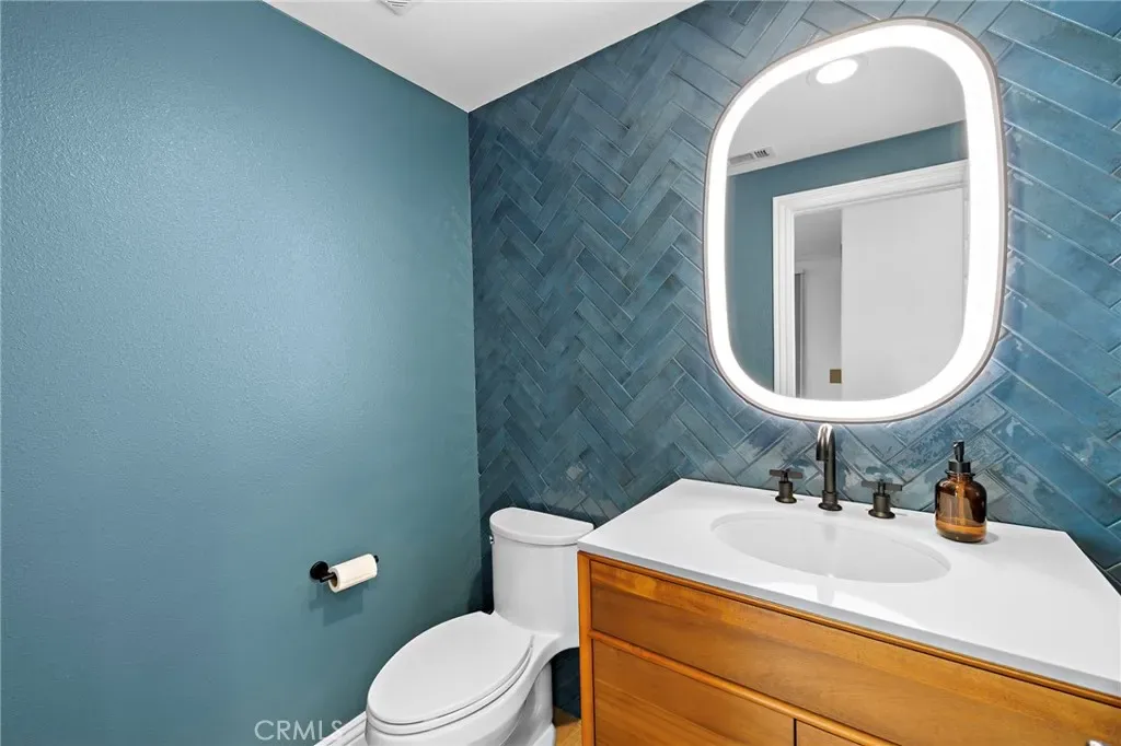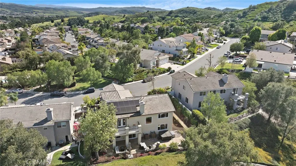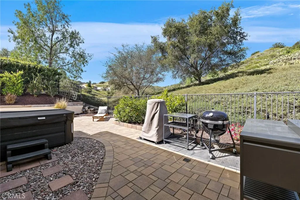 Situated in the gated community of Stonecliff this home is upgraded throughout with new gourmet kitchen, French Oak wood flooring, owned solar panels, new windows, new roof and new HVAC to name a few. This home blends modern comfort with quality finishes. French oak hardwood flooring runs throughout the downstairs, creating a warm and cohesive feel. The kitchen showcases a recent complete remodel featuring custom cabinetry and premium appliances, including a JennAir gas range, Miele dishwasher with built-in water softener, and sleek Kraus sinks—combining both functionality and style. Situated between the kitchen and formal dining area, a beautifully designed bar or coffee station features a prep sink, mini-refrigerator, and spacious pantry—ideal for everyday convenience and entertaining. The spacious family room, open to the kitchen, showcases a stunning rebuilt fireplace with a marble surround and custom tiled built-ins with floating shelves. A built-in surround sound system and dedicated AV cabinet complete an exceptional entertainment experience. Dining room open to the formal living area features French doors to a charming front patio featuring a pergola with integrated lighting—an ideal spot to relax and unwind after dinner. The upstairs showcases the primary suite and four generous secondary bedrooms, one of which is large enough to serve as a bonus room. The primary suite features French doors opening to a balcony with serene canyon views, and an updated bathroom with new vanities, quartz countertops, and two custom closets. The private backyard offers a peaceful retreat with pavers, mature lemon trees, and a spacious eight-person jacuzzi with quiet filtration and dual pumps. Backing to a serene canyon with no homes behind, the setting provides exceptional privacy and tranquil views. Additional upgrades include a rare finished utility room (previously the 3rd car garage), tankless water heater, whole-home WiFi wiring, integrated security cameras, upgraded lighting with dim-to-warm switches, enhanced under-stairs storage, garage with epoxy flooring, abundant storage, and EV charger. Ideally located across from the community pool and near parks, scenic trails, and highly regarded Wagon Wheel Elementary School and Tesoro High School, the home also offers convenient access to the 241 Toll Road. A rare opportunity to own a home where thoughtful upgrades, comfort, and setting come together seamlessly.