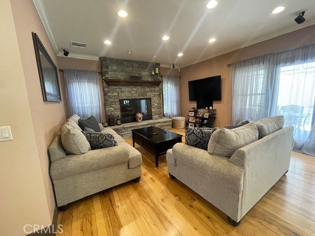 Significant price reduction. An exceptional 3,299 sq ft residence located on a private street, offering luxury, space, and privacy in one stunning package. This 4-bedroom, 4-bath home features two primary bedrooms with in-suite bathrooms, a bright living room, family room, and dining room, open floor plan with soaring ceilings and a seamless flow between the expansive family room and gourmet kitchen with a breakfast nook. The chef’s kitchen is designed to impress with granite countertops, custom real wood cabinetry, a large island, and stainless steel appliances—perfect for entertaining. Elegant hardwood and bamboo flooring run throughout, complemented by two fireplaces, including one in the luxurious primary suite. The spacious primary bedroom offers a private retreat with its own fireplace, a walk-in closet, and a spa-style bathroom featuring a jacuzzi tub. Step outside to a beautifully landscaped backyard with a patio and low-maintenance artificial turf, ideal for indoor-outdoor living. A rare, move-in-ready home with premium upgrades and generous living space—this one won’t last.