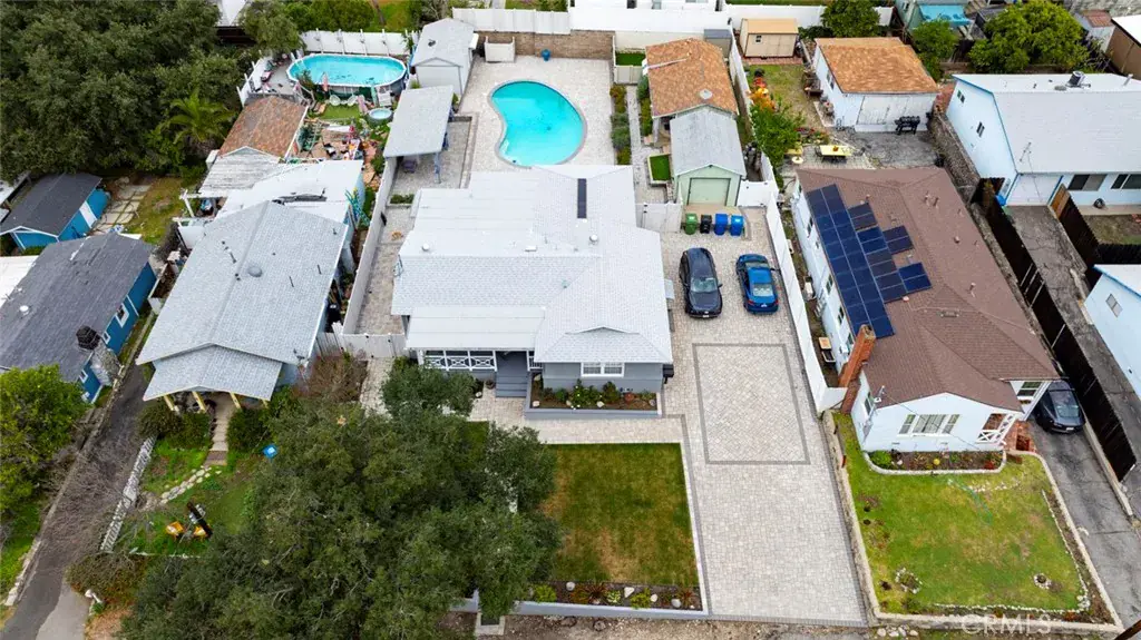 This duplex in Tujunga can be yours, offering resort-style living and income potential on an expansive 11,970 sq.ft. lot with two legal homes, a sparkling pool, and beautiful hardscaping throughout. The property also features a detached garage with potential for an ADU conversion, adding even more value and flexibility for future expansion. The front home features 3 bedrooms and 2 baths, while the rear home offers 1 bedroom and 1 bath, each with its own address and utilities—perfect for multi-generational living, rental income, or guest accommodations. The main residence showcases warm wood-style floors, recessed lighting, and an inviting living room with large picture windows that frame serene outdoor views, flowing into an updated kitchen with white shaker cabinets, granite counters, subway tile backsplash, and stainless steel appliances. A stunning primary suite highlights rich wood beam details, expansive floor-to-ceiling windows overlooking the pool, and direct access to the backyard for a true indoor-outdoor retreat, while additional bedrooms and remodeled baths with modern vanities and glass-enclosed showers provide comfort and style for family or guests. Outside, the property transforms into an entertainer’s paradise with an oversized paver patio, a generously sized pool, and a covered outdoor lounge complete with ceiling fan, heaters, and space for TV and seating ideal for gatherings day or night. Ample driveway parking and manicured landscaping complete this rare opportunity in a highly desirable Tujunga neighborhood.