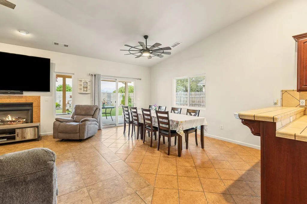 Welcome to this wonderful 3-bedroom, 2-bath home located in a well established NE Tulare neighborhood. This property offers comfort and accessibility, making it a great opportunity for first-time buyers or investors alike! Conveniently located near great shopping centers, dining, schools, and everyday amenities! Inside, you’ll find beautiful tile flooring throughout, a cozy fireplace, and a functional living and dining space designed for easy living. A bonus space in the entry way can be used as a den, sitting area or a home office! A separate shed in the backyard provides space for additional storage. The property also features RV parking and gated access, offering added convenience and versatility. Call to schedule a showing and see this great opportunity for yourself! Security cameras on premises recording audio/video.