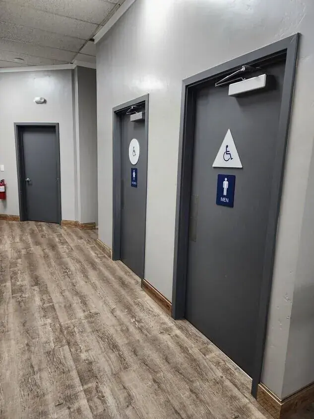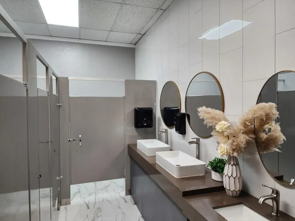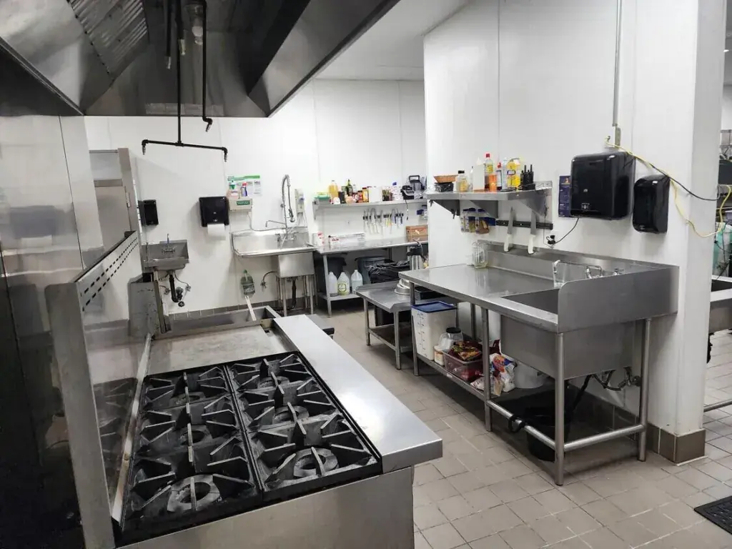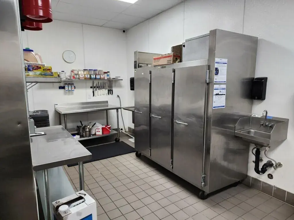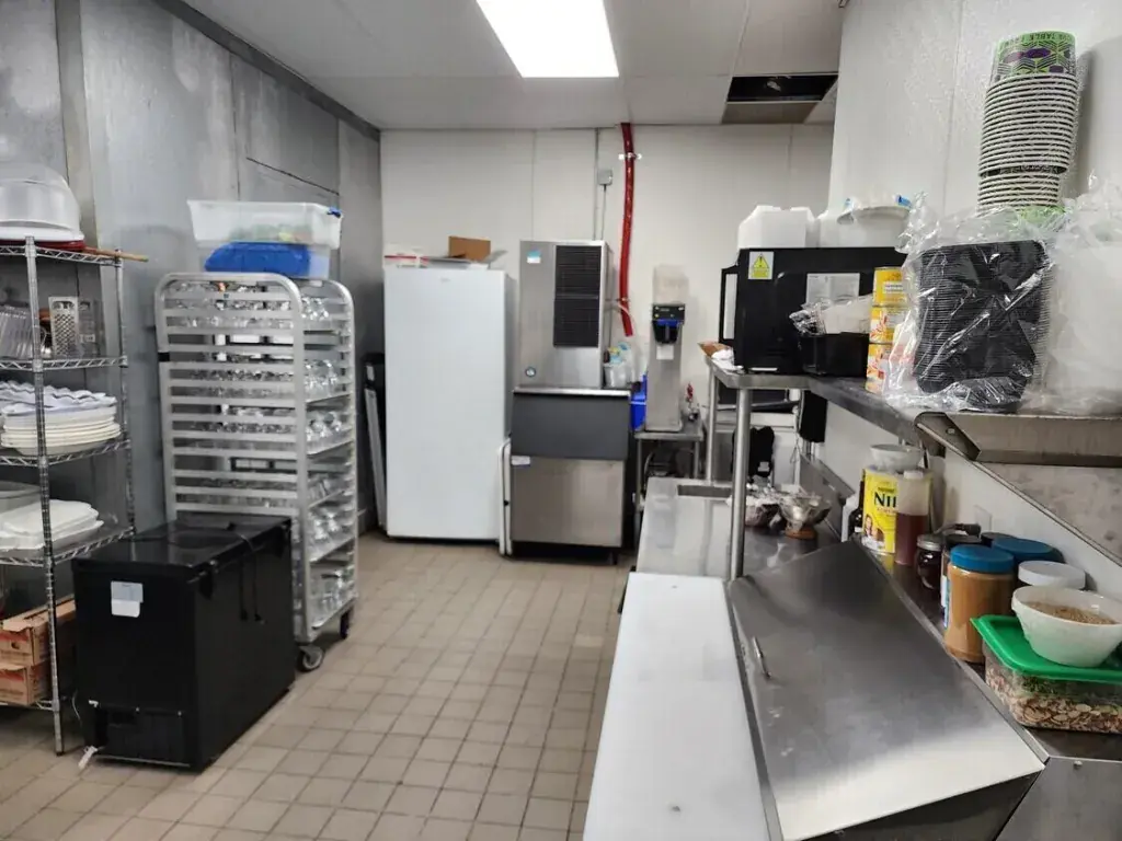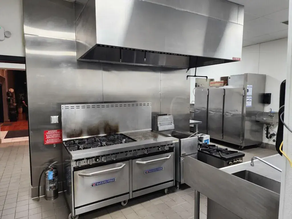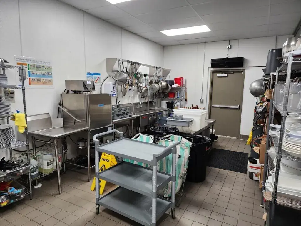 commercial bathrooms, it caters to all event needs. The state-of-the-art kitchen, complete with a freezer and cooler, ensures seamless