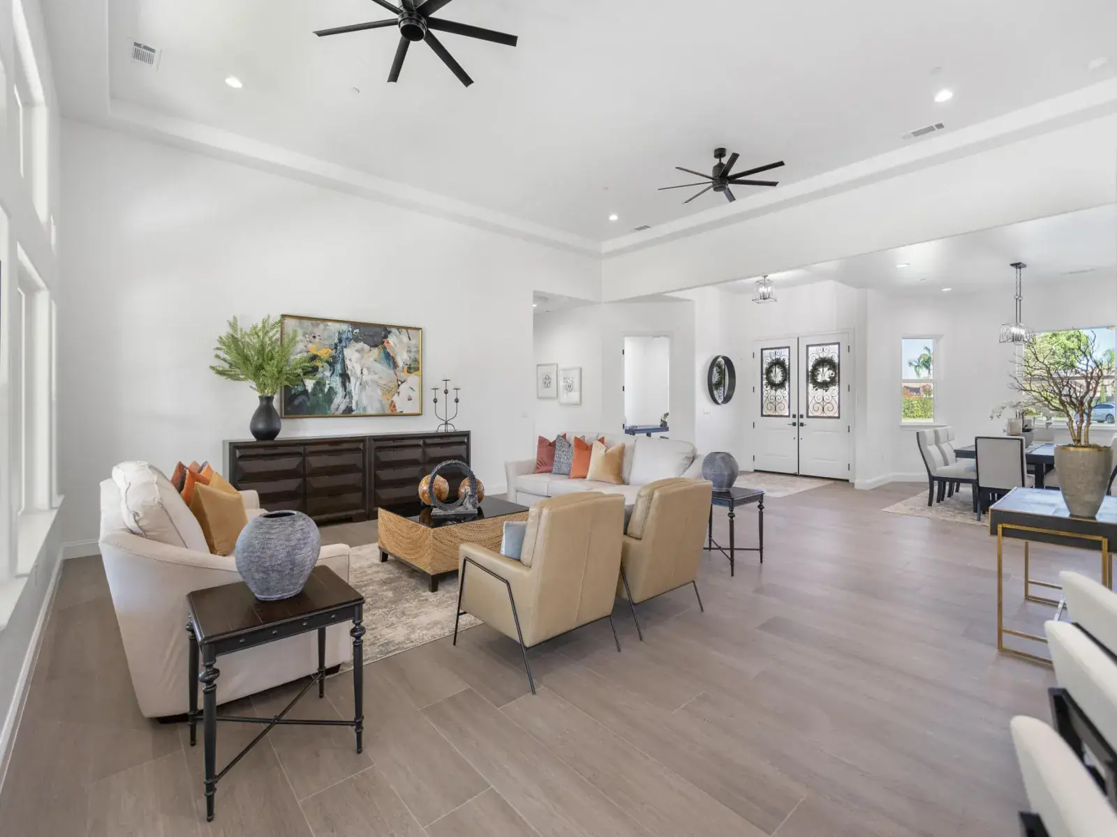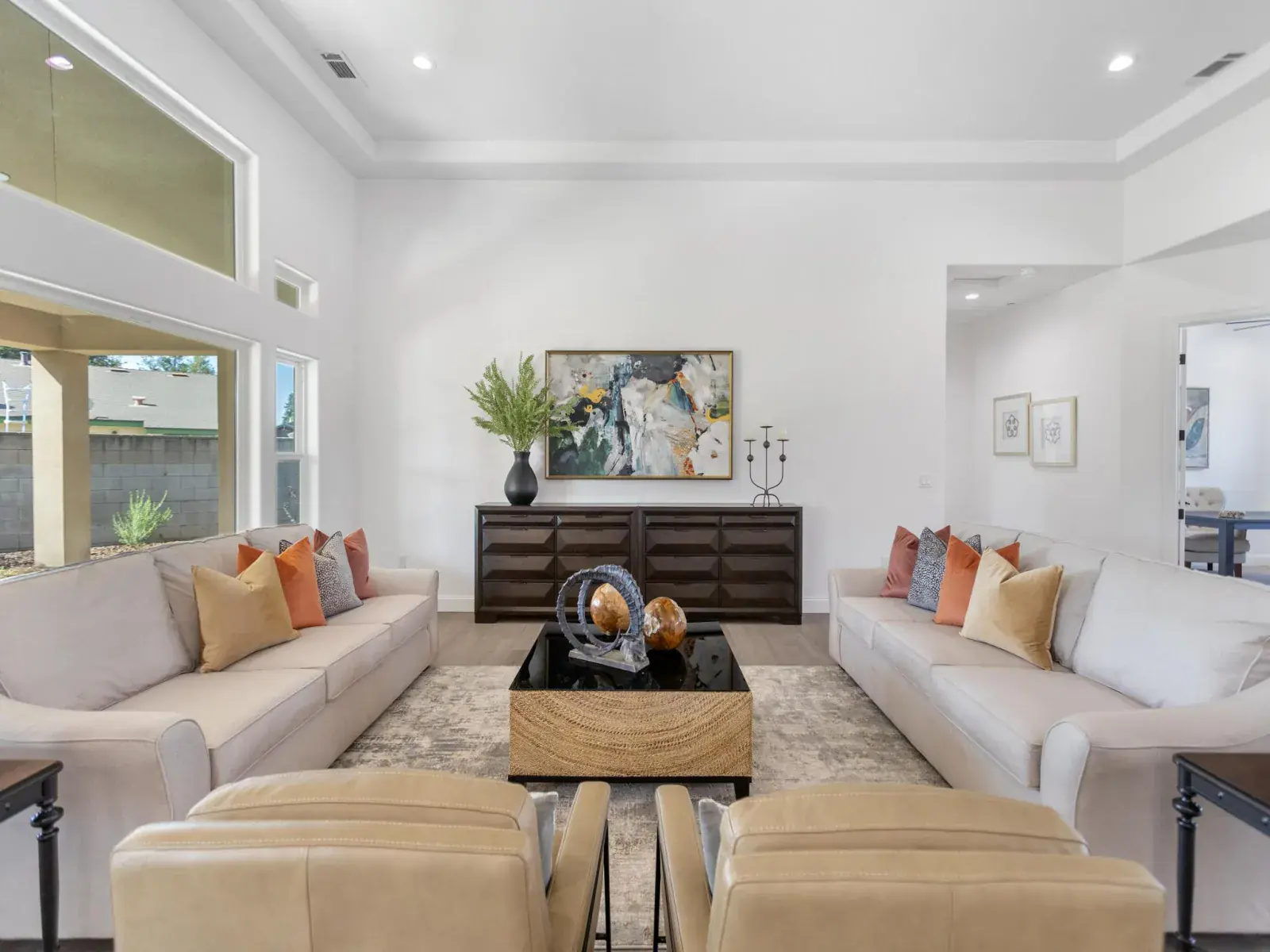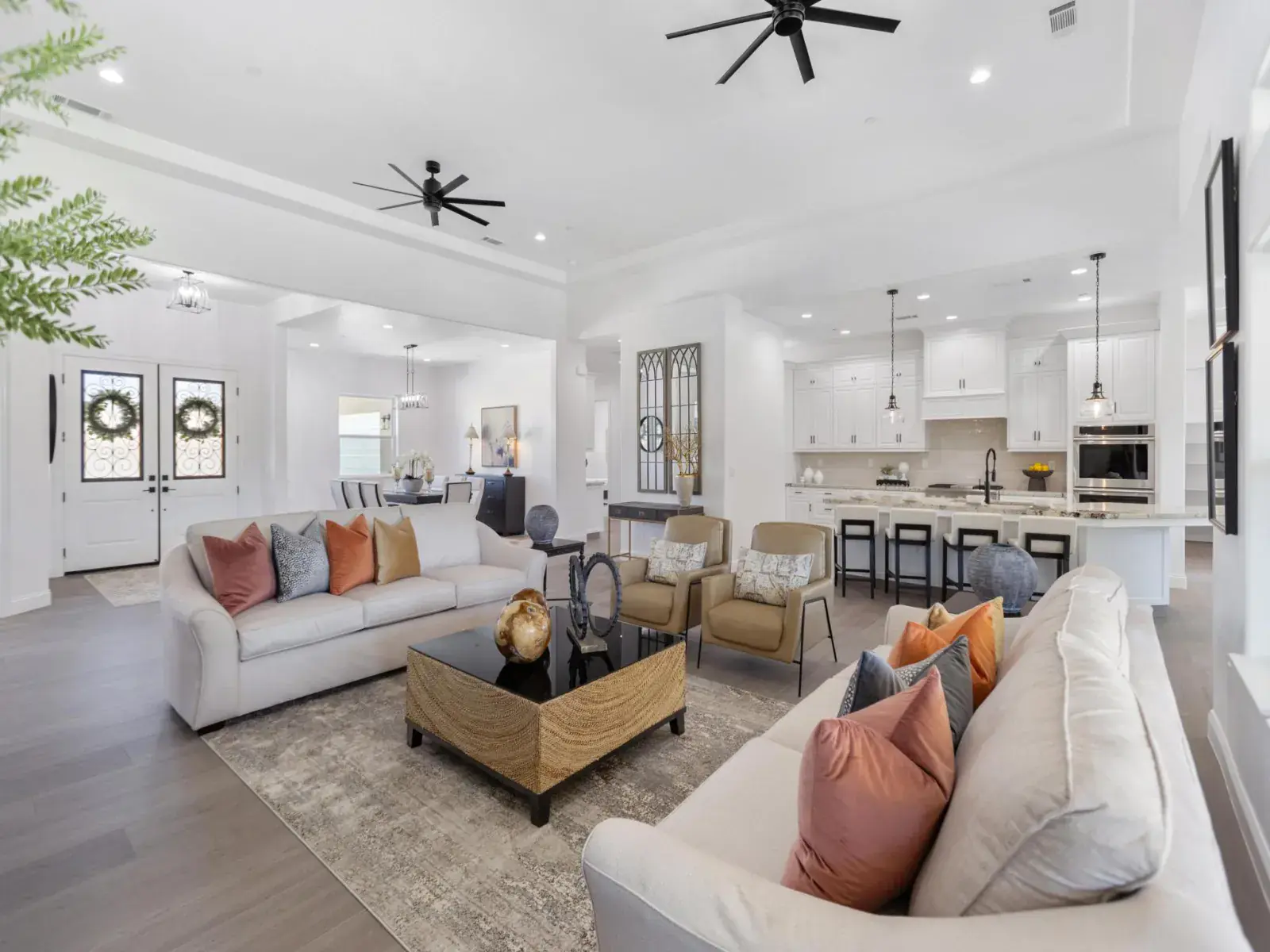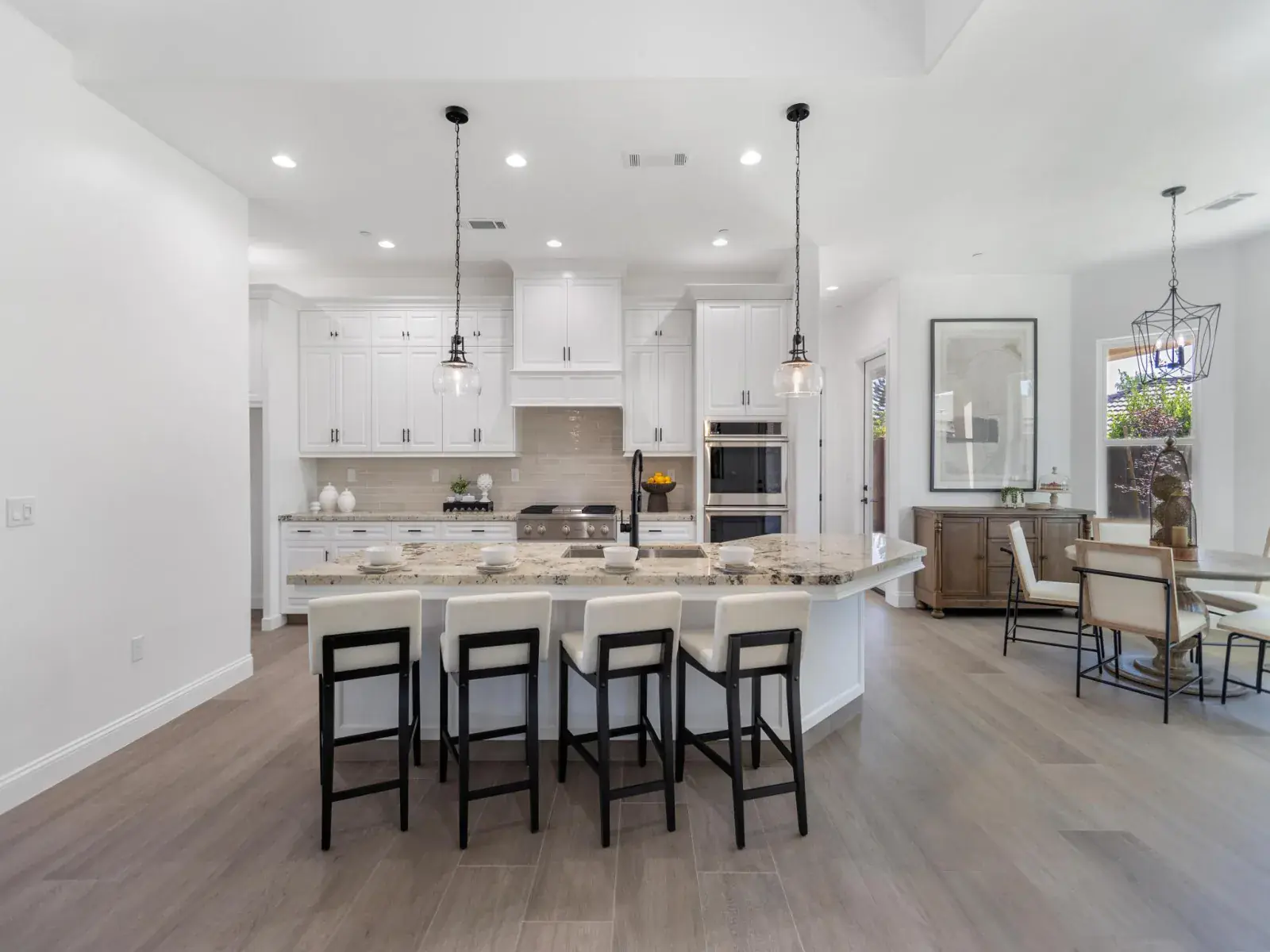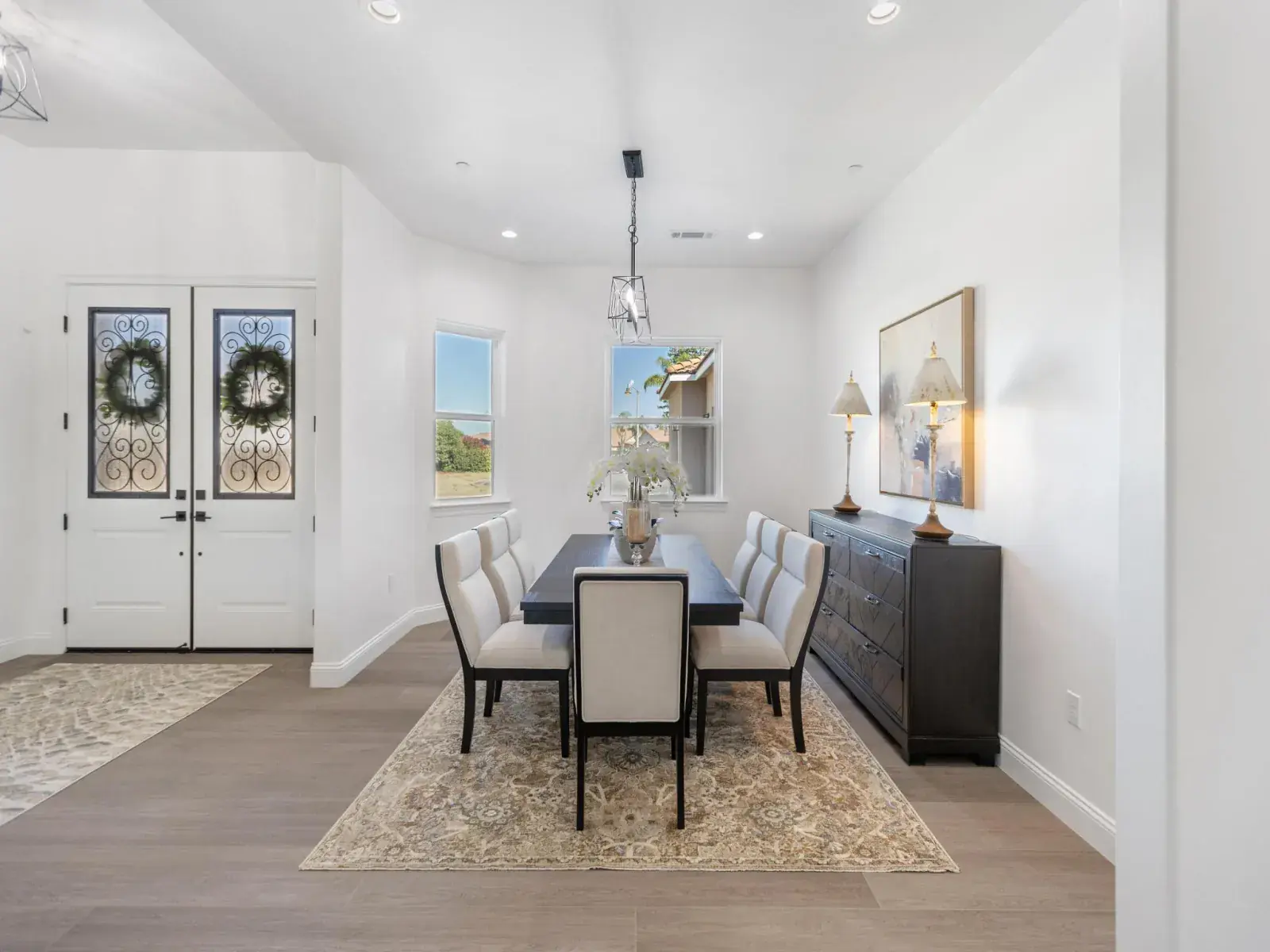 From the moment you arrive, you’ll be impressed by the beautifully designed, low-maintenance landscaping, extended driveway, and tall decorative French entry door that sets the tone for what’s inside. Step into a wide-open floor plan featuring soaring ceilings and a seamless flow between the grand living room, formal dining area, gourmet kitchen, and cozy breakfast nook—perfect for entertaining or everyday living.