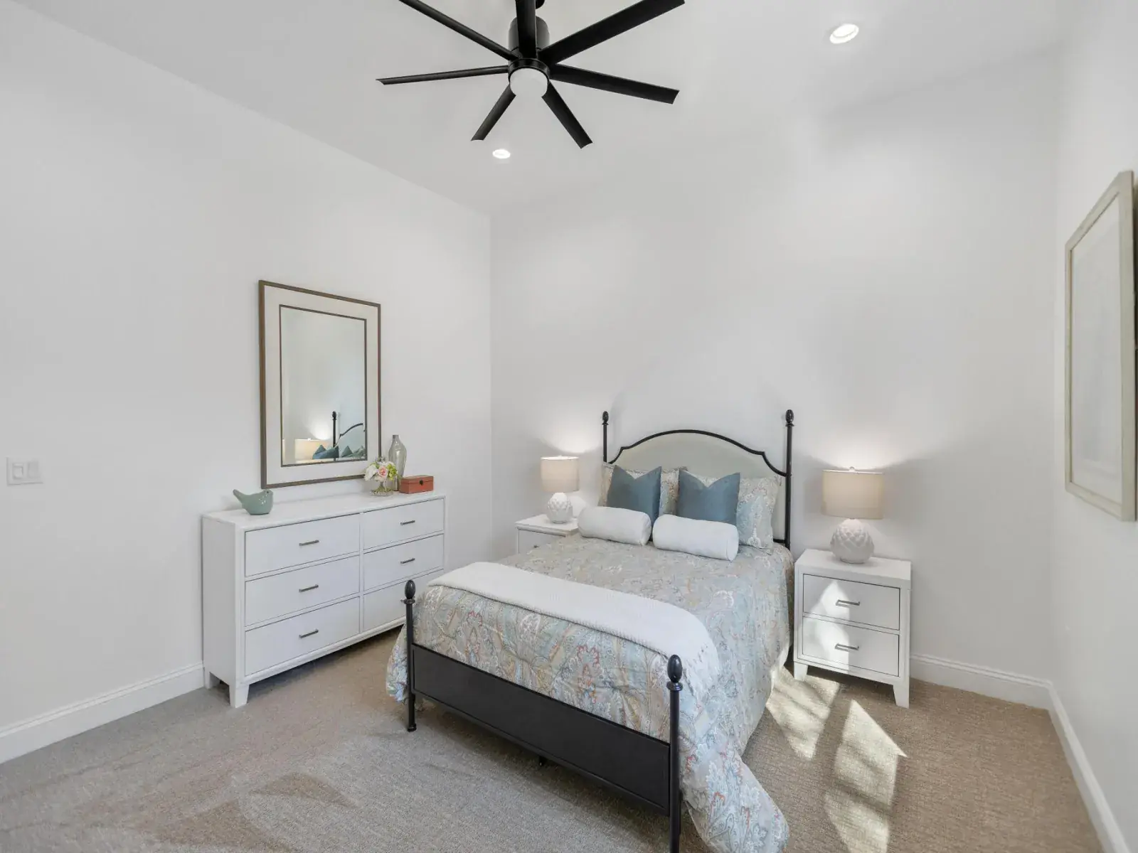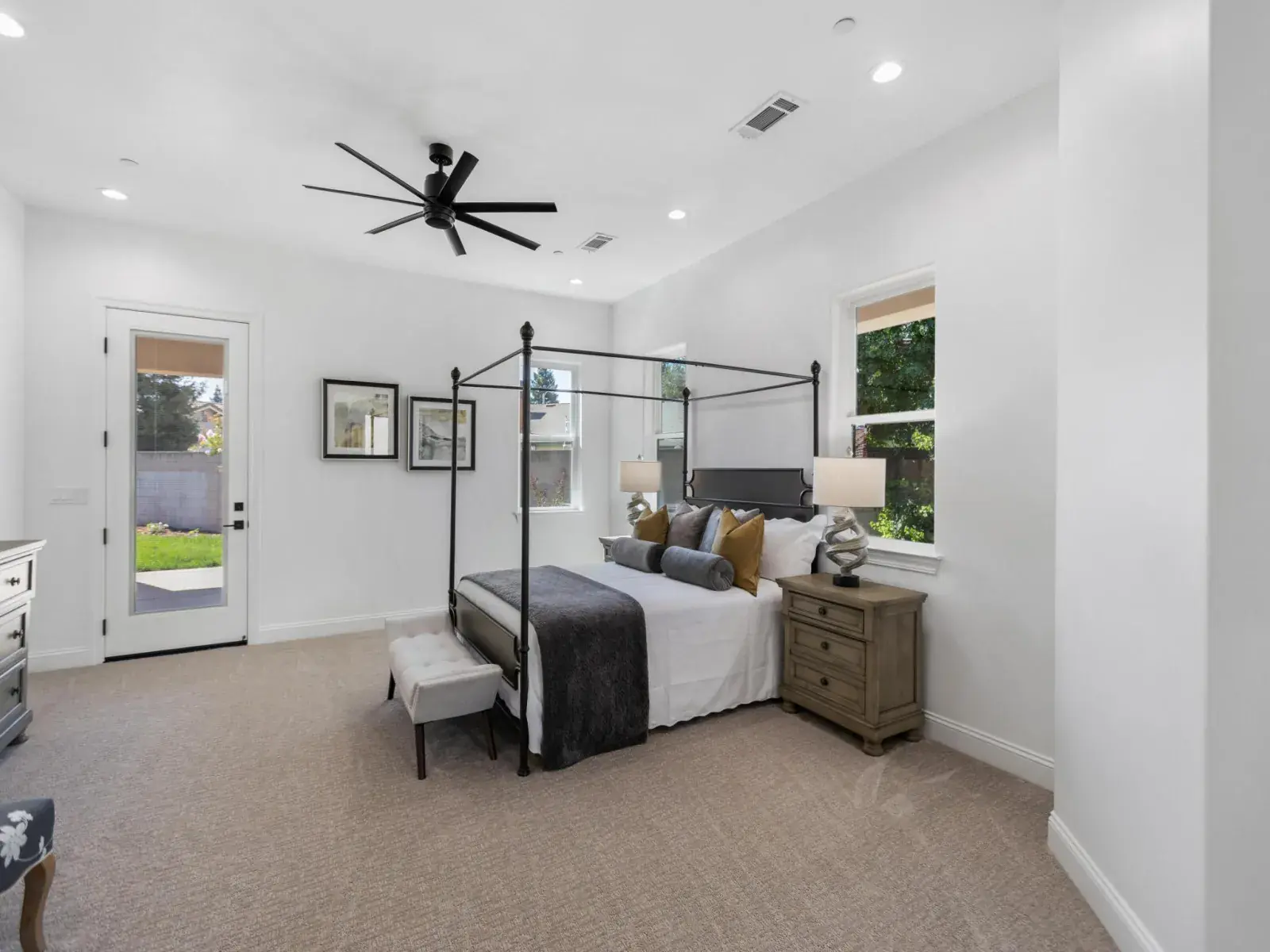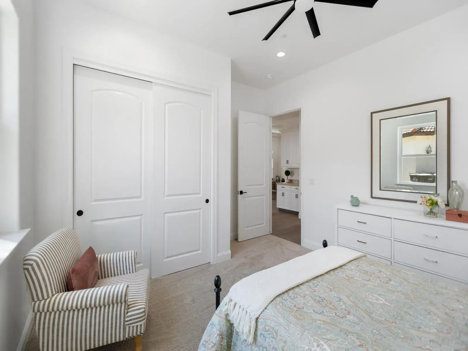 The thoughtfully designed layout includes two separate master suites, ideal for multigenerational living or hosting guests. One bedroom conveniently located at the front of the home could easily function as a home office, offering flexibility to suit your lifestyle. Let’s not forget there is one more bedroom that could be used for just that or a crafts room. You’re only limited by your own imagination.
