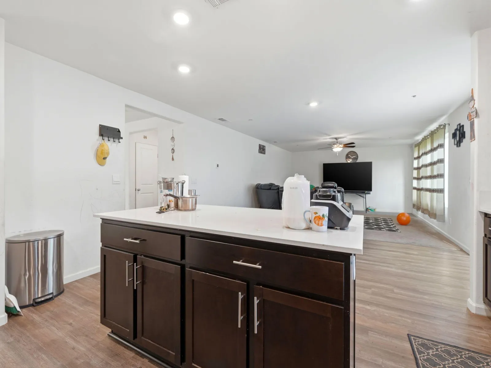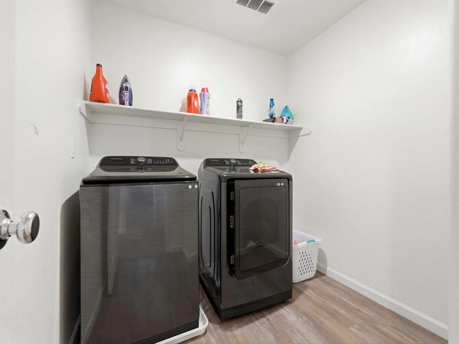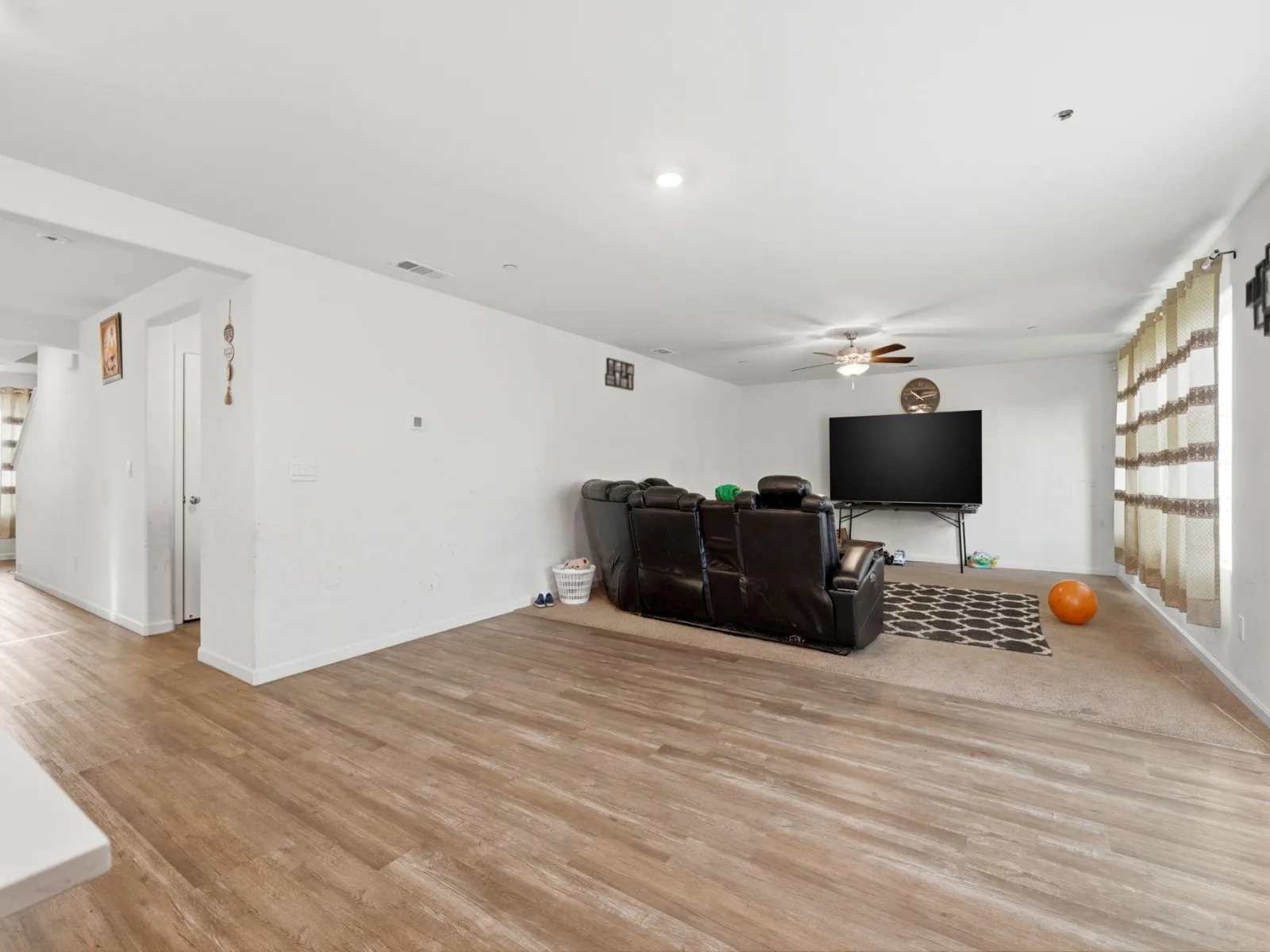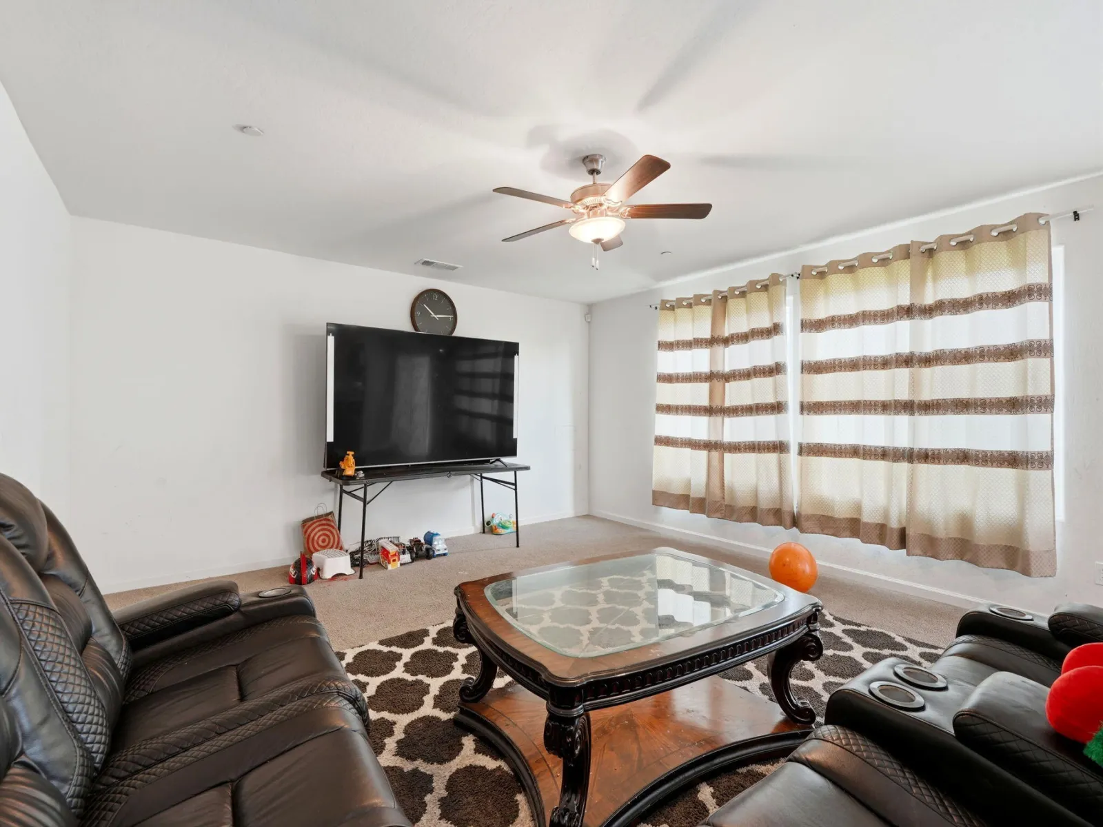 Newly built in 2023 DR Horton, with open floor plan, has great curb appeal, double-story in quite neighborhood. Easy maintenance with Laminate flooring in hallway and family room downstairs and carpets in all 5 bedrooms has much to offer featuring 5 bedrooms, 3 baths, 2814 sq ft, living room, multi-purpose room downstairs that can be used as a guest room, art studio or office and a loft upstairs can be used as a study room for children or maybe as a library for adults. Energy efficient home is equipped with solar owned, dual pane window, 13+ HVAC and electrical tankless water heater. The spacious 5662 sq ft backyard is a peaceful and perfect spot for family gathering and outdoor fun. Don’t wait 6 months to have a house built, when you can buy this one! The home is conveniently located near shopping, entertainment, schools & freeway access. Xfinity fiber cable is available in this area for fast internet connection. Elementary, Middle and High School has B ratings for your children’s bright future. Washer, Dryer and fridge is included with full price offer acceptable to Seller as-is condition with no warranties. All bedrooms are good size, offers comfort and privacy. With additional features like a loft and an office, 1 bedroom and full bathroom downstairs this property offers a versatile and functional living space.This sweet home holds years of cherished memories and is ready for it’s next chapter.The chef’s kitchen boasts custom cabinetry, elegant quartz countertops & beautiful appliances, all centered around a spacious island.