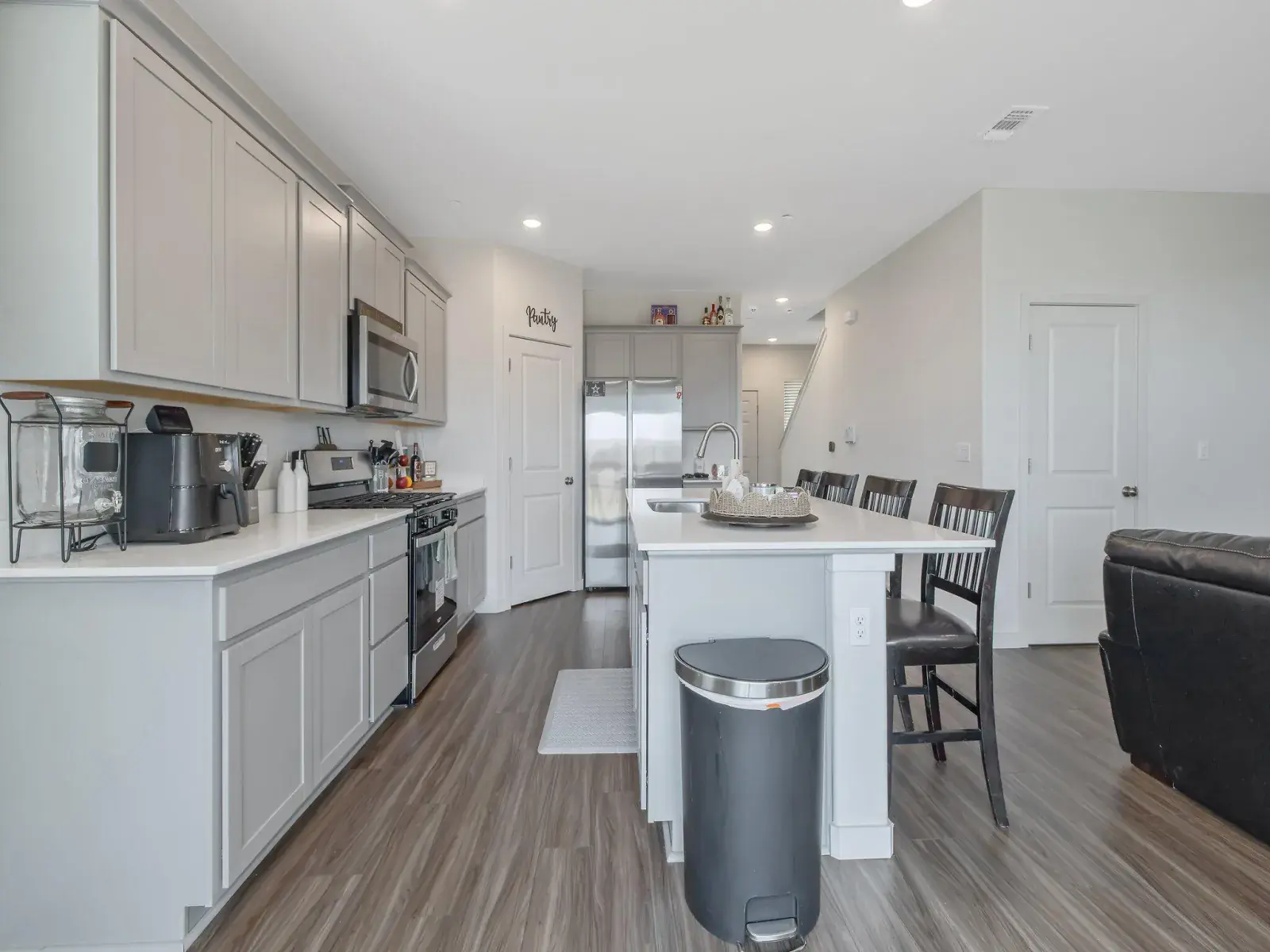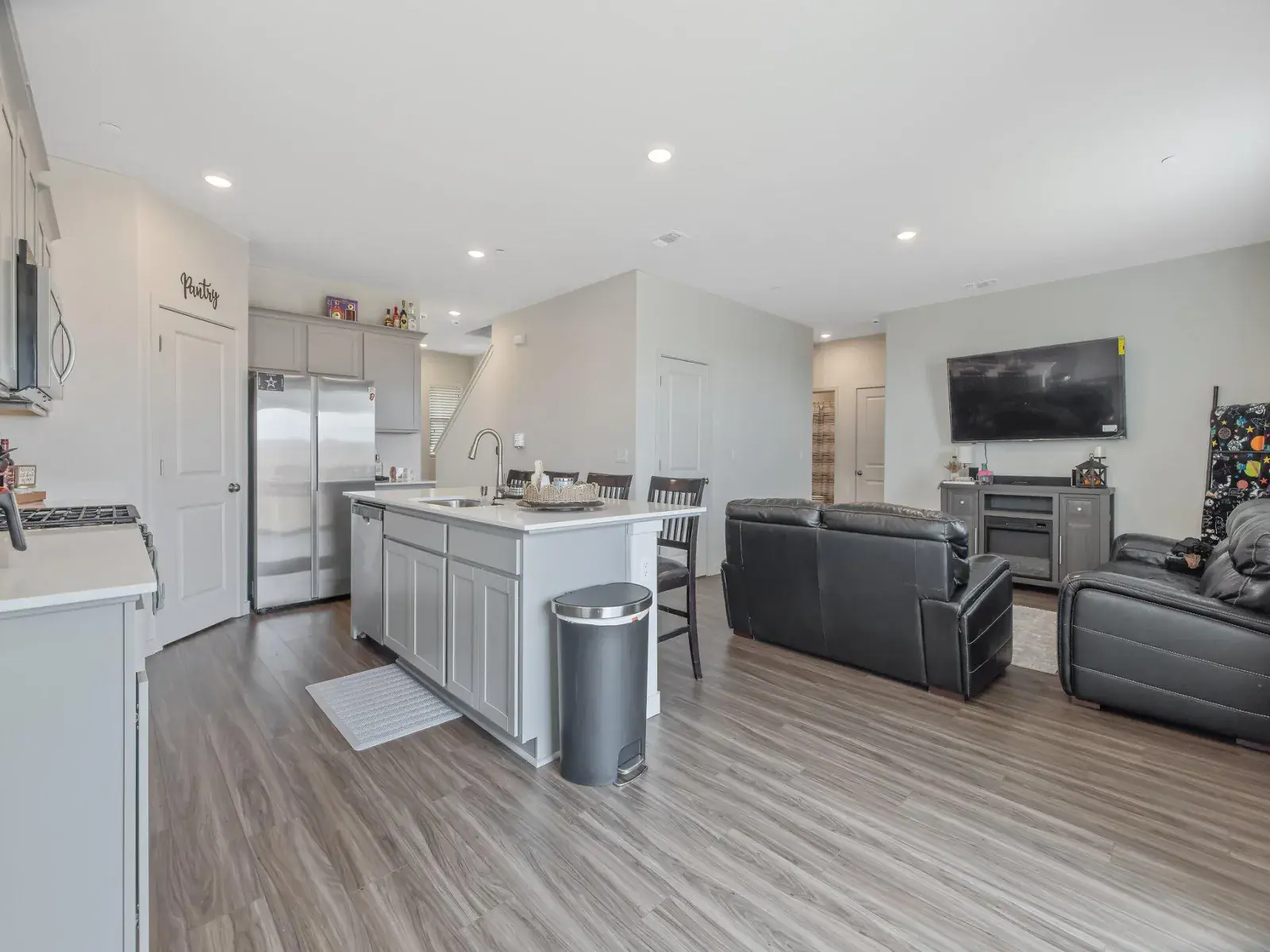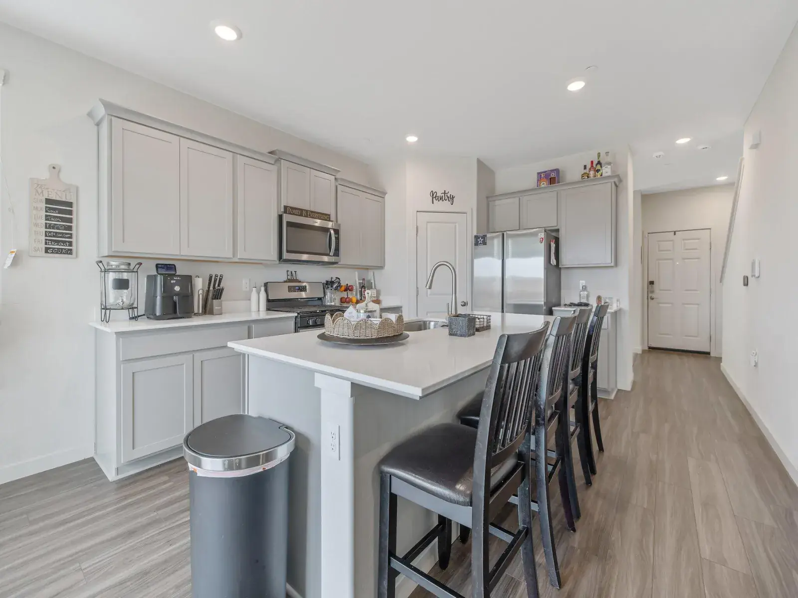 Breakfast Bar, Kitchen Island, Open Floorplan, Recessed Lighting, Stone Counters