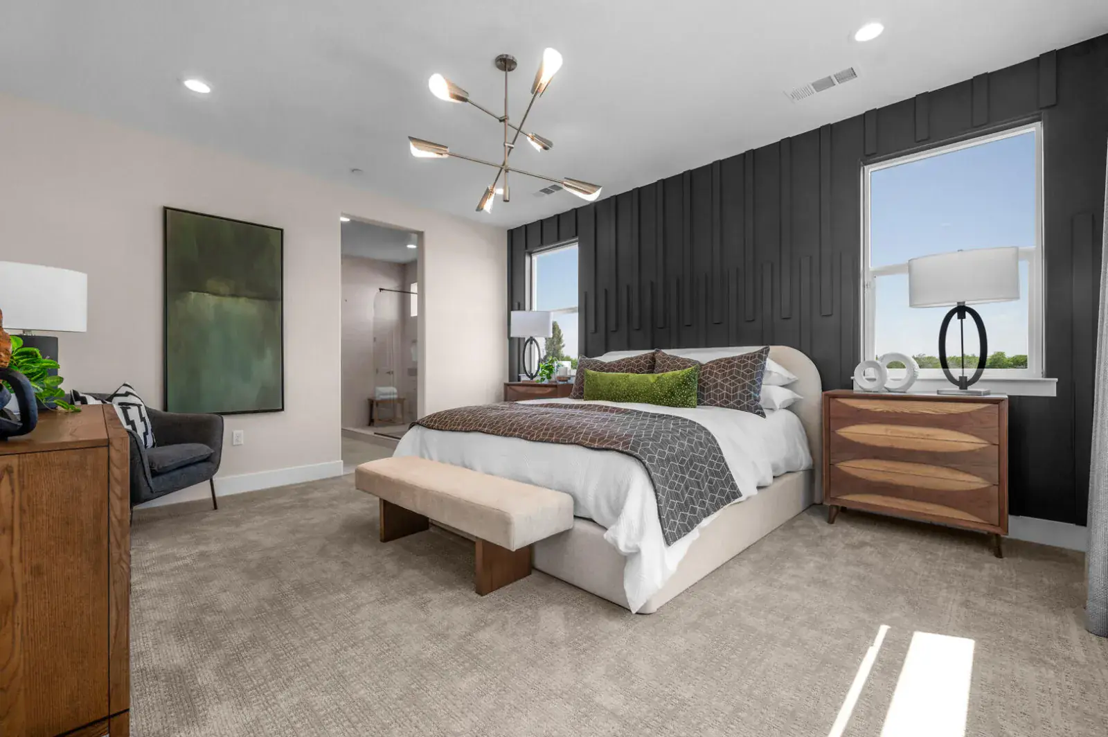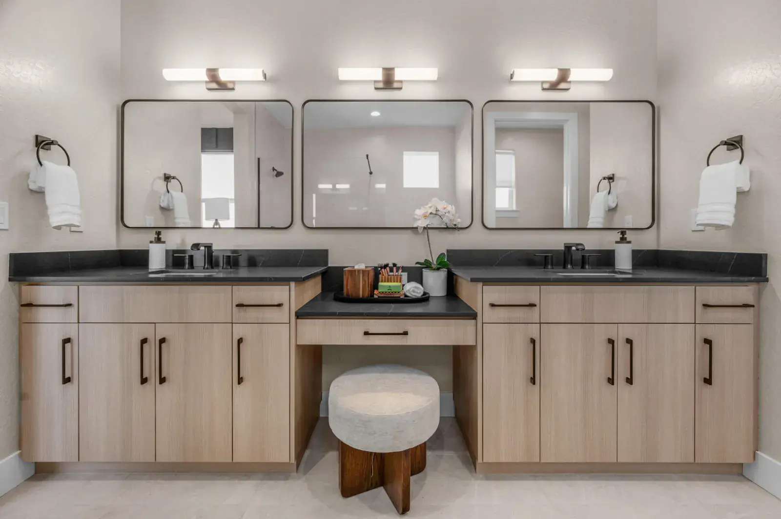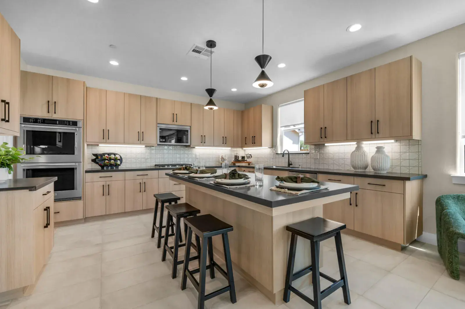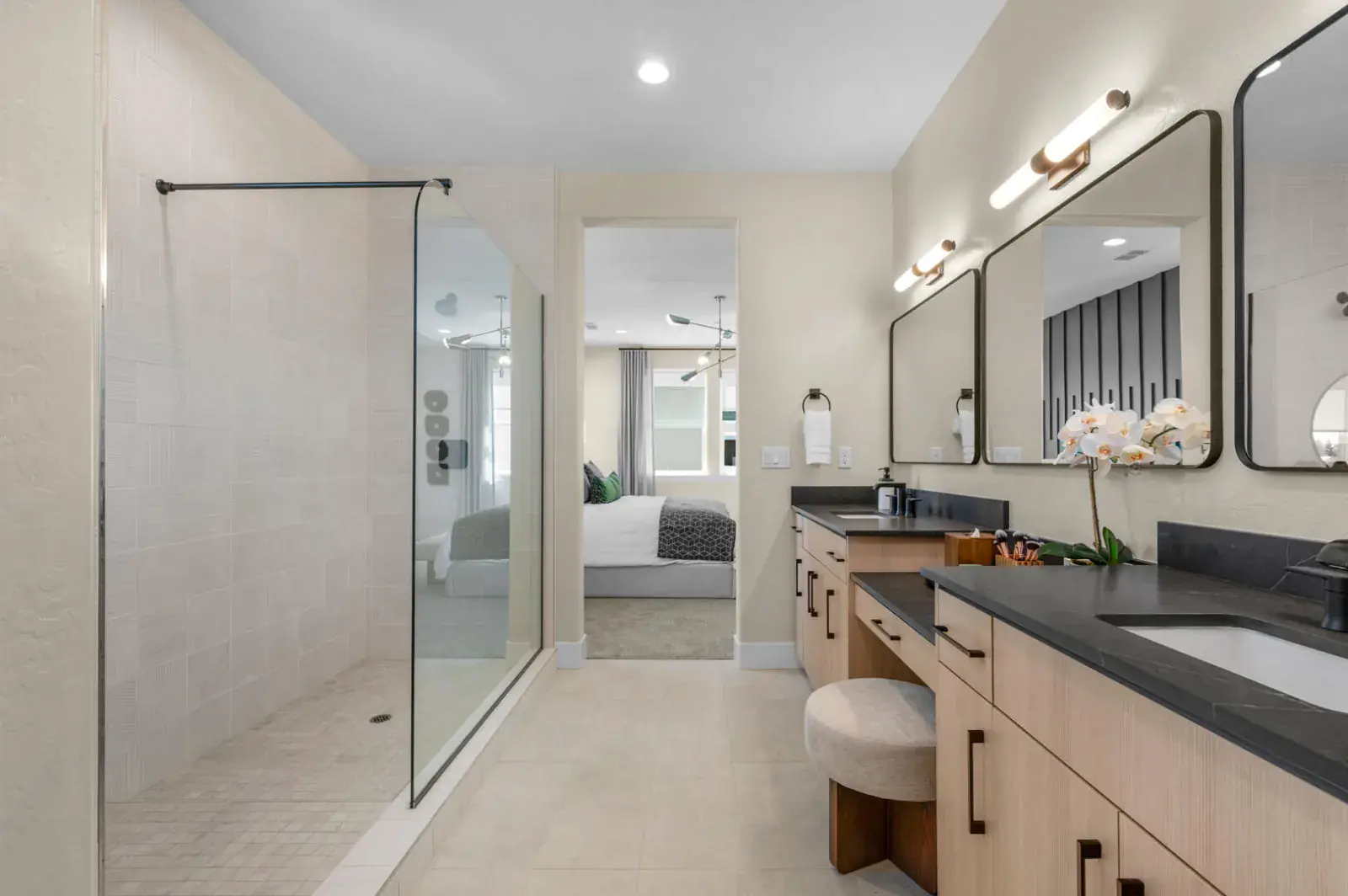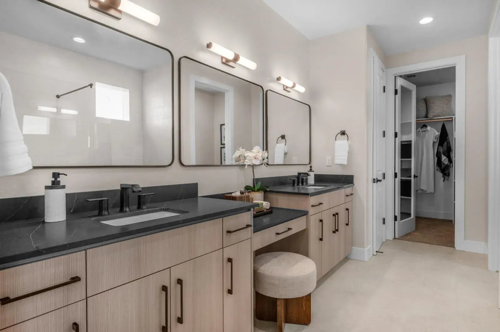 At the heart of the home is a chef inspired kitchen, with a spacious center island, custom cabinetry, and stainless steel appliances including a gas range. Perfect for everyday living and entertaining. The spa like primary suite offers a serene retreat, featuring dual vanities.