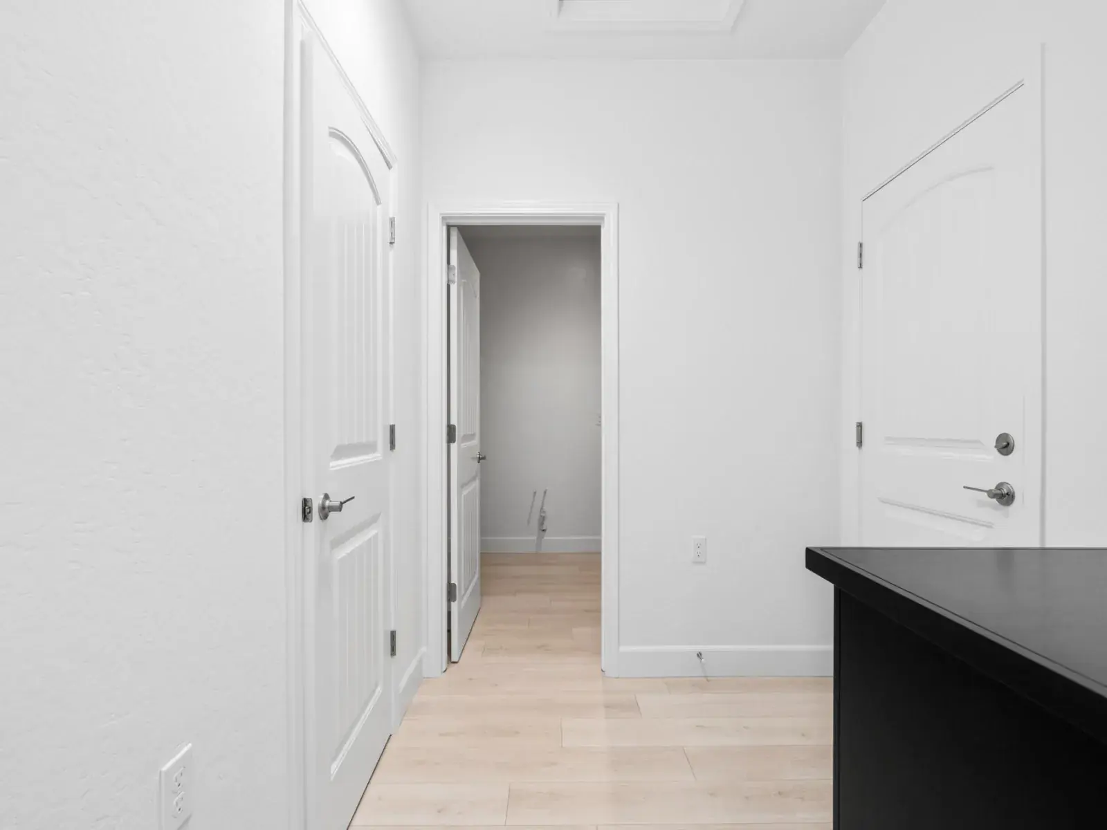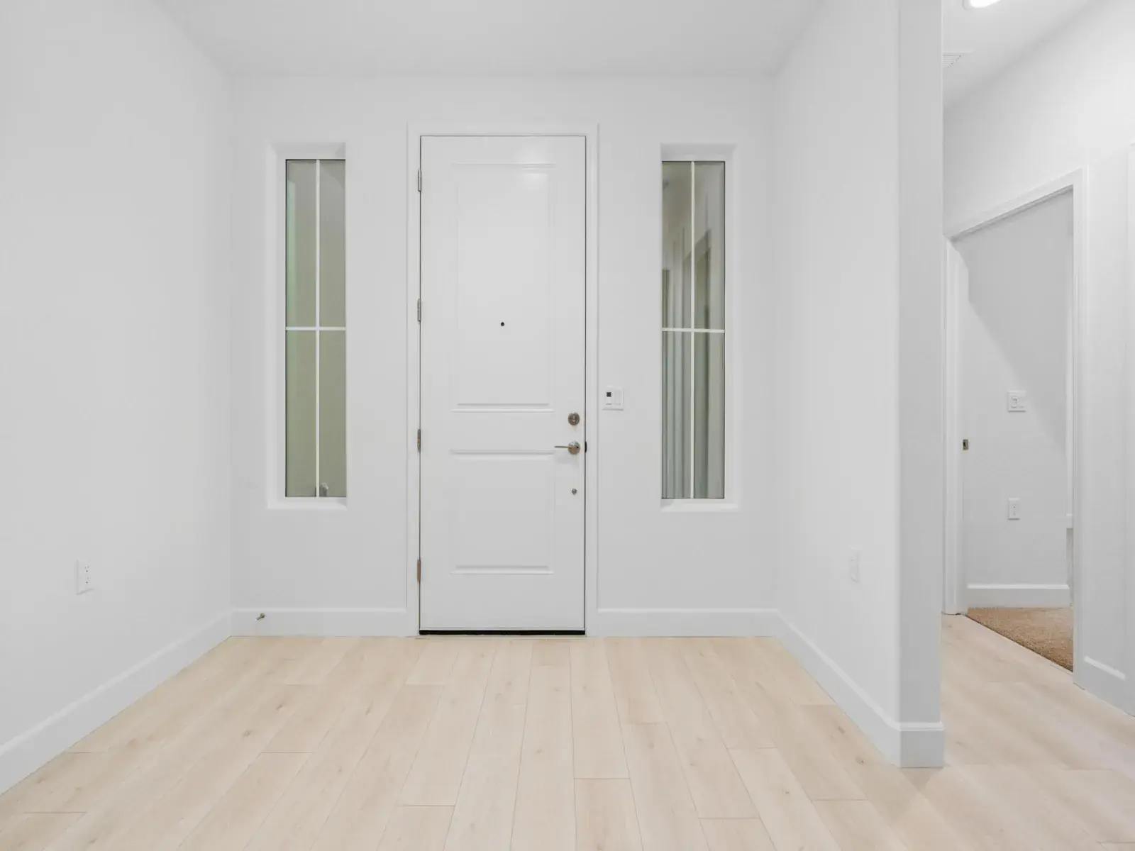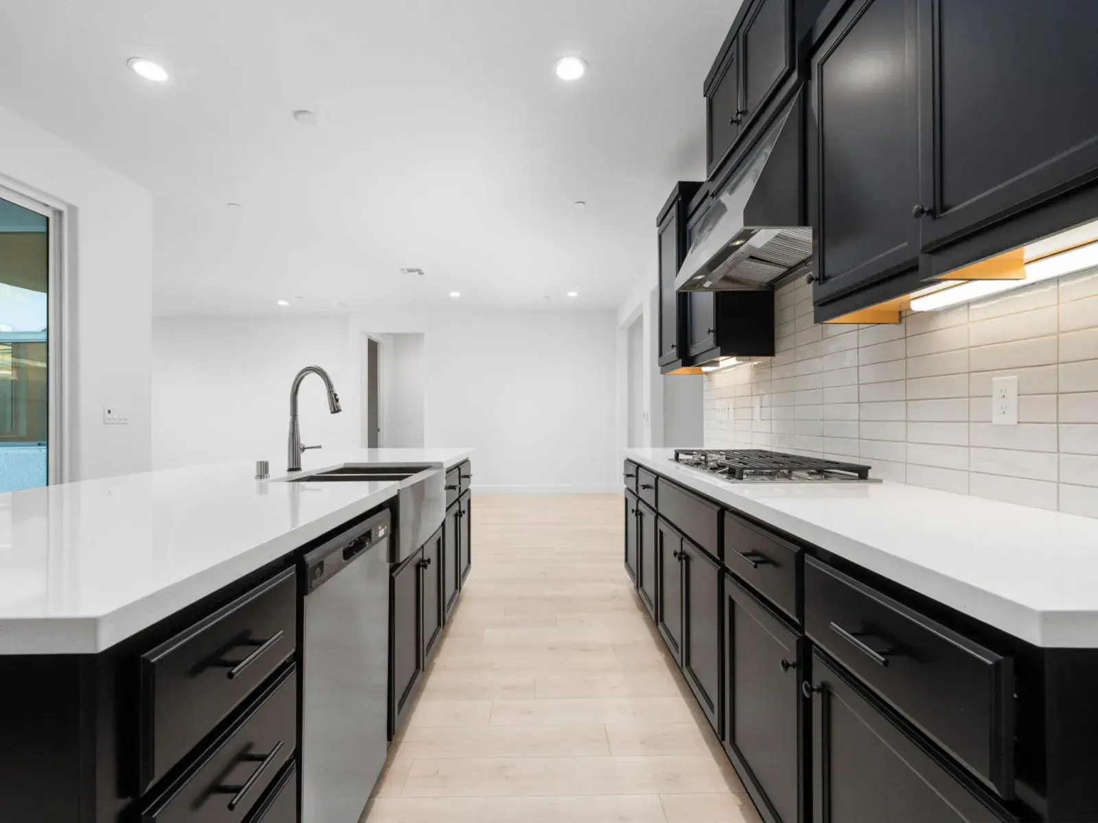 Throughout the home, you’ll find elegant Ebony-stained cabinets paired with crisp white quartz countertops, offering a perfect balance of modern sophistication and timeless style. All bedrooms and the covered patio are pre-wired for ceiling fans, ensuring year-round comfort and energy efficiency.