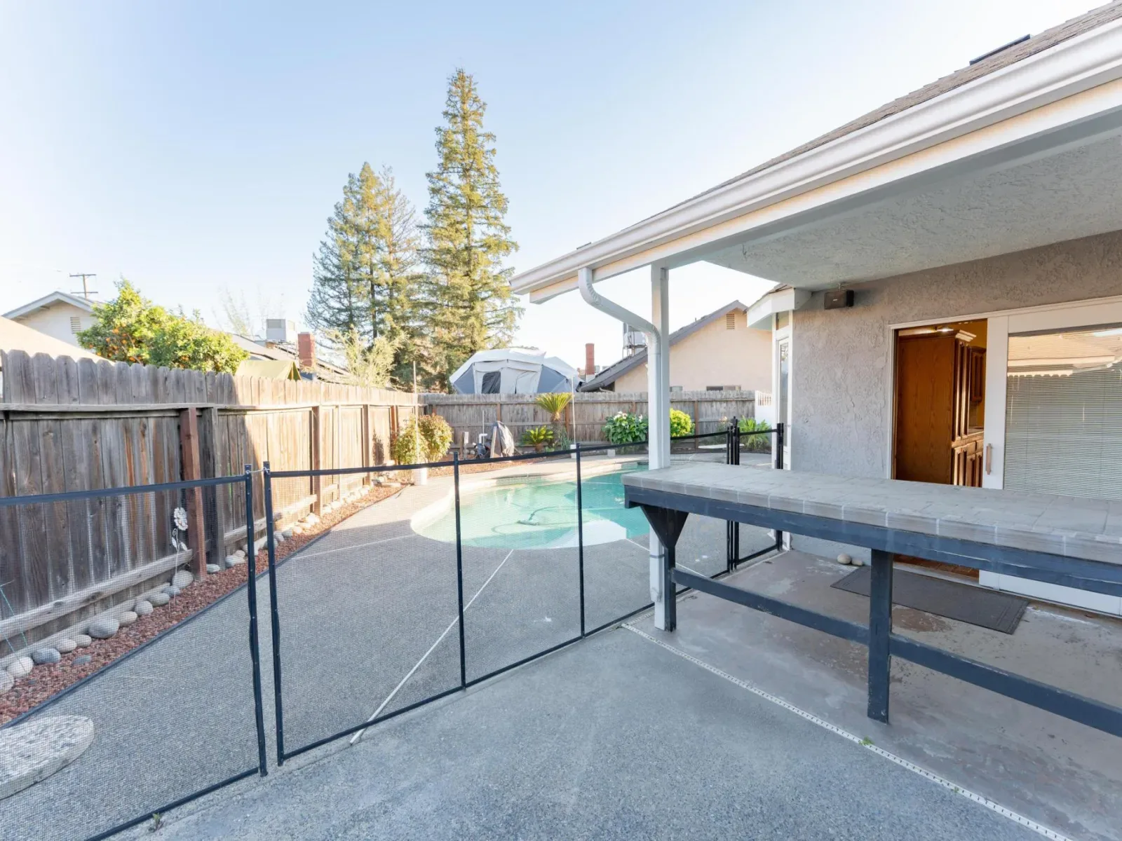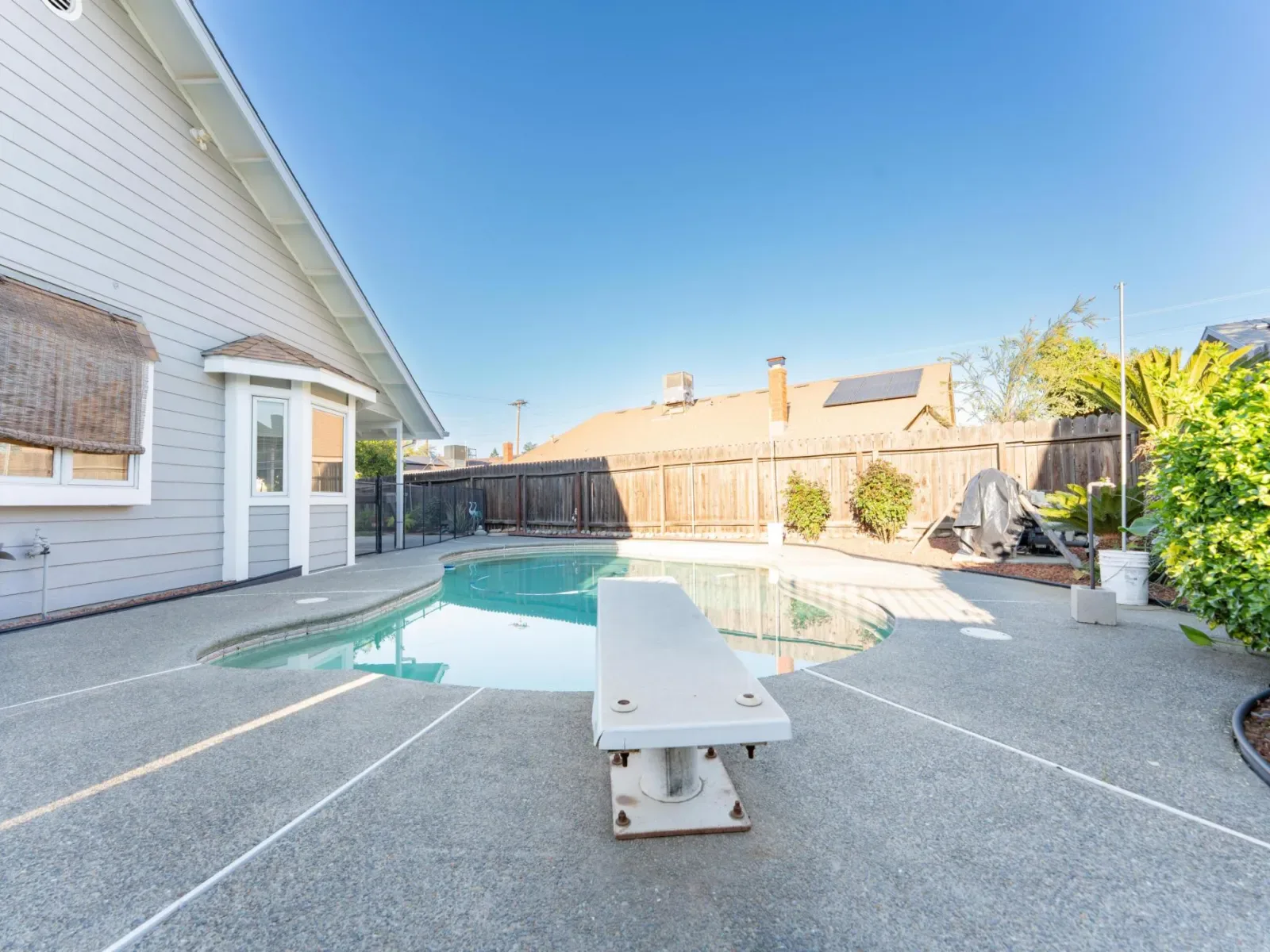 This stunning single-story residence offers the perfect blend of indoor comfort and outdoor living, designed for those who love to entertain or simply enjoy their own private sanctuary. This beauty offers a well maintained exterior. The backyard is a true showstopper, headlined by a sparkling custom-shaped swimming pool surrounded by an expansive concrete patio—perfect for summer BBQs and lounging in the sun. Enjoy beautifully manicured green spaces, mature shade trees, and vibrant garden beds that provide both beauty and privacy. The property includes a large, wrap-around yard with distinct zones for recreation, gardening, and relaxation.