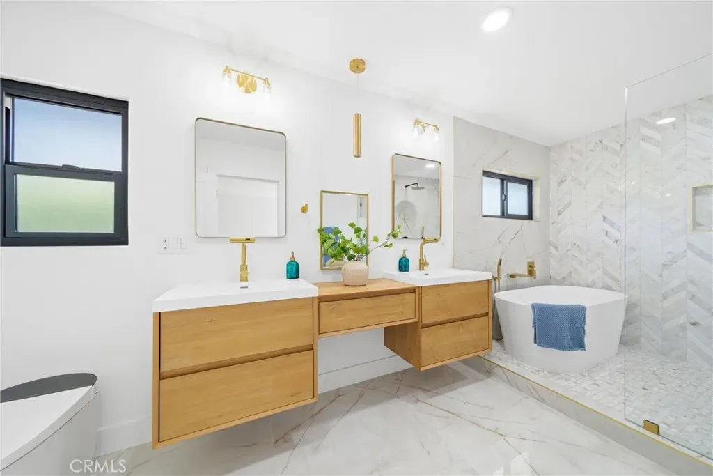 Exquisitely reimagined 5 bedroom, 5 bath pool and spa residence (just in time for Summer) that offers an unparalleled living experience, combining the allure of a “brand new” home with the established charm of one of Orange County’s most coveted communities. This home has undergone a comprehensive top-to-bottom remodel that focused on both aesthetic elegance and structural integrity and multistage life solutions with a truly exceptional forward looking floor plan. Step into an expansive open-concept layout defined by soaring ceilings, custom millwork, and premium flooring. A culinary masterpiece, the kitchen boasts custom cabinetry, high-end quartz countertops and professional-grade stainless steel appliances. Bathrooms have been reinvented as private retreats with designer tile work, custom vanities, and contemporary fixtures. Essential systems including HVAC, electrical, and plumbing have been updated, providing long-term reliability and modern efficiency. Off the living areas are the primary bedroom suite that features great light from a large door that allows for pool deck access and a resort level ensuite. A second ensuite bedroom, a guest bath, a laundry room and garage access complete the lower level. Upstairs is a third ensuite bedroom, two guest bedrooms and an updated guest bath. With great curb appeal the exterior features a fresh architectural aesthetic with professional landscaping and a “grand entrance” designed to make a lasting first impression. Out back is an expansive pool and spa patio with security fencing, a wrap around brick and brick lined concrete patio and grassy lawn spaces. Together these provide ample space to play or entertain in privacy and security. Living in Tustin means enjoying a rare blend of historic character and urban convenience. Residents have access to the A+ rated Tustin Unified School District, which consistently ranks among the top 50 districts in California. From the historic charm, and Michelin-mentioned eateries, of Old Town Tustin to the modern retail escapes of The Market Place and The District, everything needed is just minutes away. Experience a vibrant local culture through seasonal events like the Tustin Art Walk, the Tustin Street Fair & Chili Cookoff, Broadway in the Park, and the beloved Tiller Days carnival. This home isn’t just a place to live, it’s an invitation to settle into a “forever” residence in a city known for its safety, beauty, and enduring charm. Welcome home.