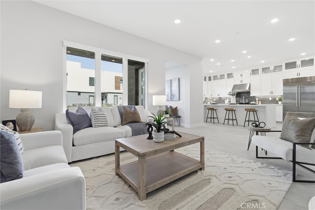 Welcome to the exquisite Cira Plan 2, part of the prestigious Tustin Legacy community. This beautiful turnkey home features 4 bedrooms, 4 bathrooms, and a third level bonus room with a covered deck with 3,110 square feet of living space built in 2022 and offers unparalleled indoor-outdoor living and customization opportunities. The first floor features an open-concept design, perfect for gatherings of any size. A sliding glass door seamlessly connects the inviting great room and gourmet kitchen, equipped with a center island, to the private yard. The kitchen boasts upgraded shaker style white wood cabinets, premium quartz counter tops, premium Wolf/Subzero/Cove appliances, and a secondary beverage fridge. Enjoy open-air socializing in the yard spaces ideal for outdoor games. The second floor is dedicated to relaxation, with a spacious primary suite that includes a generous walk-in closet, a luxurious soaking tub, and a private covered deck for refreshing morning moments. The top floor is perfect for multigenerational living, featuring a fourth bedroom with an adjacent bath, a fantastic bonus room, and a large deck designed for alfresco dining and entertaining. Other upgrades include Hunter Douglas shades throughout the home, recessed lights, custom neutral paint, whole house water softener and conditioner, upgraded electric subpanel in the garage with Tesla EV charger, upgraded HVAC filters, epoxy flooring in the garage, and Paid Off 3.5kW Solar System. Convenience meets innovation with my Command smart home technology, ample storage space, and a second-floor laundry room conveniently located near the primary suite and two secondary bedrooms. This home is located walking distance to The District, a vibrant shopping center offering an array of amenities, including Costco, Whole Foods, a movie theater, restaurants, and more. Experience dynamic and convenient living at Tustin Legacy. A great place to call home!