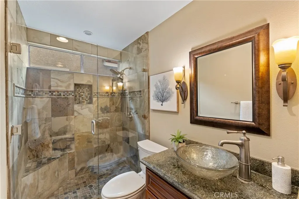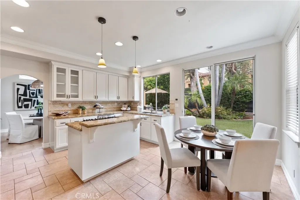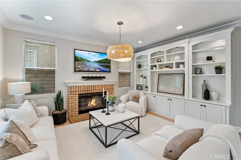 Welcome to 2741 Timmons, located in the highly sought-after Serrano community of Tustin Ranch. This spacious 5-bedroom, 3-bathroom home offers 2,526 square feet of thoughtfully designed living space, highlighted by numerous upgrades and custom details throughout. Upon entry, you’re greeted by soaring vaulted ceilings in the foyer, living room, and formal dining area, creating a light-filled, open-concept atmosphere. Just beyond, a fully customized executive office—complete with built-ins, multiple workstations, and glass French doors—provides the ideal work-from-home environment, with the flexibility to convert back into a downstairs bedroom next to a full bath. The expansive family room features a cozy fireplace and built-in media elements, seamlessly connecting to the bright, open kitchen. The beautifully upgraded white kitchen showcases granite countertops, stainless steel appliances, a walk-in pantry, and an island with bar seating, with direct access to the backyard for effortless indoor-outdoor living. Step outside to your private entertainer’s backyard, complete with a pool and jacuzzi, built-in BBQ, lush tropical landscaping, mature trees along the greenbelt for added privacy, and low-maintenance turf—perfect for enjoying Southern California living year-round. Additional highlights include a dedicated laundry room, a well-appointed 3-car garage with epoxy flooring, built-in cabinetry, and ample storage, plus a full driveway. The home also comes equipped with solar panels paired with a Tesla inverter, offering energy efficiency and modern convenience. Upstairs, the spacious primary suite features an upgraded ensuite with dual vanities, a separate tub and shower, and a large walk-in closet with custom built-ins, along with three additional bedrooms and a full bath for added privacy. Ideally located near top-rated schools, parks, shopping, dining, and major freeways, with low HOA dues and move-in ready condition, this home truly represents the best of Tustin Ranch living.