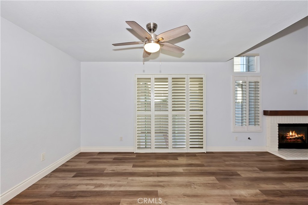 The first floor features newer luxury vinyl plank flooring, while plush high-end carpet covers the stairs and upper level. The remodeled kitchen shines with quartz countertops and top-tier stainless steel appliances. The open floorplan provides both a living room and family room—perfect for entertaining or a home office. A beautifully updated fireplace with custom painted bricks, a natural wood mantle, and a sleek black insert adds a cozy touch. From the dining area, step through the sliding glass door onto a private patio that’s ideal for outdoor relaxation. Upstairs, the spacious primary suite features a walk-in closet and vaulted ceilings. Both bathrooms have been fully remodeled, and newer blinds throughout complete the home’s polished design. Practical updates include a newer HVAC system, water heater, and ductwork, ensuring energy efficiency and year-round comfort.