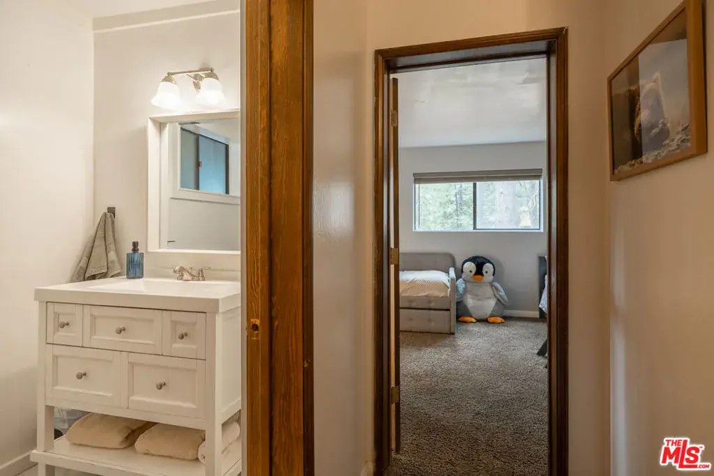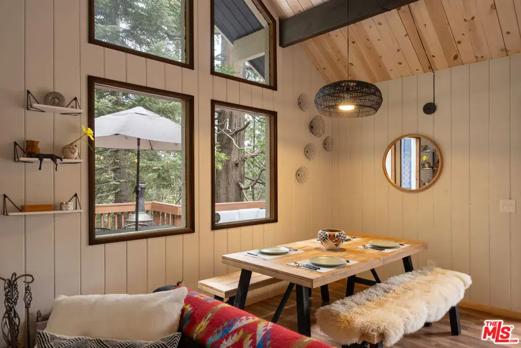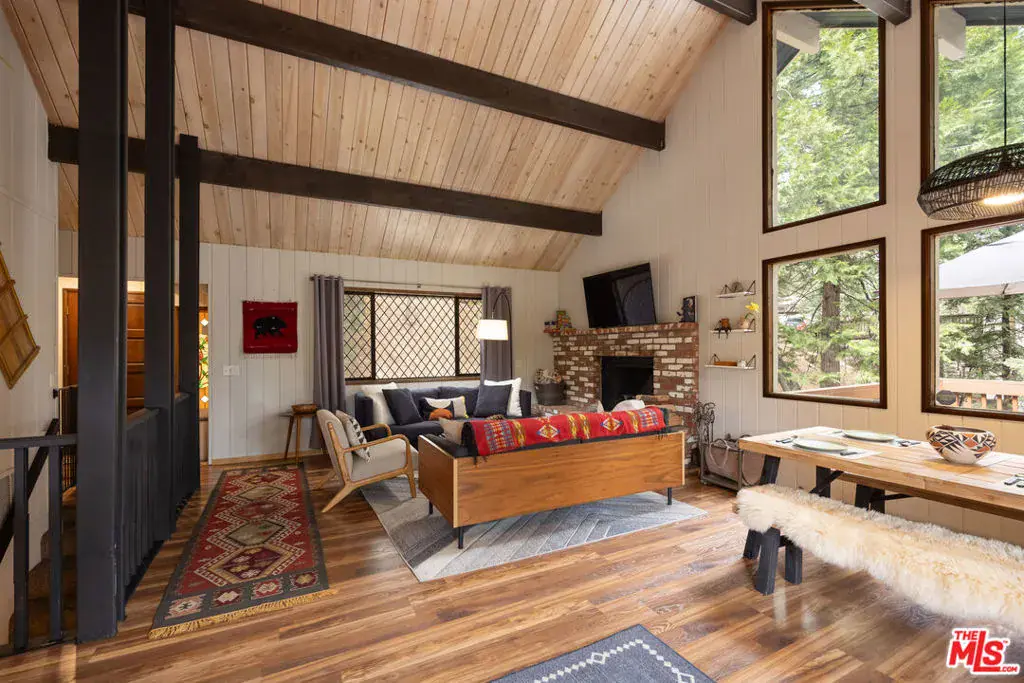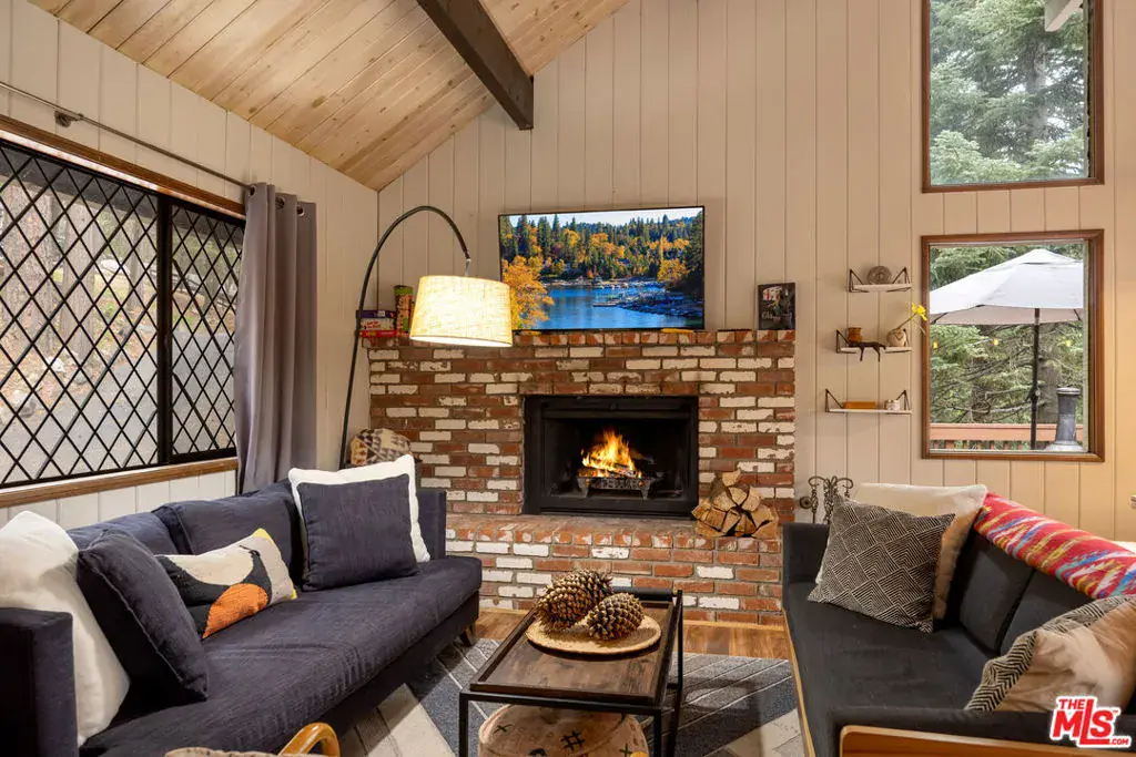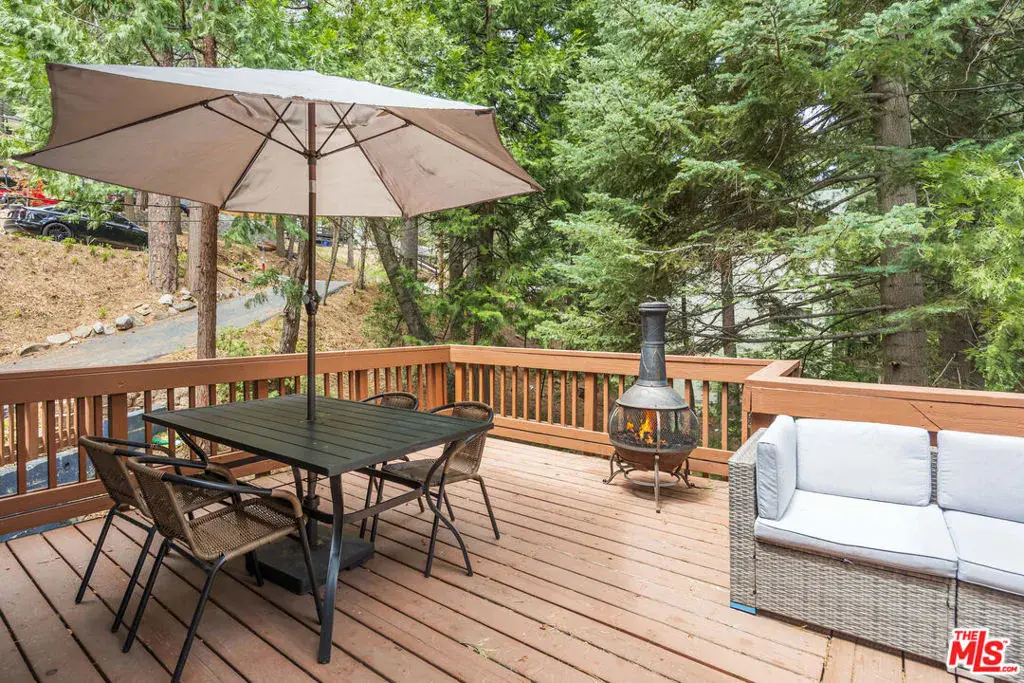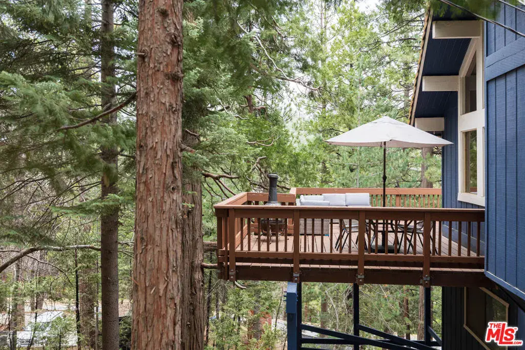 Welcome to your private and peaceful mountain retreat, nestled among the trees. Set in a quiet, serene location, this inviting home blends warm, rustic charm with modern touches. Soaring wood-beamed ceilings and a cozy fireplace create a welcoming atmosphere, while the wrap-around deck is perfect for barbecuing and enjoying a meal while stargazing at night. The property has been recently updated throughout, and can be available furnished. Currently enjoyed as a weekend escape, the home also holds a short-term rental permit, offering a turnkey opportunity whether you’re seeking a home for yourself or a ready-to-go investment property. On the main floor, you’ll find one bedroom, a full bathroom, and the main living area along with the open kitchen. Downstairs, the primary suite and third bedroom offer added privacy and comfort. The attached oversized garage (22×22 ft), a rare option in this area, with 10-foot ceilings, serves as both a practical parking space and an entertainment area, complete with a full-sized pool table. Whether you’re hiking nearby trails, spending the day at Lake Arrowhead or Lake Gregory, or simply unwinding at home, this fully furnished property is move-in ready and perfectly suited for easy, laid-back mountain living. ***Disclaimer: Some photos have been virtually staged(TV screens, fireplaces, etc)***