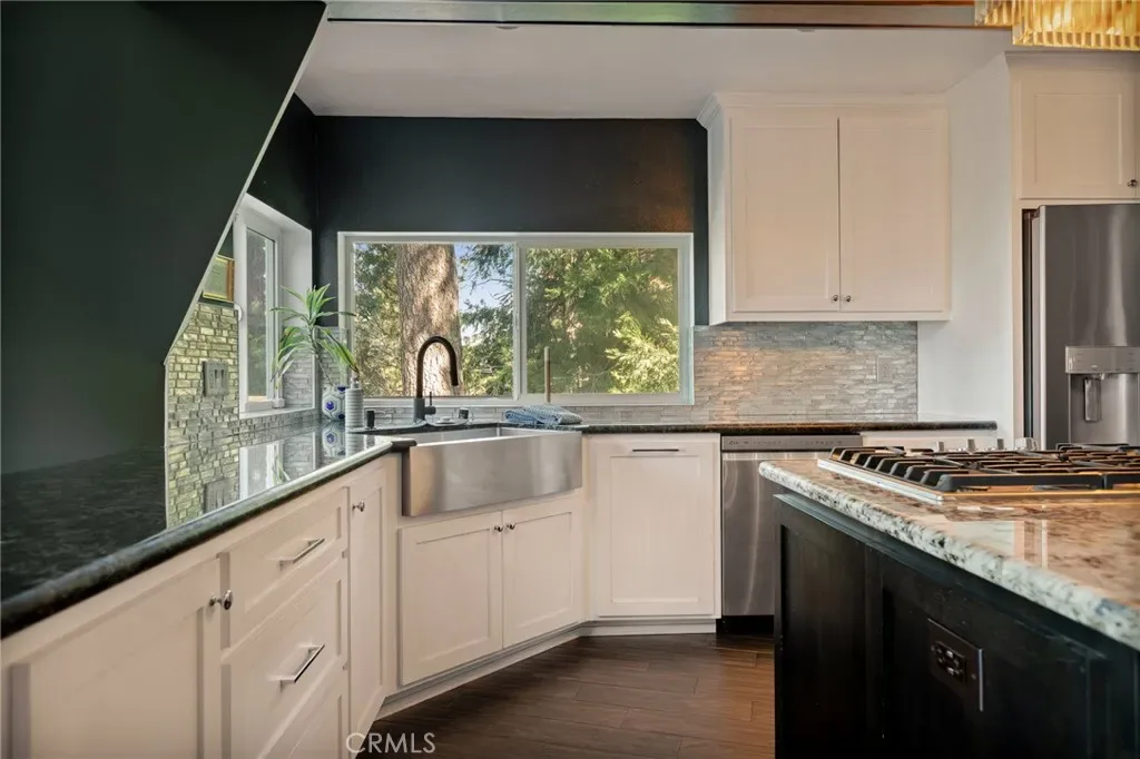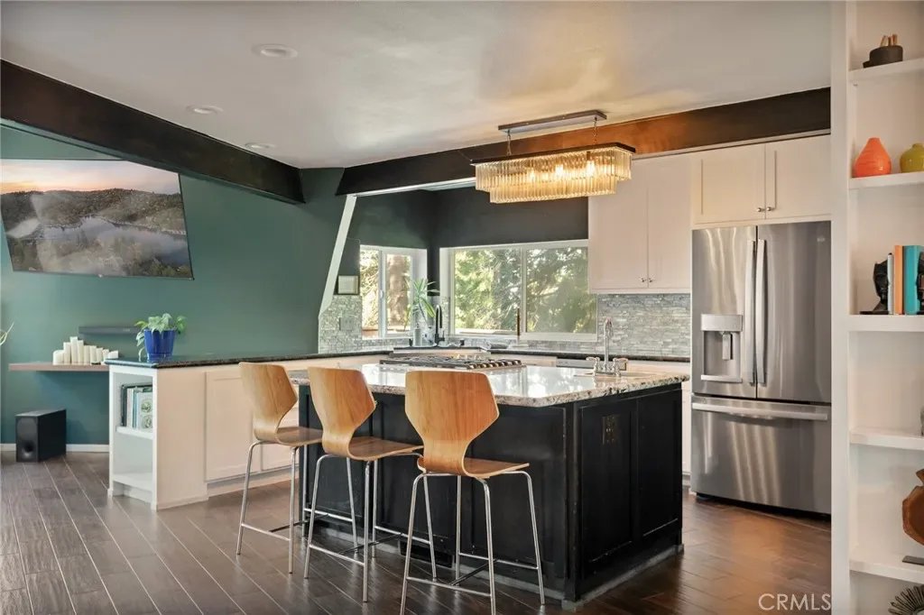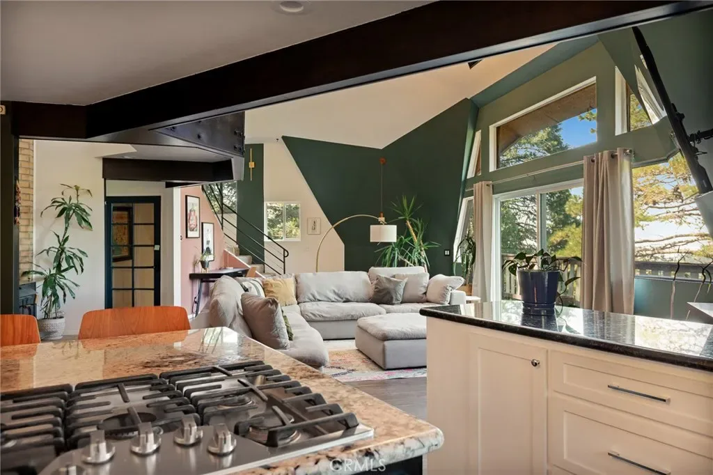 The open-concept living area is centered around a cozy fireplace and framed by large windows and skylights, bringing the outdoors in while showcasing the home’s iconic design. The remodeled kitchen features granite countertops, stainless steel appliances, a center island, and a walk-in pantry perfect for entertaining or hosting guests.Step outside to a spacious deck surrounded by trees and mountain views ideal for relaxing, entertaining, or enhancing further with additions like a jacuzzi to maximize rental appeal.Positioned on approximately 0.4 acres across multiple lots, the property offers a rare level of privacy and usable outdoor space ideal as a personal retreat, second home, or high-performing Airbnb.