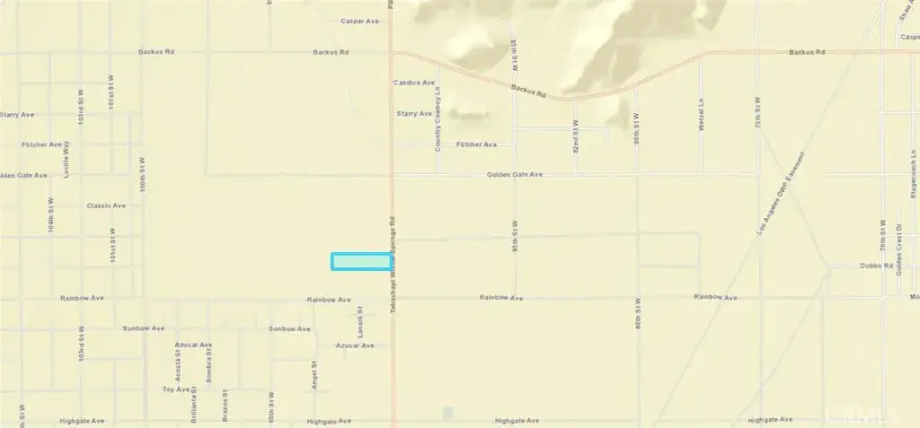 Nice flat 9.77 acre parcel with amazing panoramic views of the Tehachapi mountains, Rosamond Hills and Antelope Valley. Located on paved Tehachapi Willow Springs Rd. Electric Power Poles are on east side of lot in the street. This property is zoned for Agriculture use. There is a wide variety of uses for this property and with a conditional use permit you can explore even more possibilities.