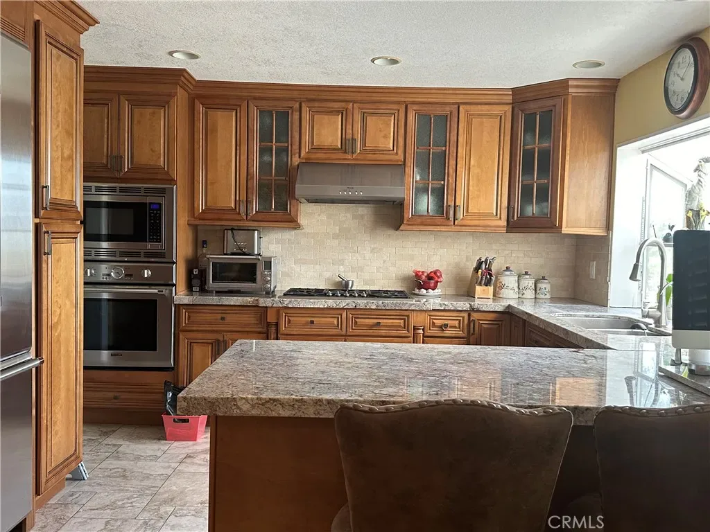 This beautiful home is located in a exclusively quiet and nice neighborhood of the city of upland. Upon walking through thea front door, you are greeted with a large living room with high ceiling opening to the dining area. There is a spacious bedroom downstairs; full bath; and a gourmet kitchen with granite countertops, stainless steel applicances including refrigerator and oven. The family room features a fireplace and a wet bar. There are 3 bedrooms upstairs. One of the bedrooms is converted into a home theater equipped with a projector screen, sound system, and confortable couches (negotiable). Very good size master bedroom with walk in closet. The front and backyards are professionally landscaped. The large back patio perfect for family / friends gathering. Roof is only few years old. MUST SEE TO APPRECIATE.