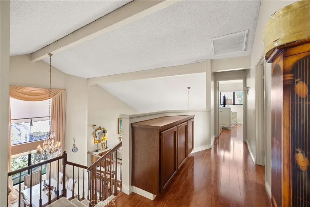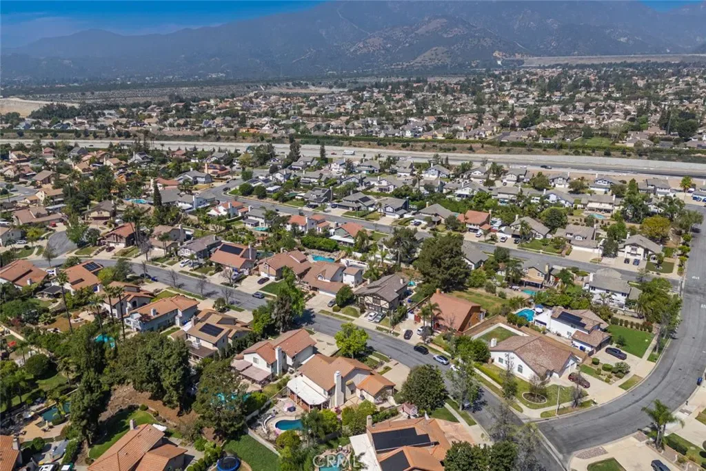 Don’t miss this beautiful property located in a desirable area of North Upland, centrally situated near the 210 freeway, schools, and shopping centers. This property offers 4 bedrooms and 3 full baths. 3 bedrooms and 2 baths are located in the 2nd level, the 4th bedroom has a custom fold Murphy bed. This 4th bedroom can be used as an office or guest room, which is located in the 1st floor with a third full bath. The master bedroom is located in the 2nd floor, which has a full bath /shower and a big vanity with dual sink and a walk- in closet. The other 2 bedrooms share a full jack and jill bathroom. This home holds a beautiful staircase overlooking the formal dining area with high ceilings and a spectacular chandelier. The formal living room is very spacious and offers a lot of daylight with big windows and a nice kitchen with plenty of cabinets, and an island overseeing the family room and the cozy fireplace. The back yard is a paradise to entertain all your guests, the pool is summer- ready with a big patio that is great for bbqs and parties with ceiling fans. The backyard contains plenty of fruit trees as well as R/V parking which is more than enough room for all your toys. This property holds a 3- car garage. This garage is currently used as an office.